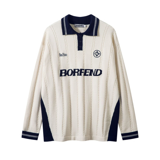 Stripe Polo Collar Mohair Knit Sweater WN11181