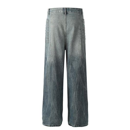 Washed Wide-Leg Straight Denim Jeans WN11185