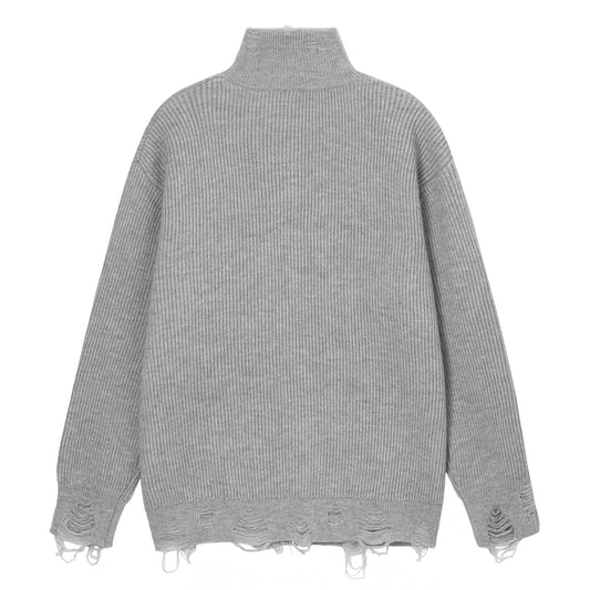 Damage Zipper Stand Neck Knit Cardigan WN11157