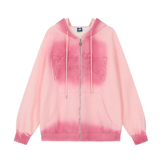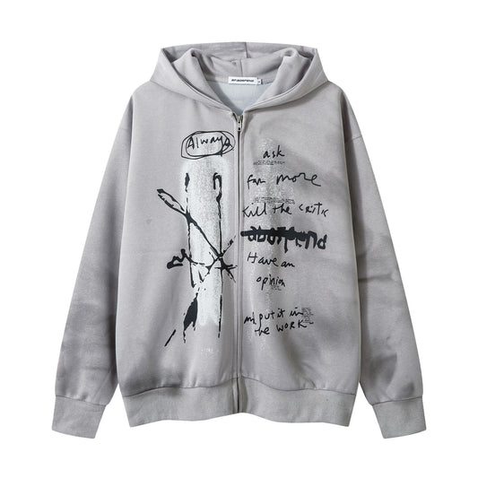 Washed Spray-Paint Design Oversize Zipper Hoodie WN11168