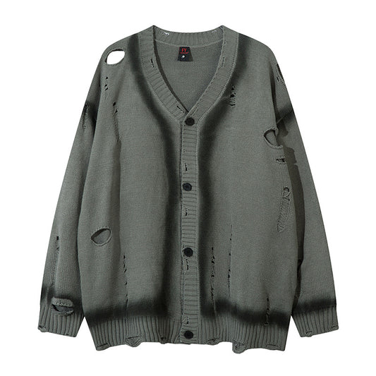Graffiti Spray-Paint Damage Knit Cardigan WN11173
