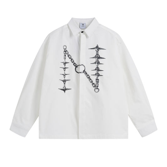 Chain Print Oversize Long Sleeve Shirt WN11169