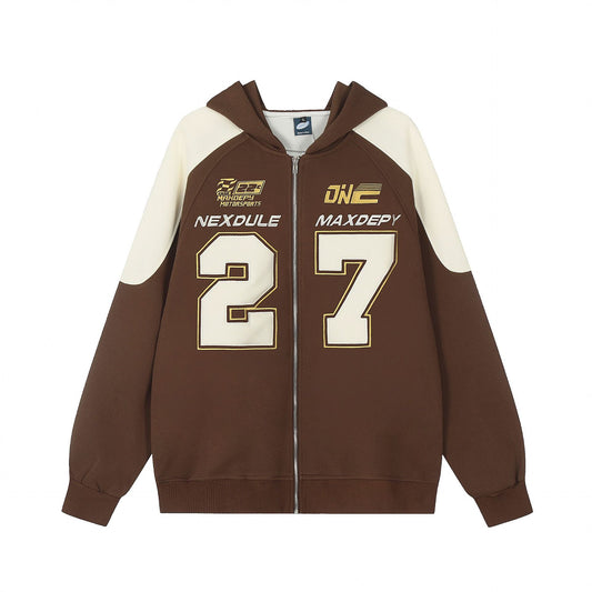 Color-Block Letter Print Oversize Zipper Hoodie WN11167