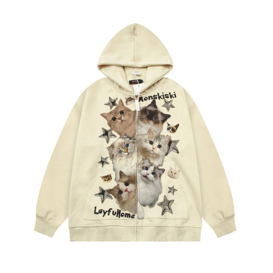 Cat Graphic Oversize Zipper Hoodie WN11162