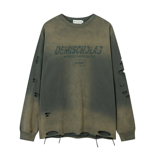 Damage Washed Gradient Letter Print Oversize Sweatshirt WN11174