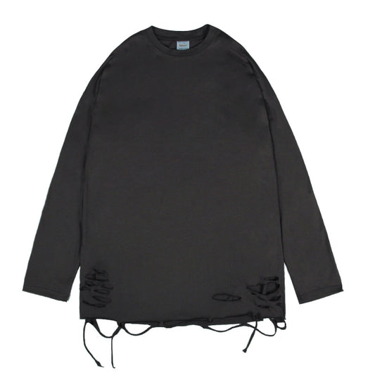 Damage Hem Plain Long Sleeve T-Shirt WN11131