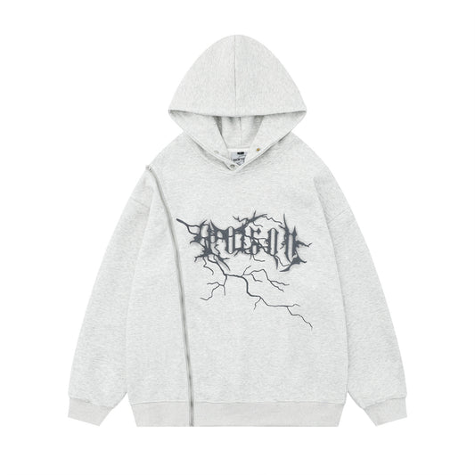Lightning Zipper Design Oversize Pullover Hoodie WN11128