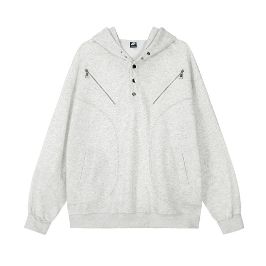 Double-Zipper Metal Button Oversize Pullover Hoodie WN11117
