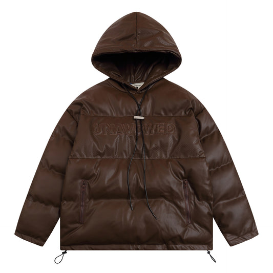 Hooded Pullover Oversize PU Leather Puffer Jacket WN11146