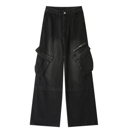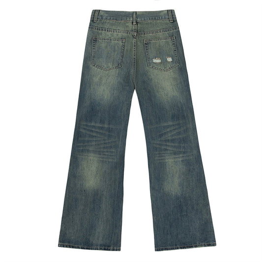 Graffiti Print Damage Wide-Leg Straight Denim Jeans WN11154