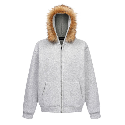 Fake Fur Fleece Lining Zipper Hoodie WN11114