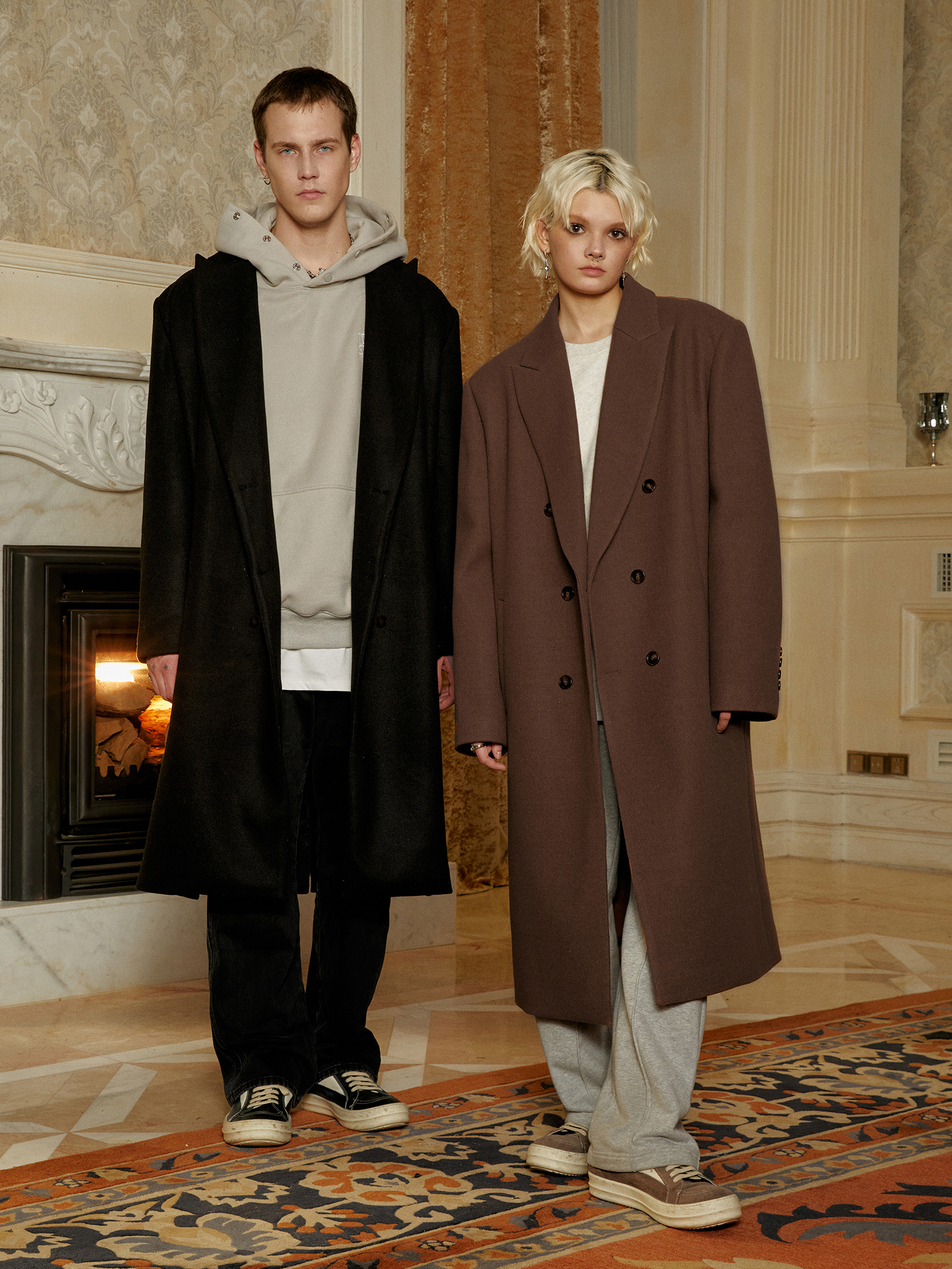 Double-Breasted Woolen Long Coat WN10153