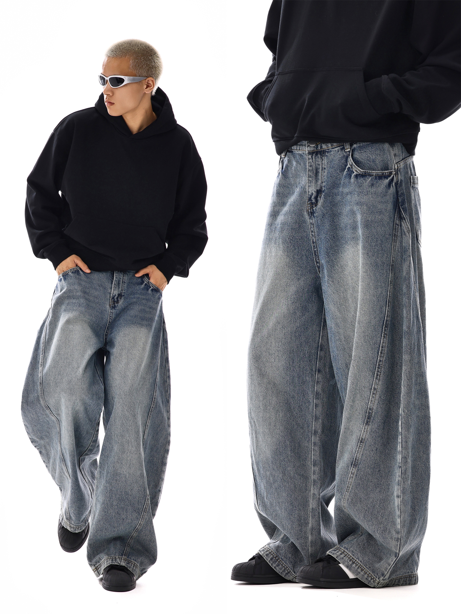 Washed Wide-Leg Denim Jeans WN10628