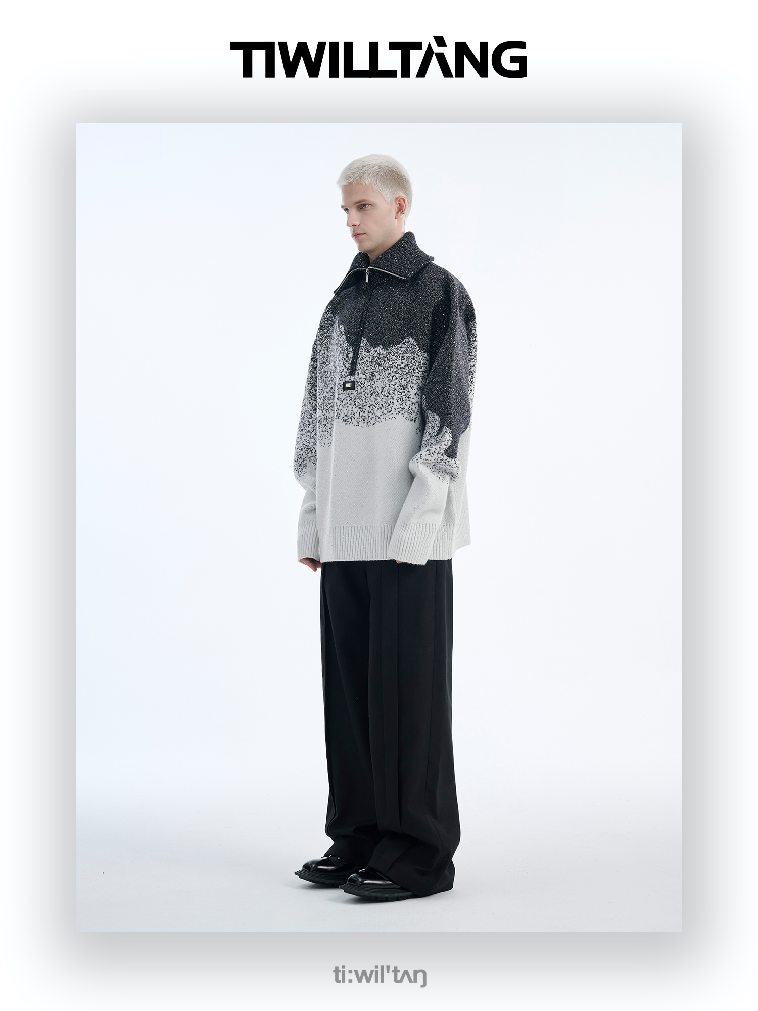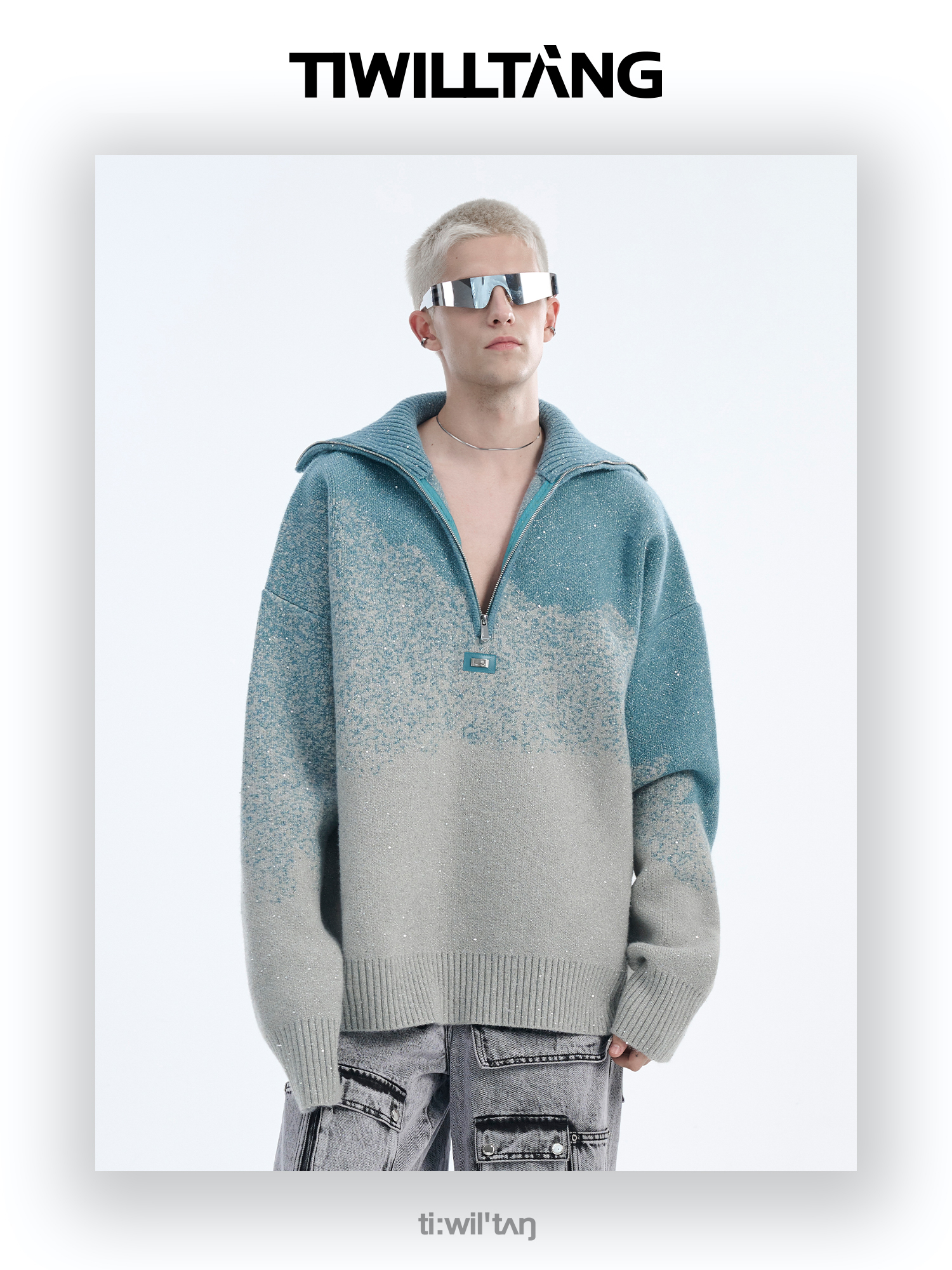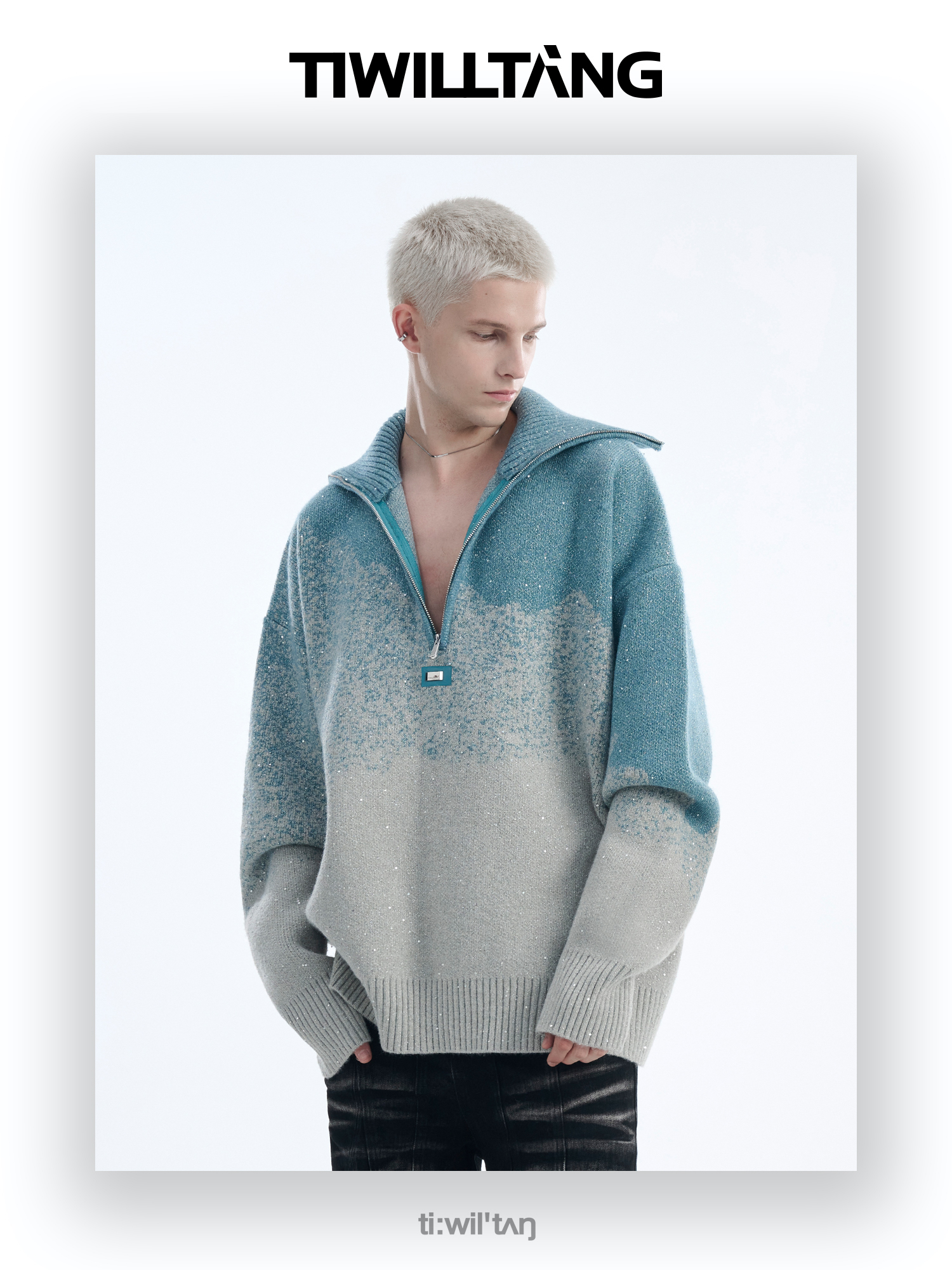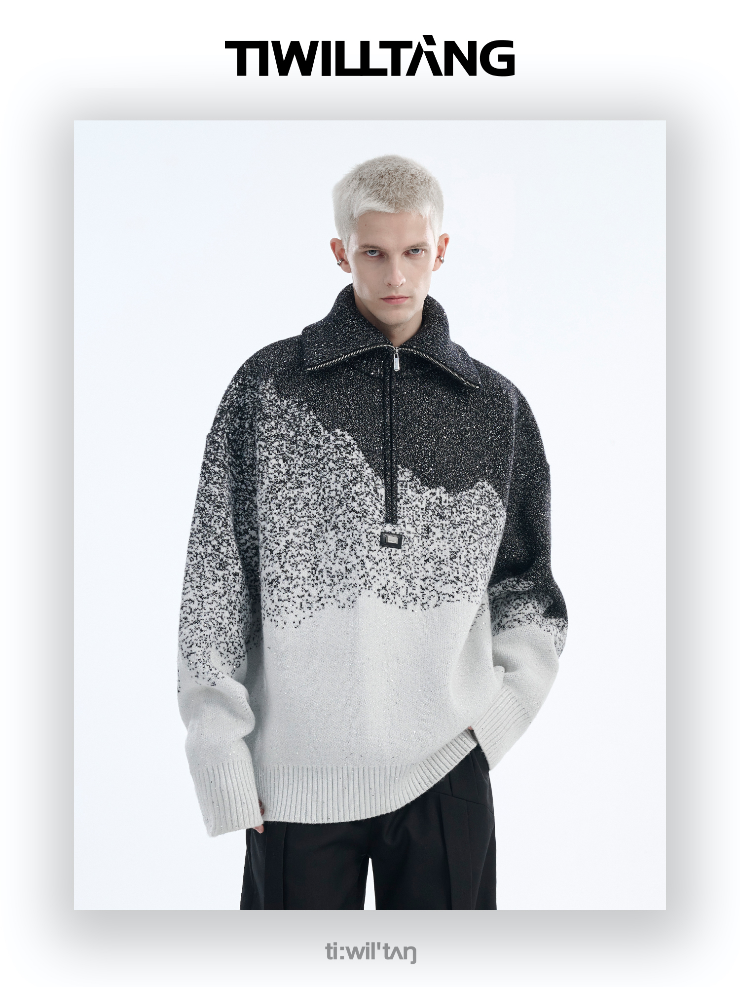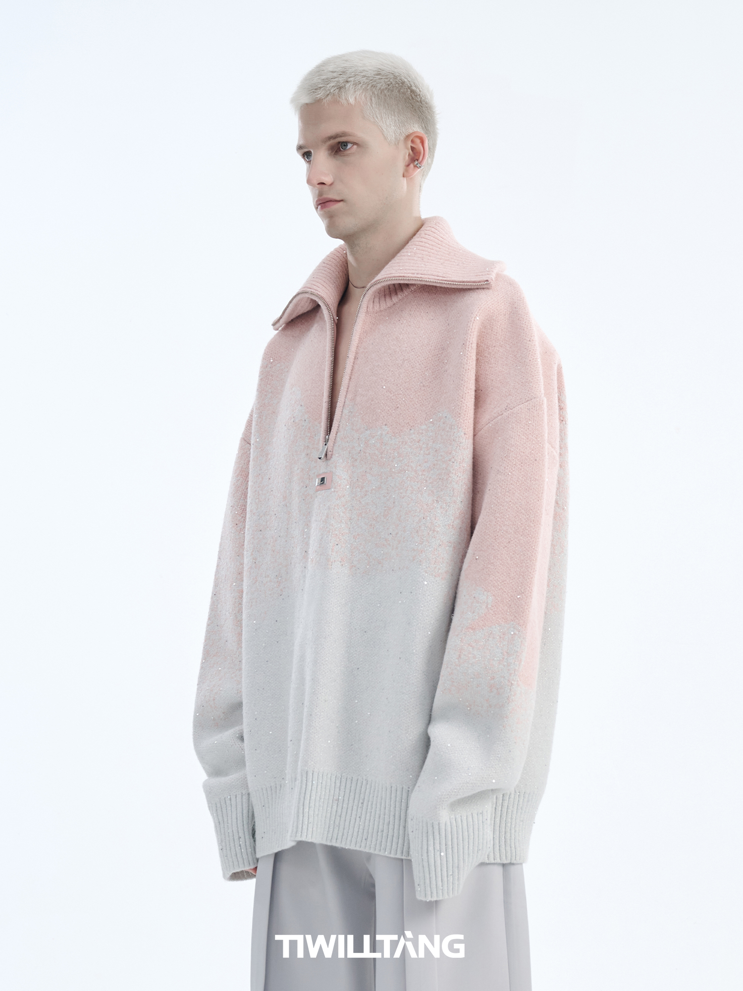 Gradient Half Zipper High-Neck Knit Sweater WN10715