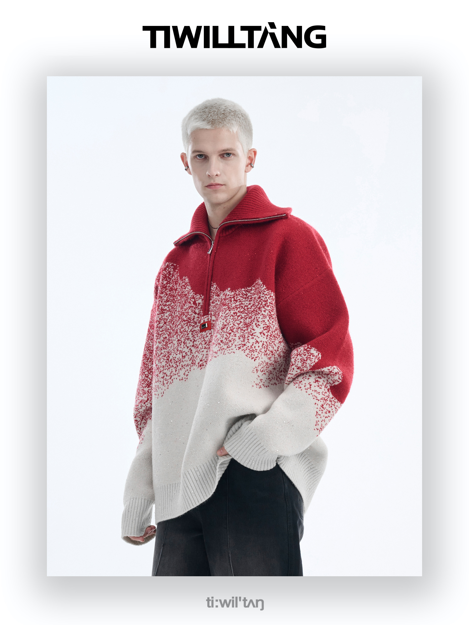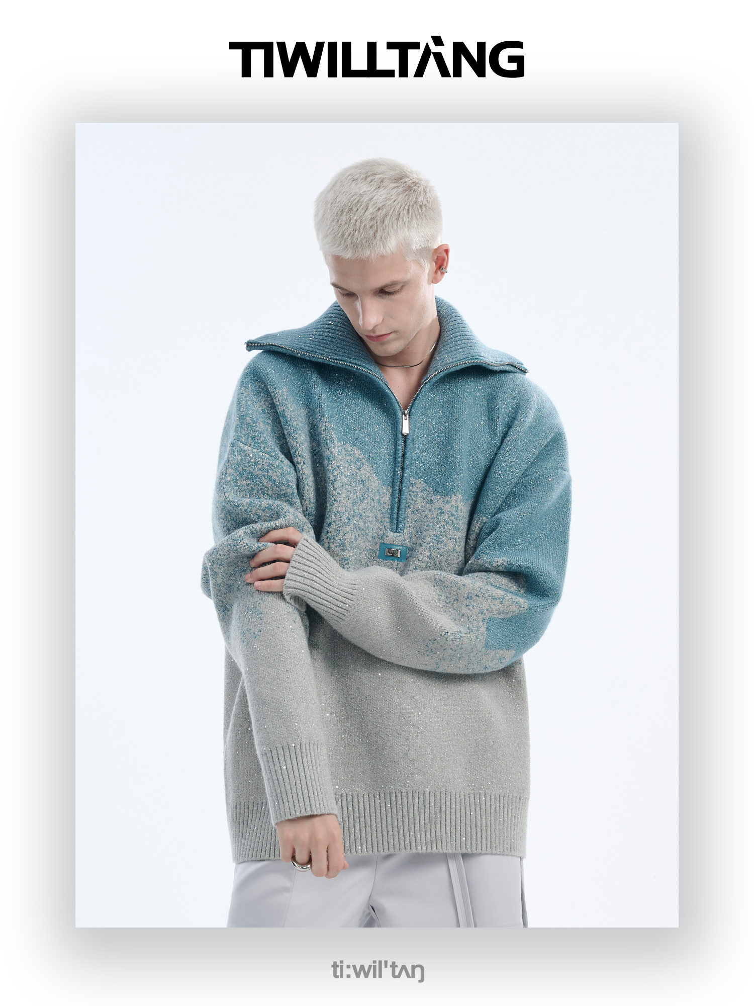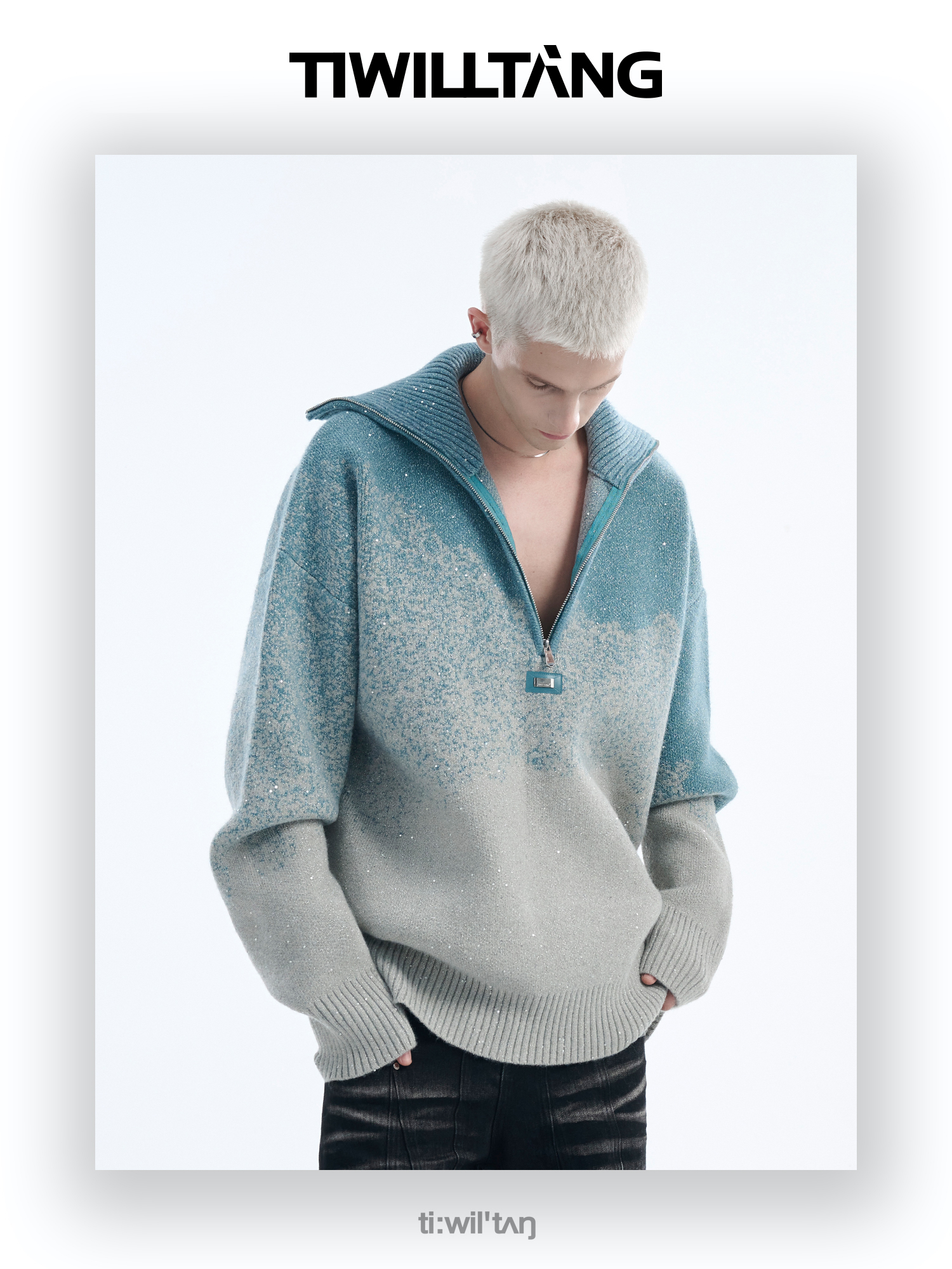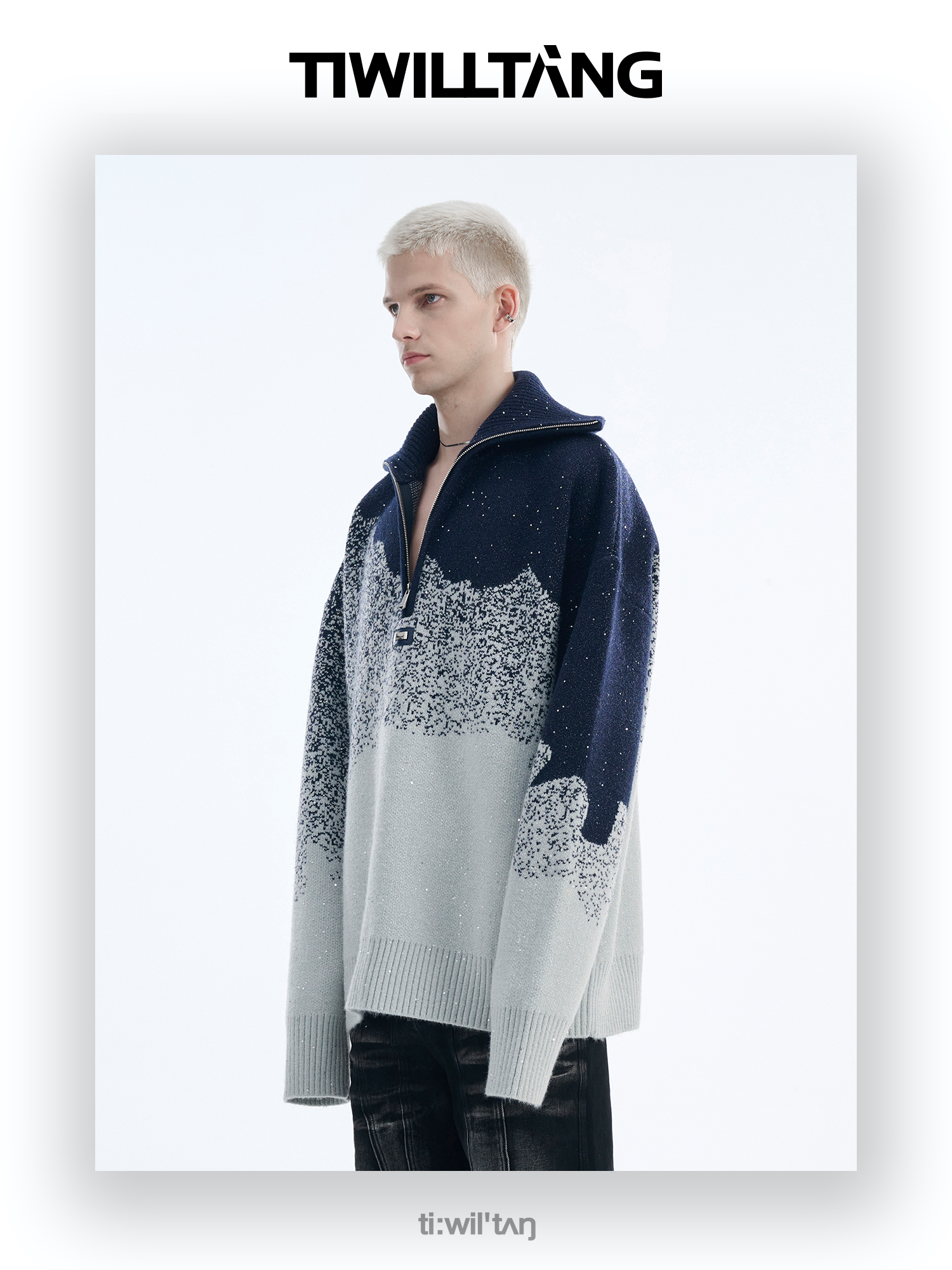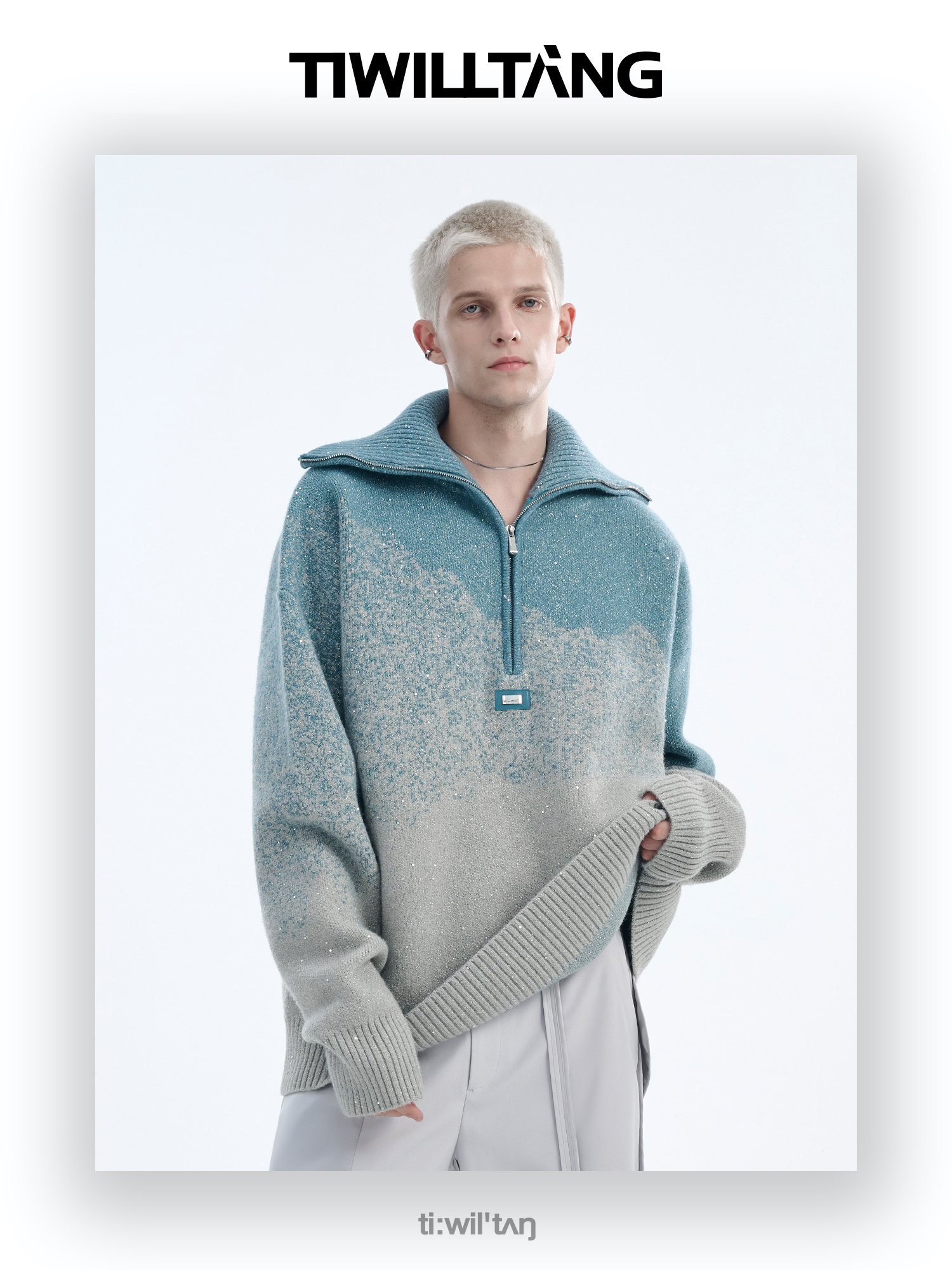 Gradient Half Zipper High-Neck Knit Sweater WN10715
