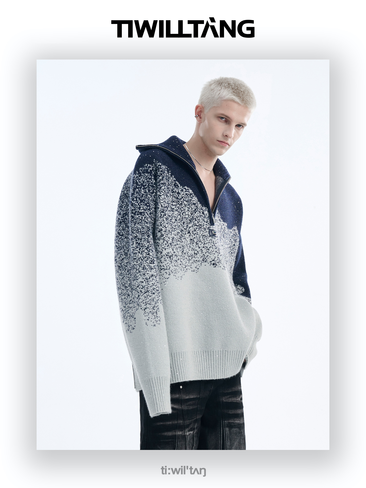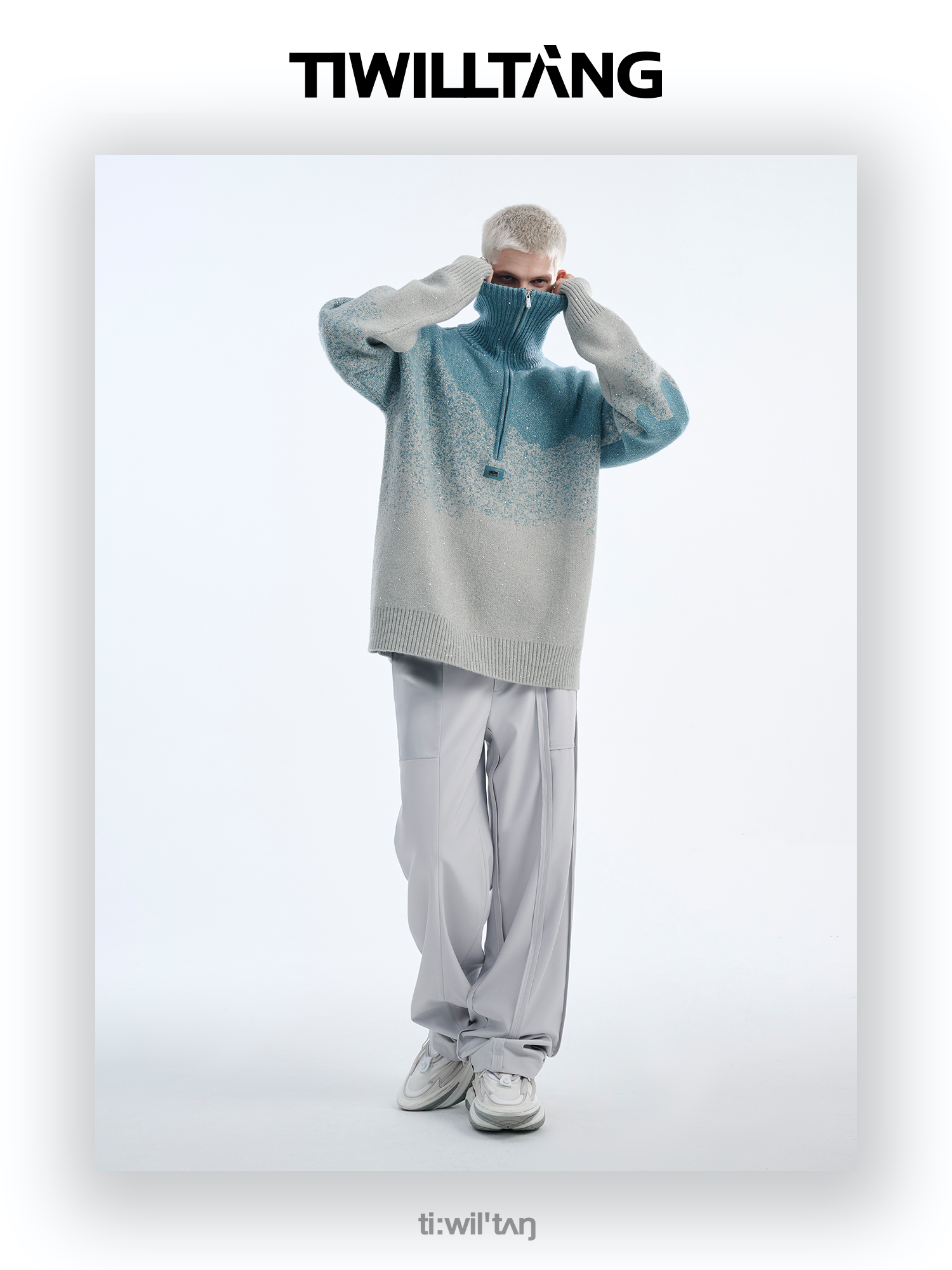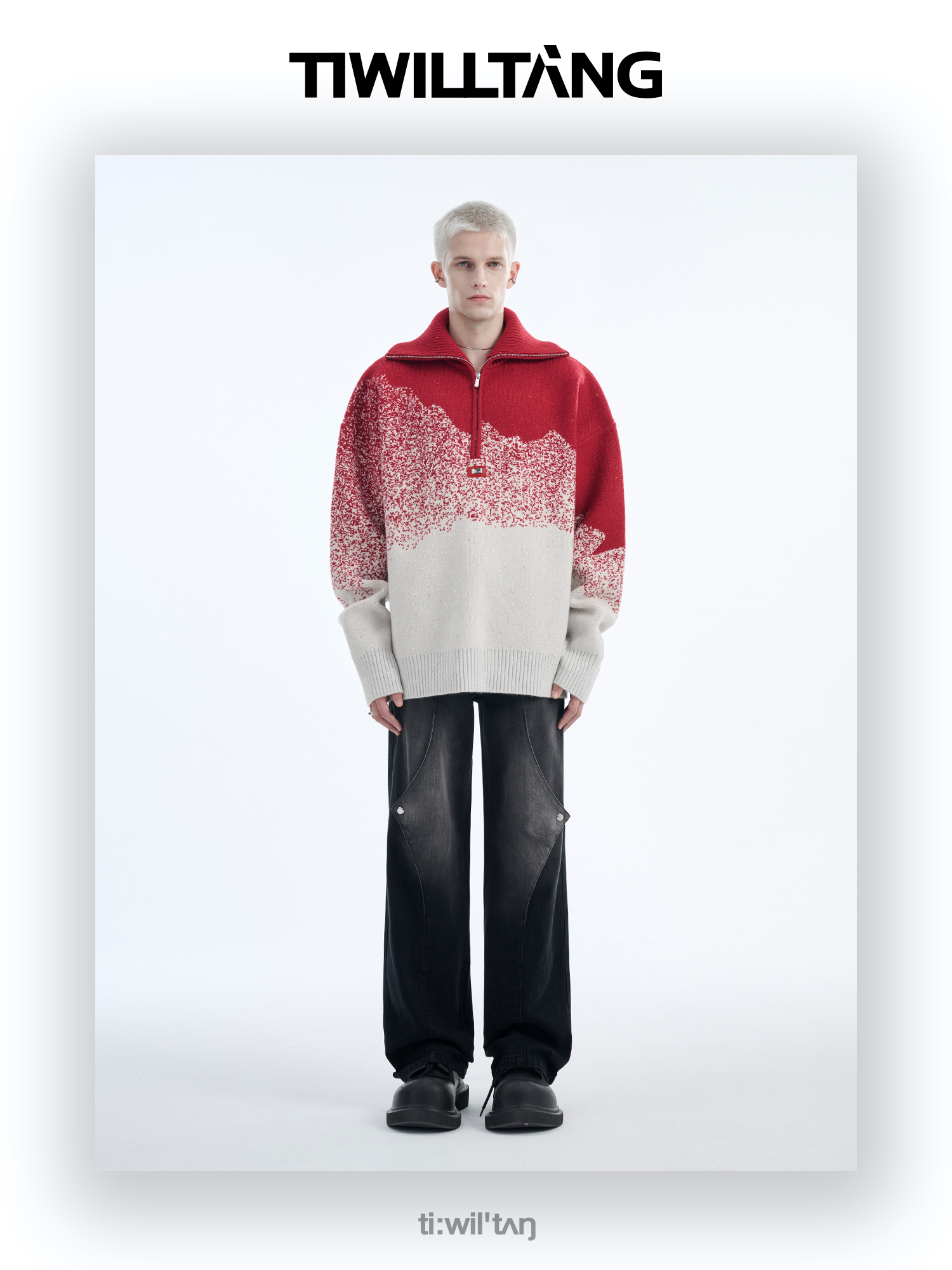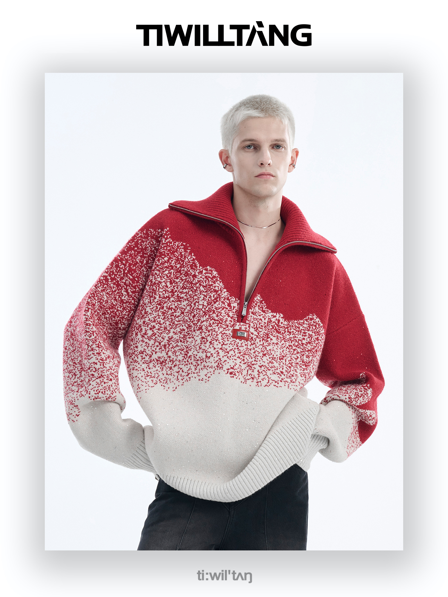 Gradient Half Zipper High-Neck Knit Sweater WN10715
