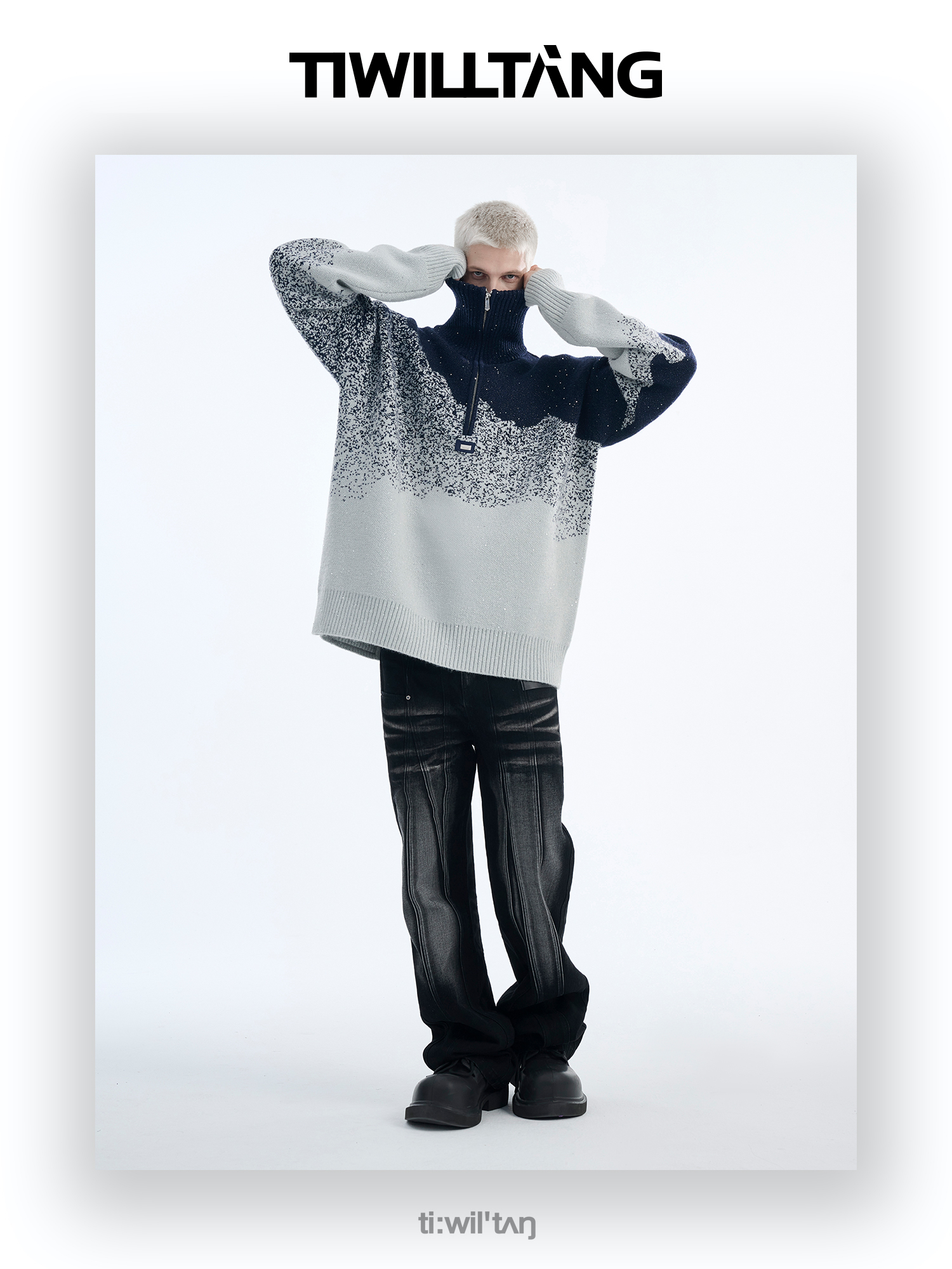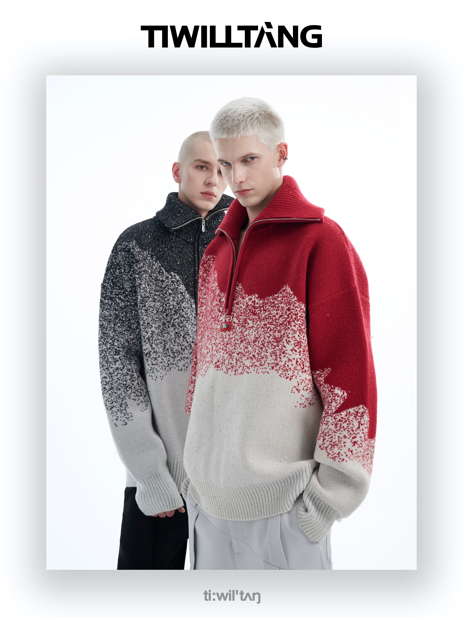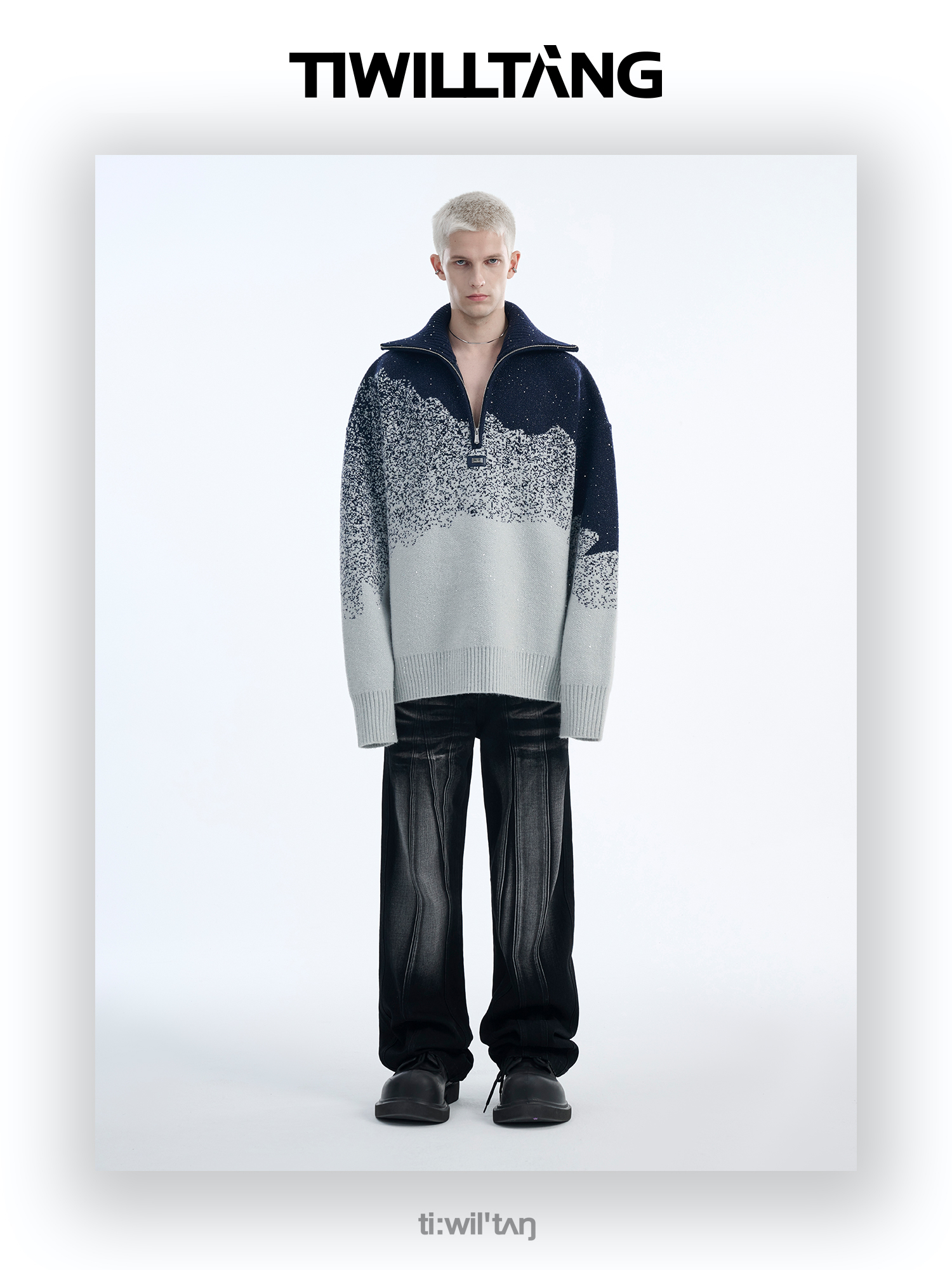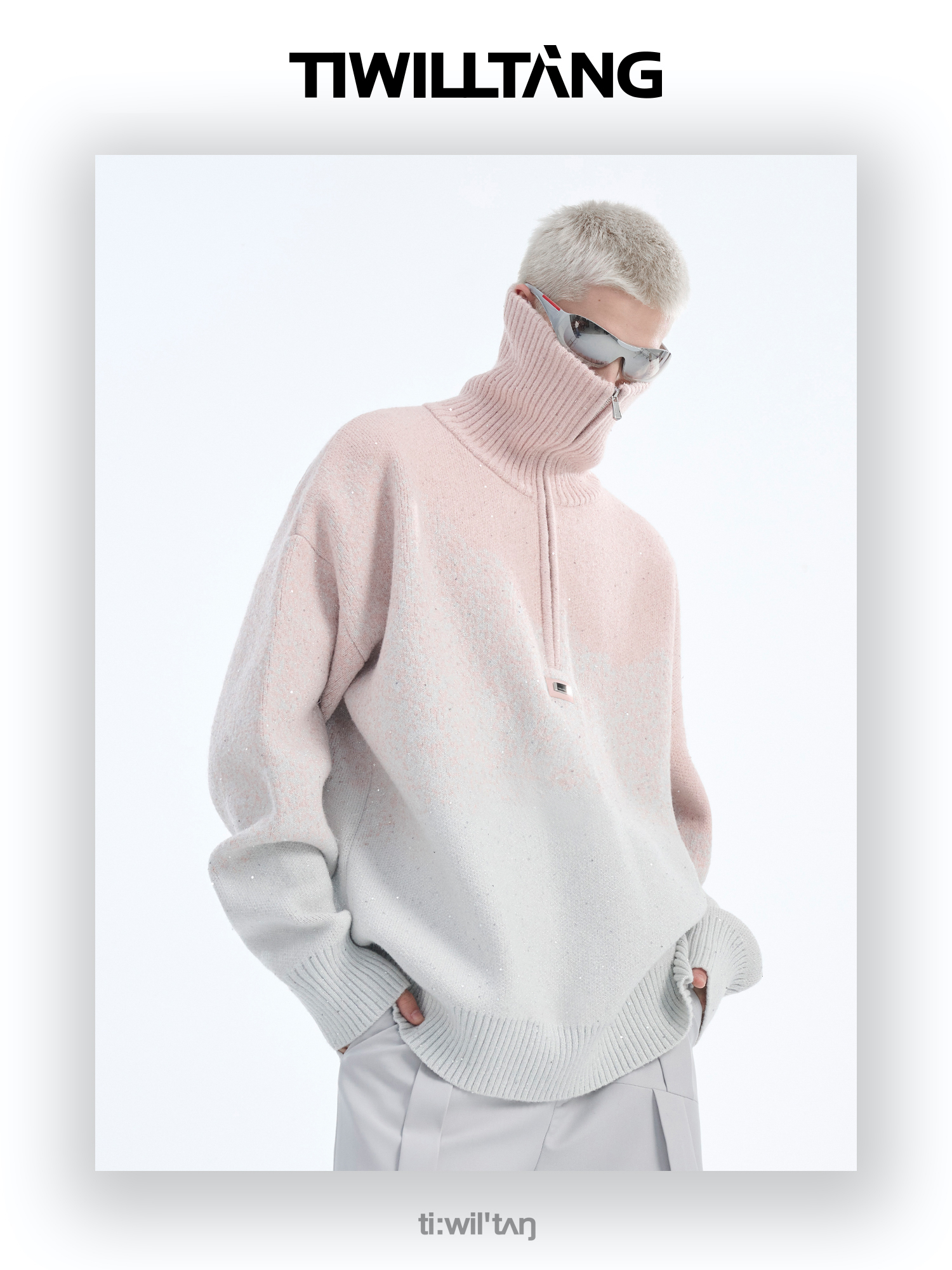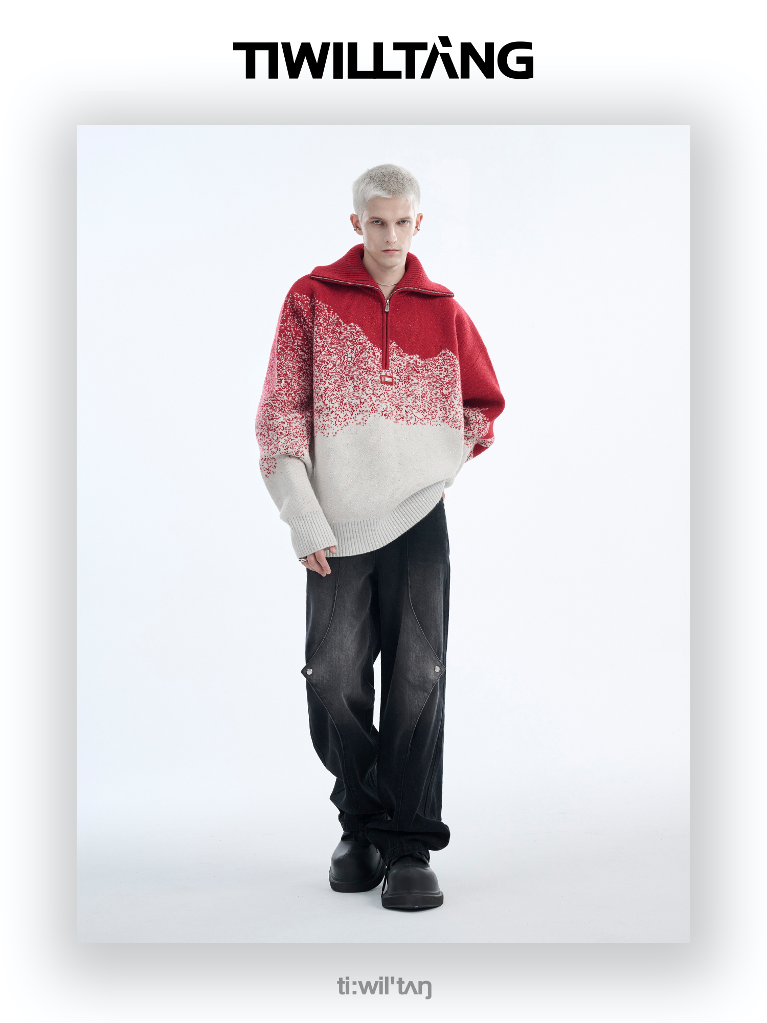Gradient Half Zipper High-Neck Knit Sweater WN10715