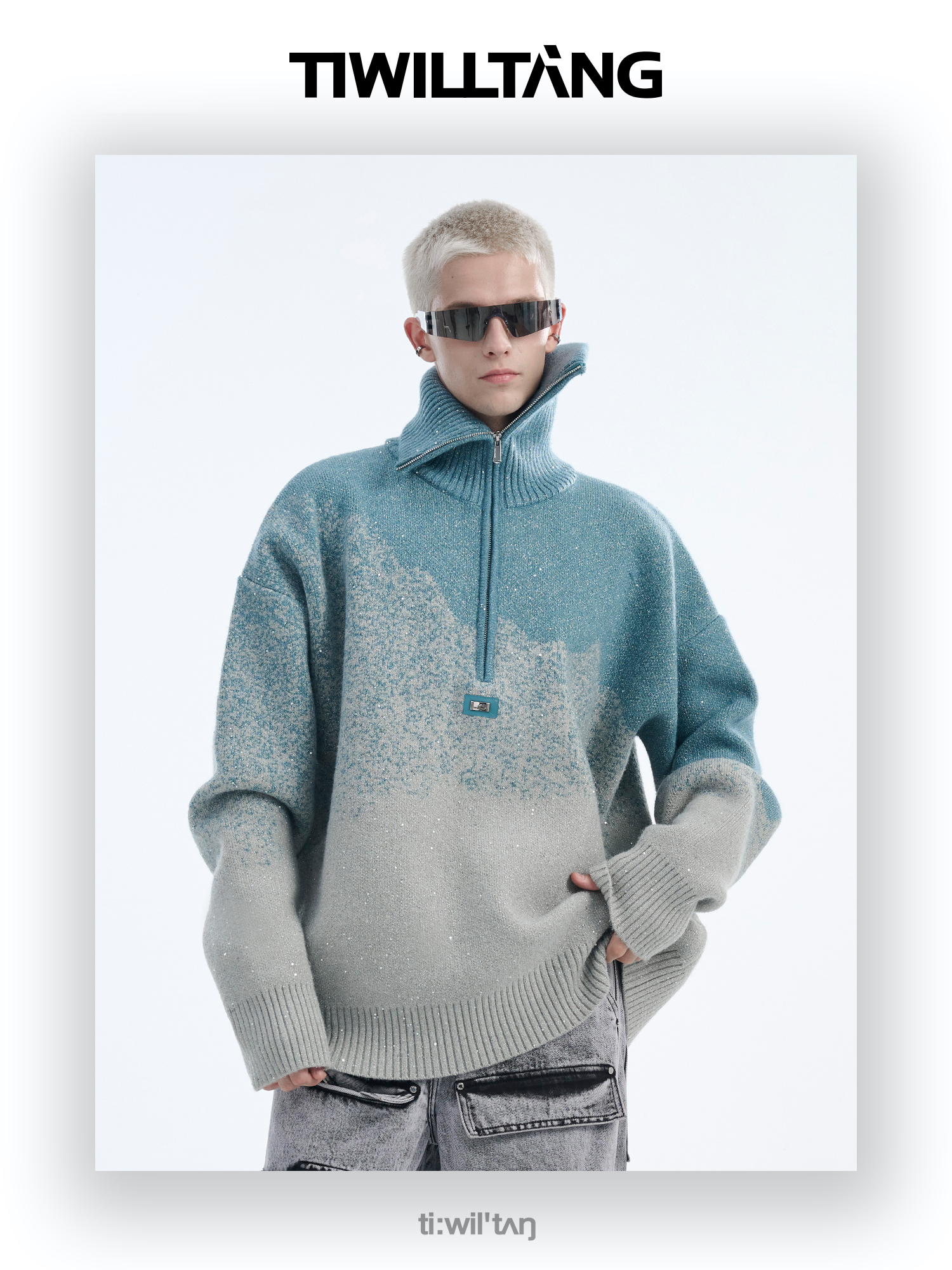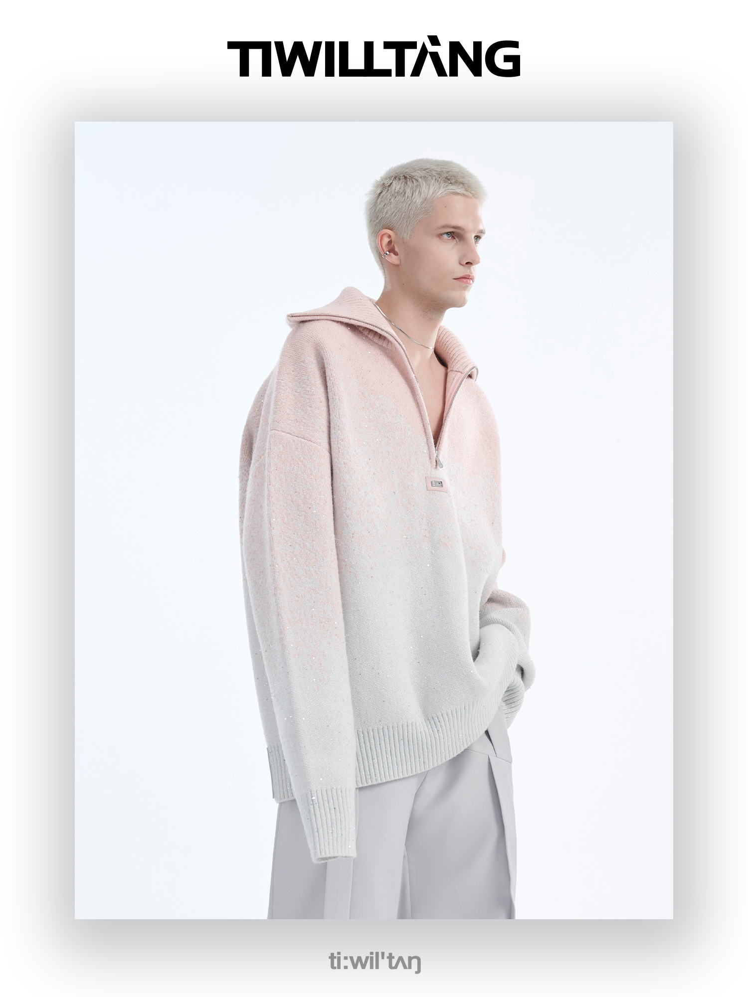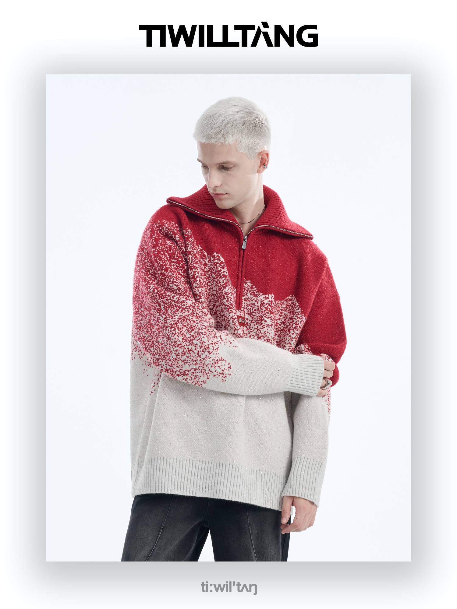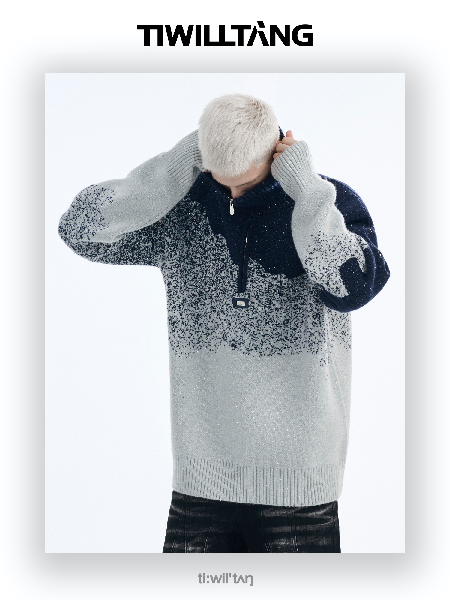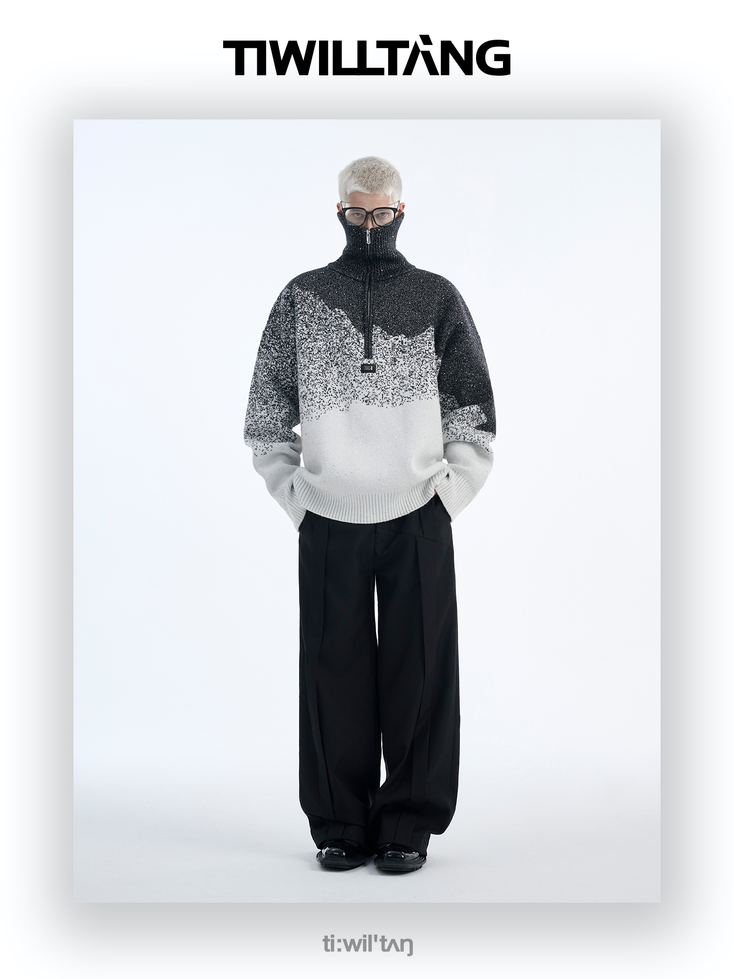 Gradient Half Zipper High-Neck Knit Sweater WN10715