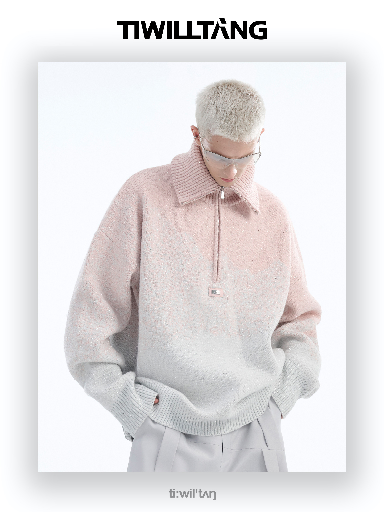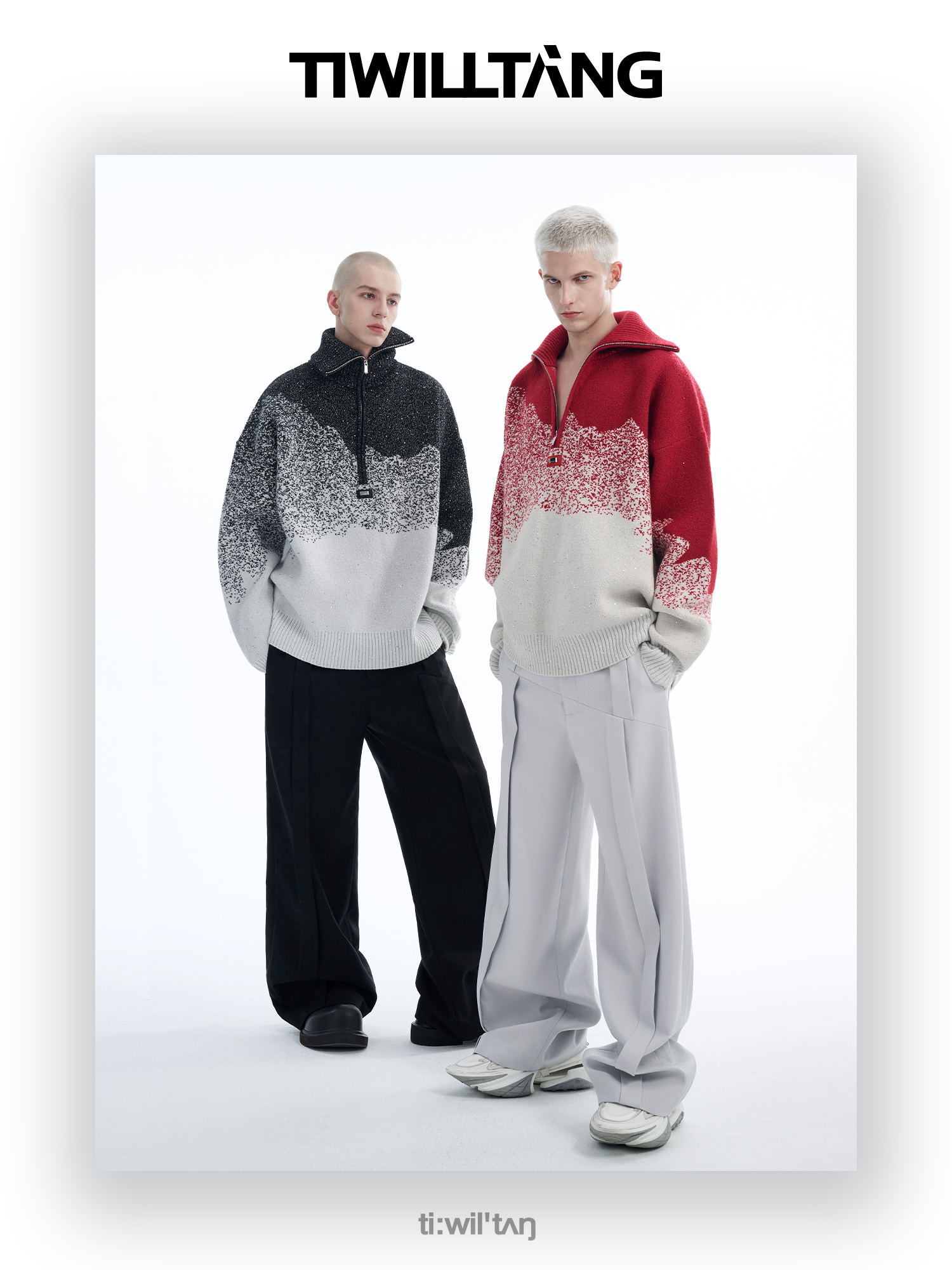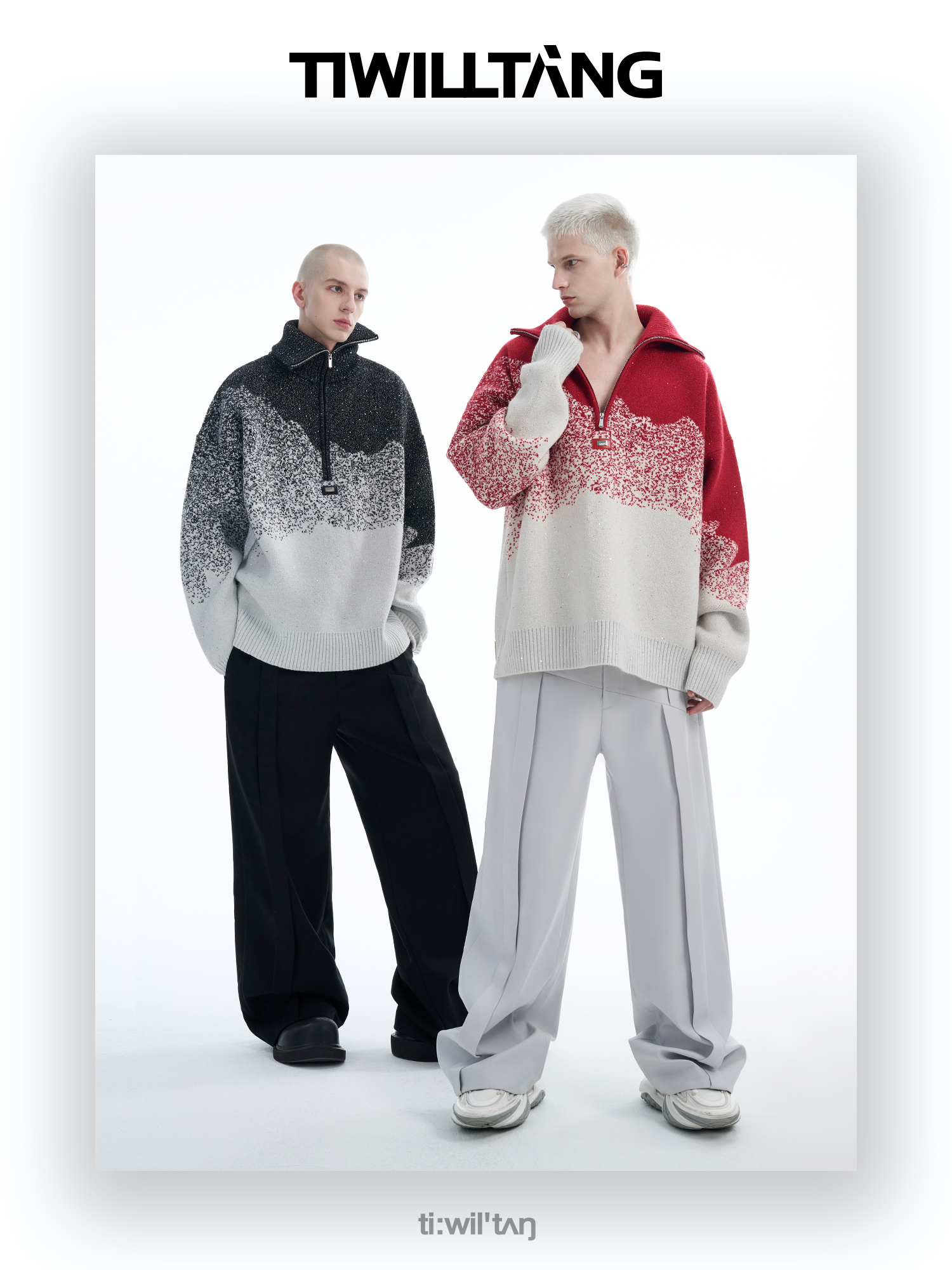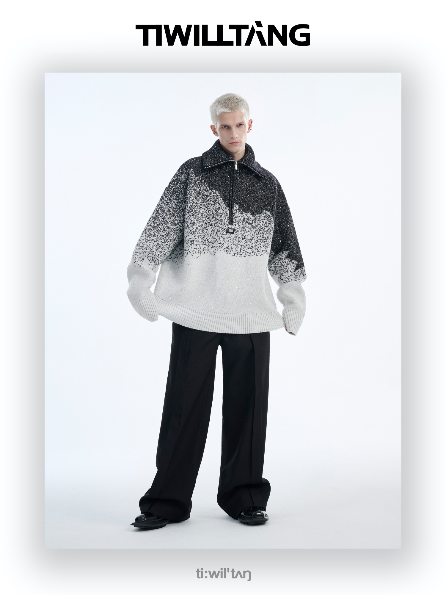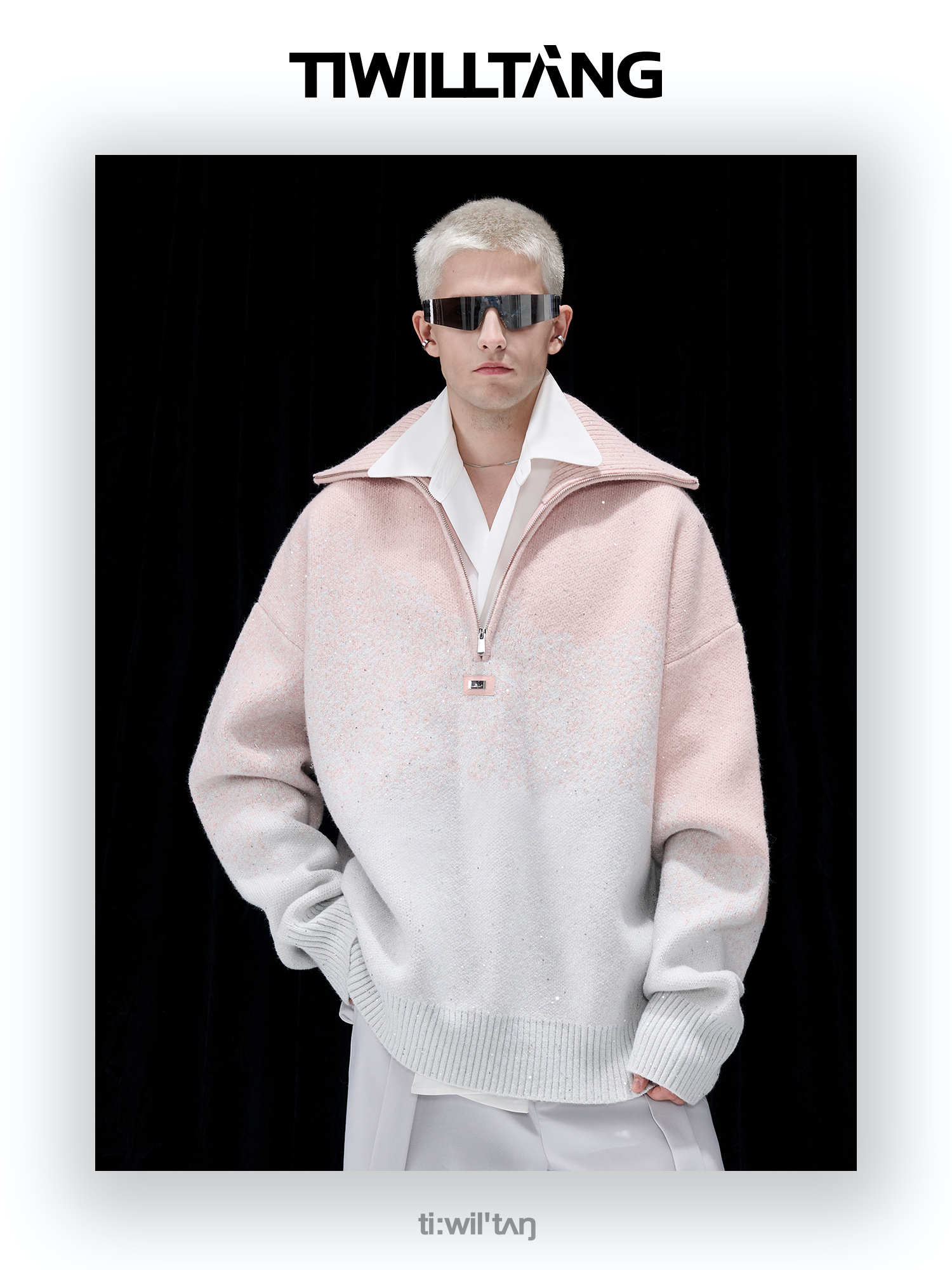 Gradient Half Zipper High-Neck Knit Sweater WN10715