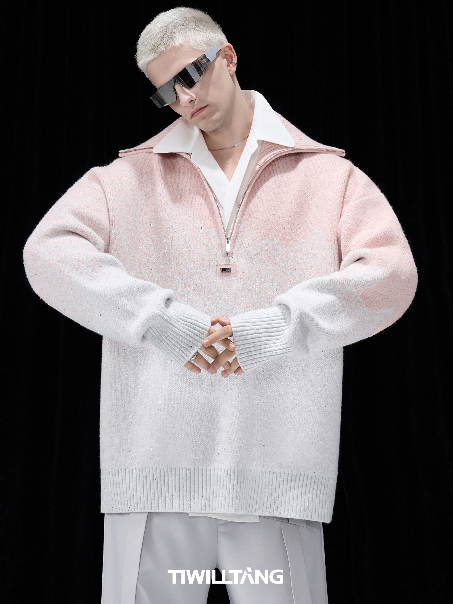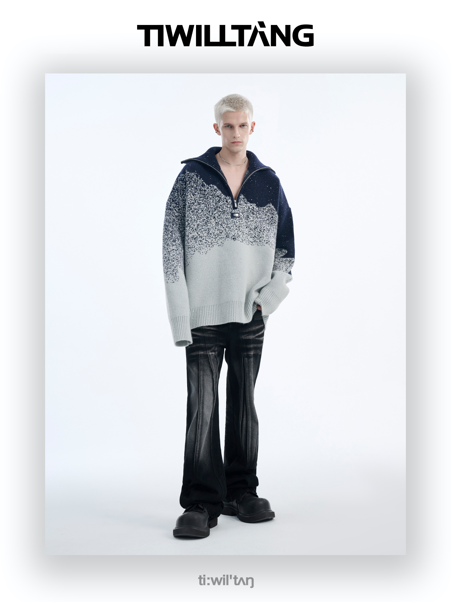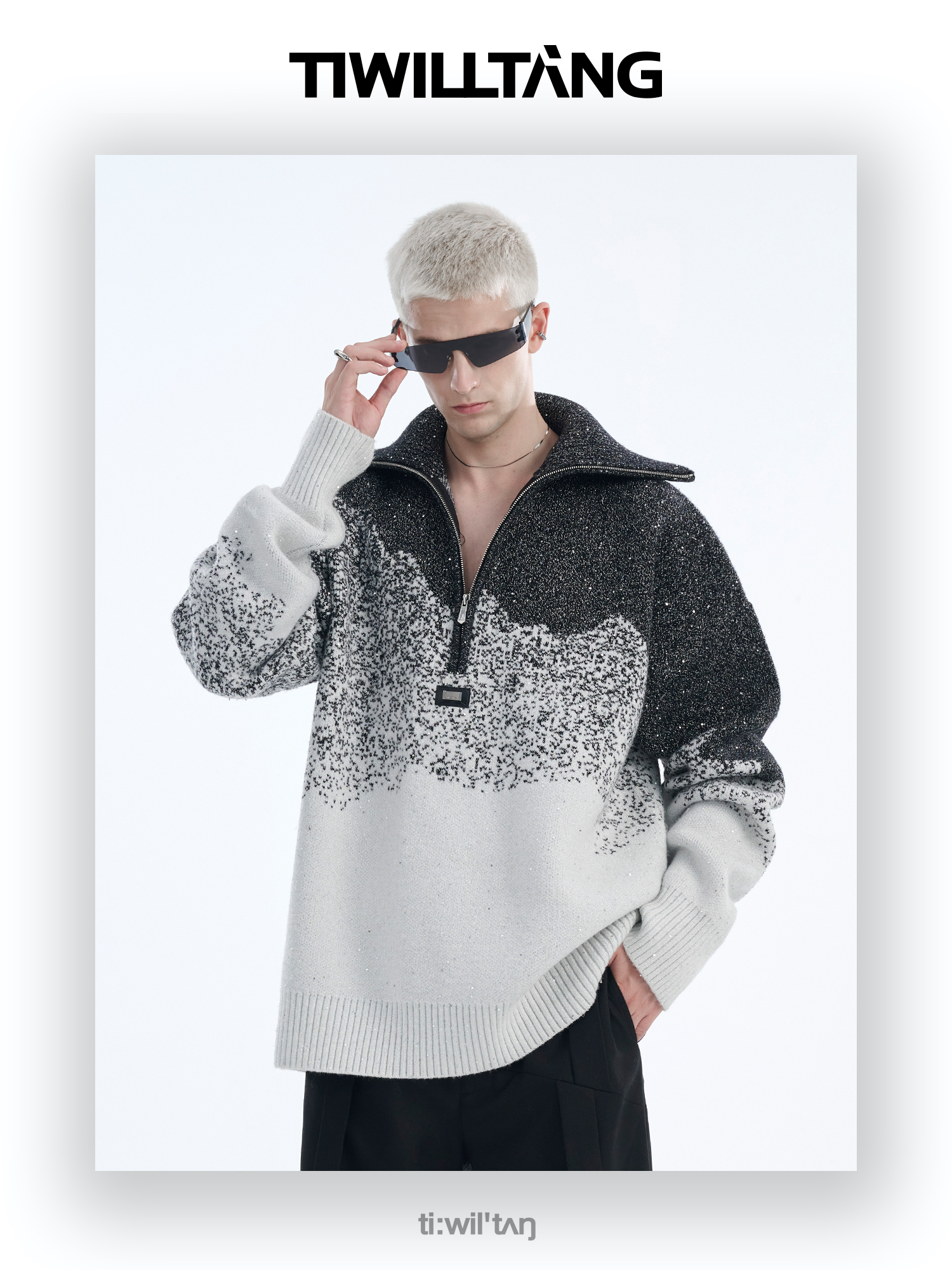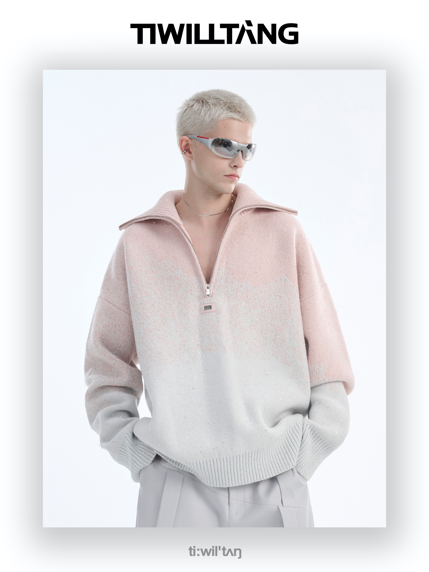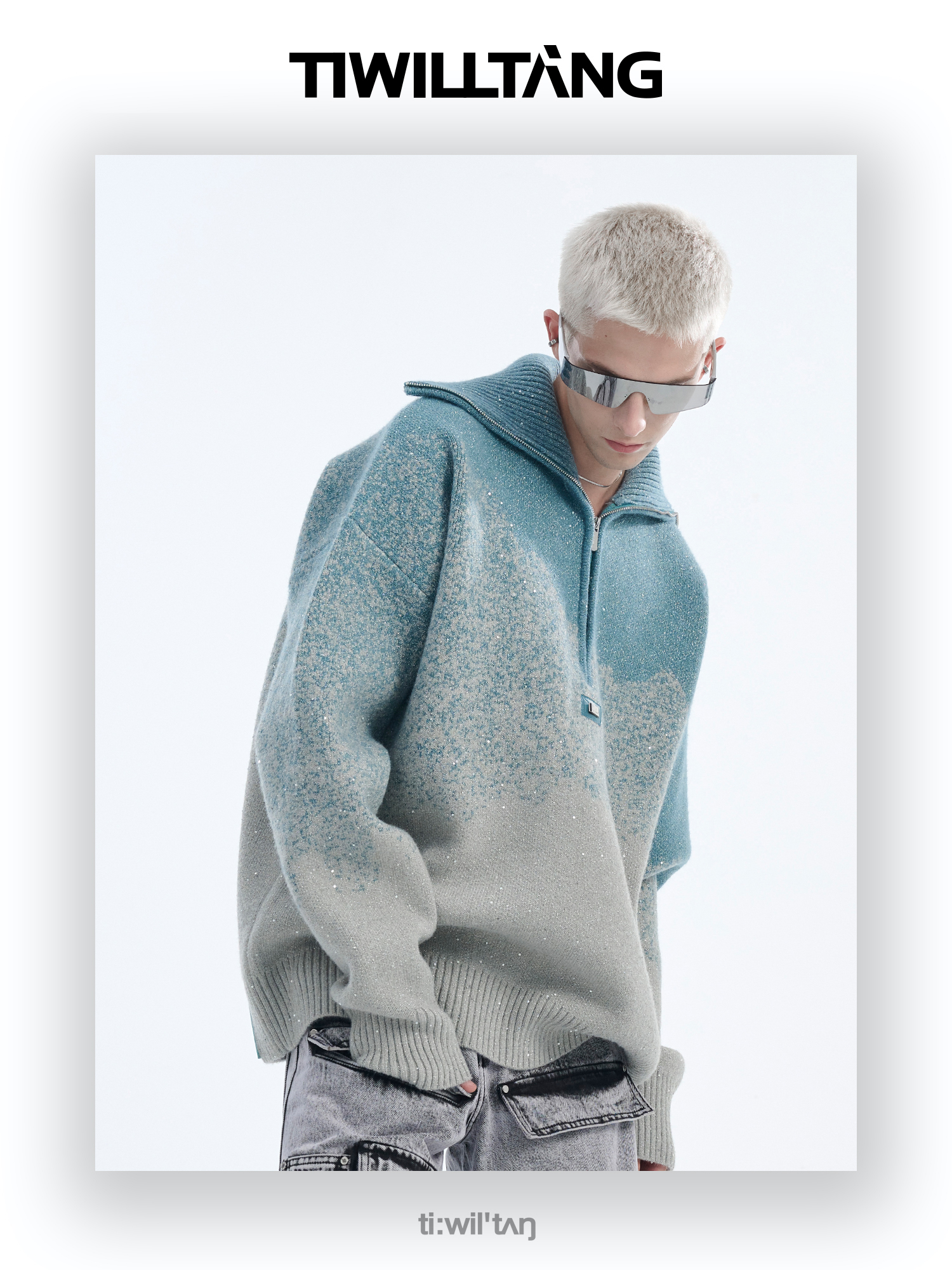 Gradient Half Zipper High-Neck Knit Sweater WN10715
