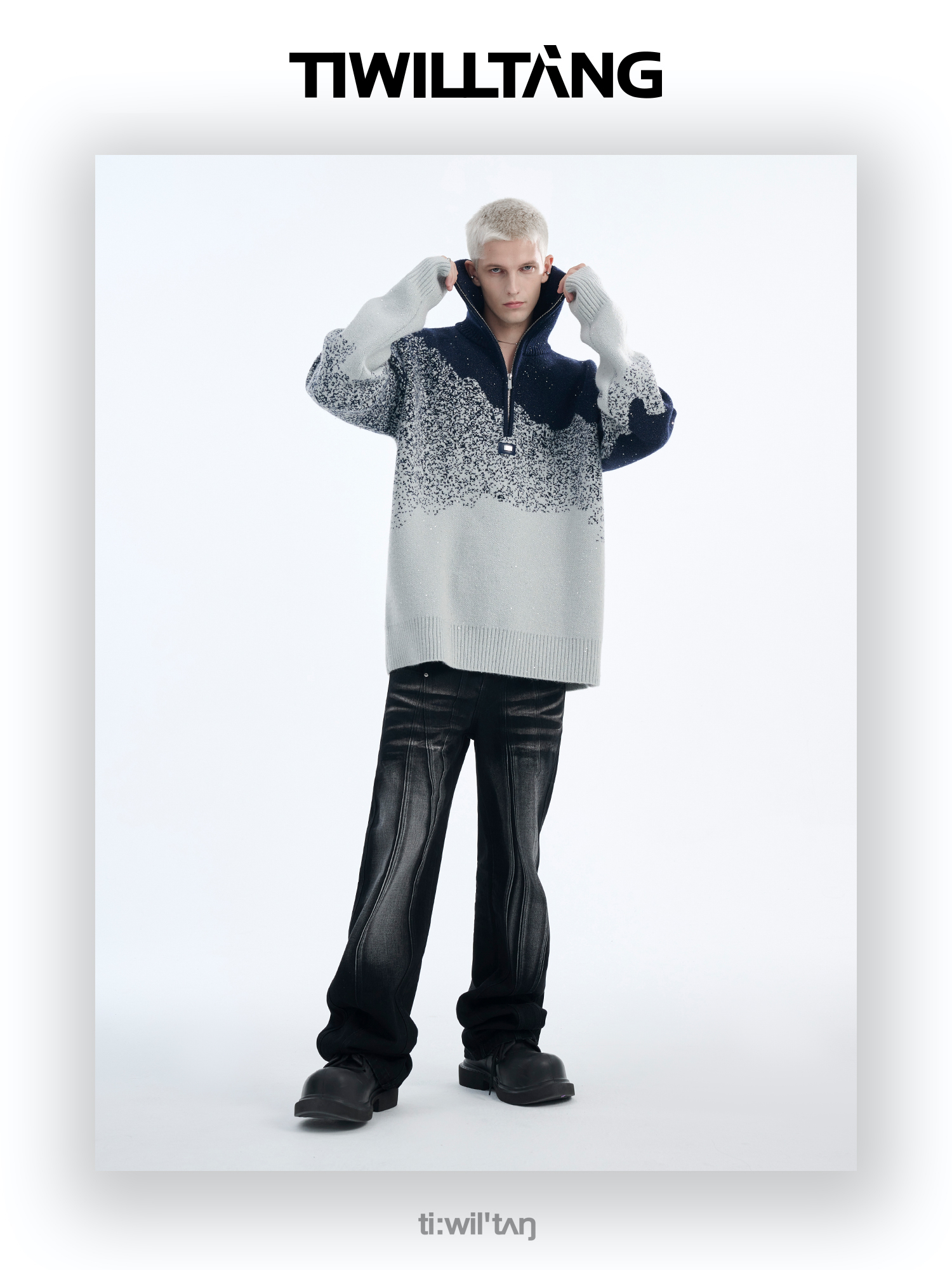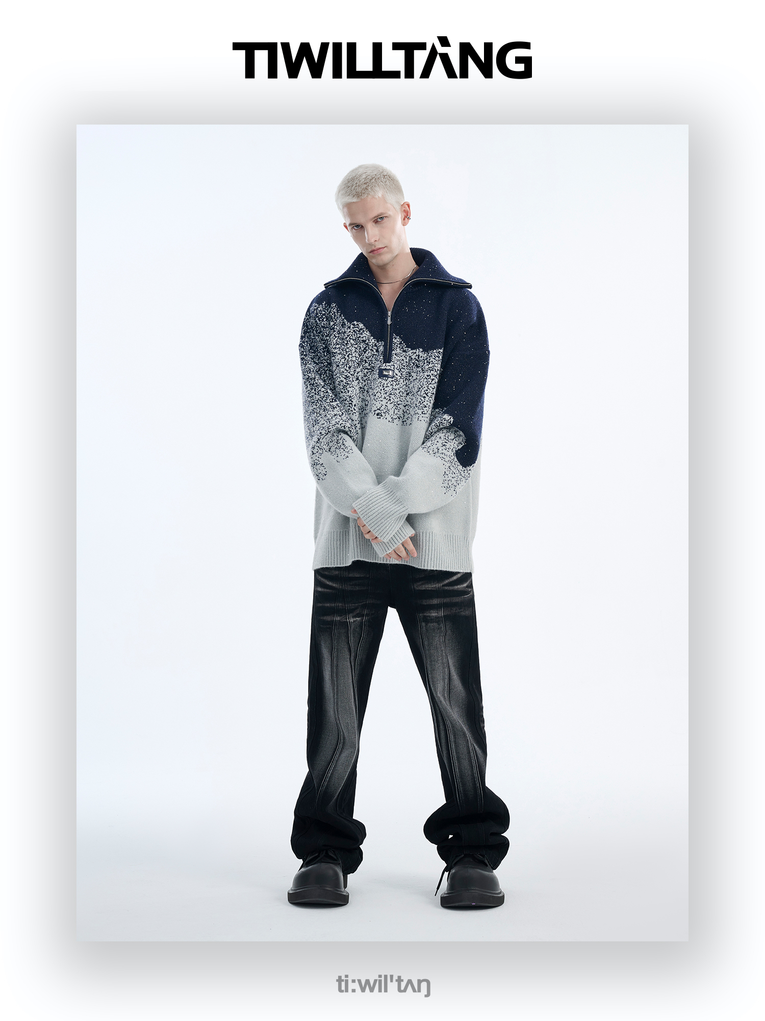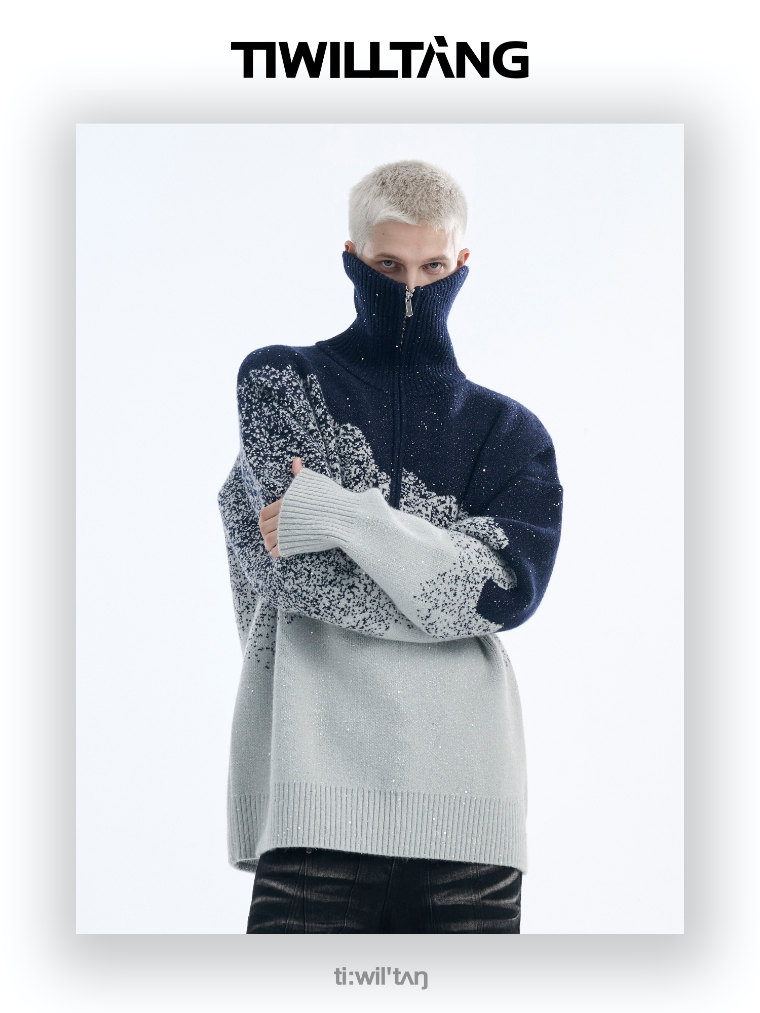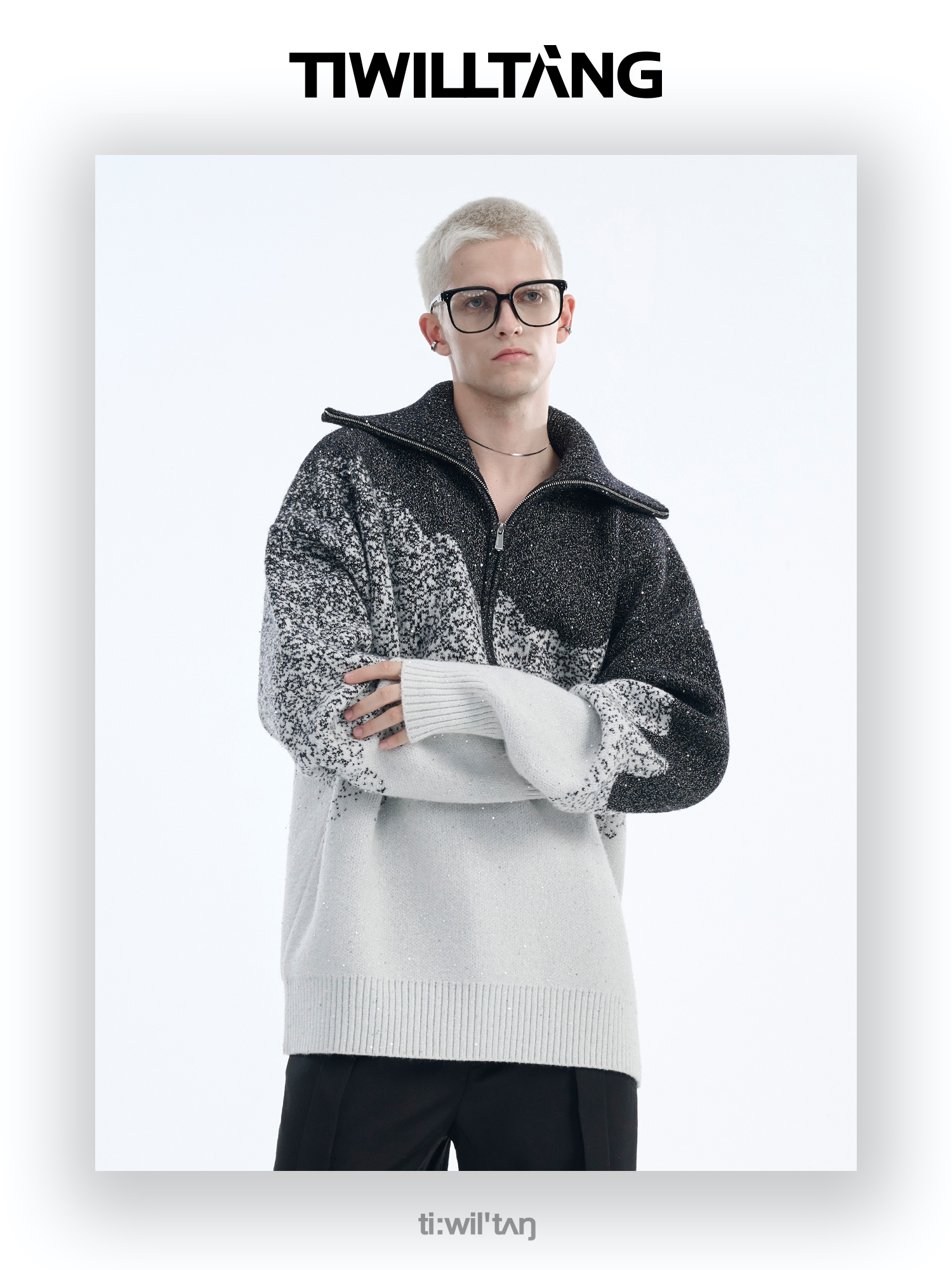 Gradient Half Zipper High-Neck Knit Sweater WN10715