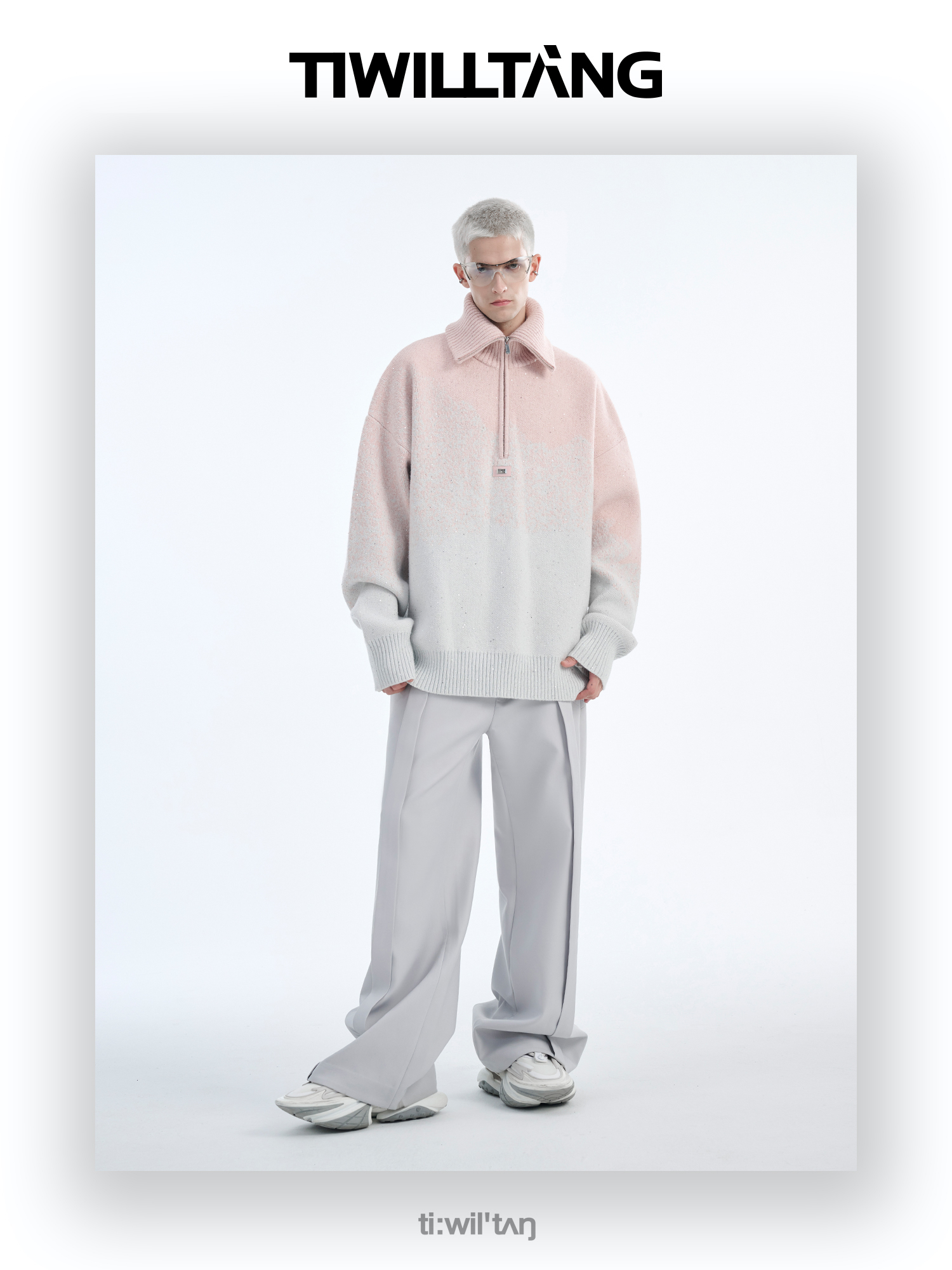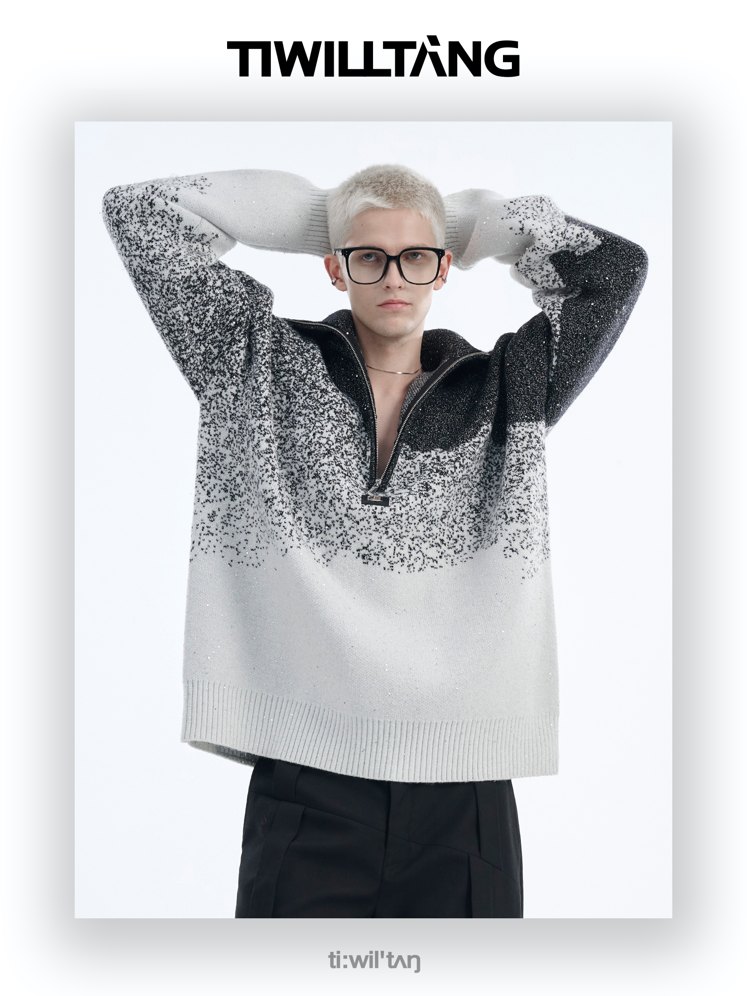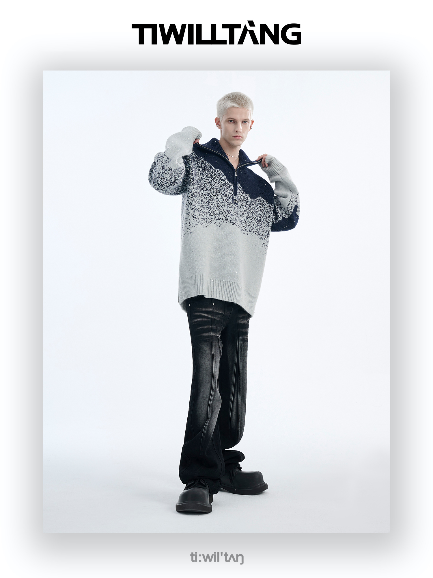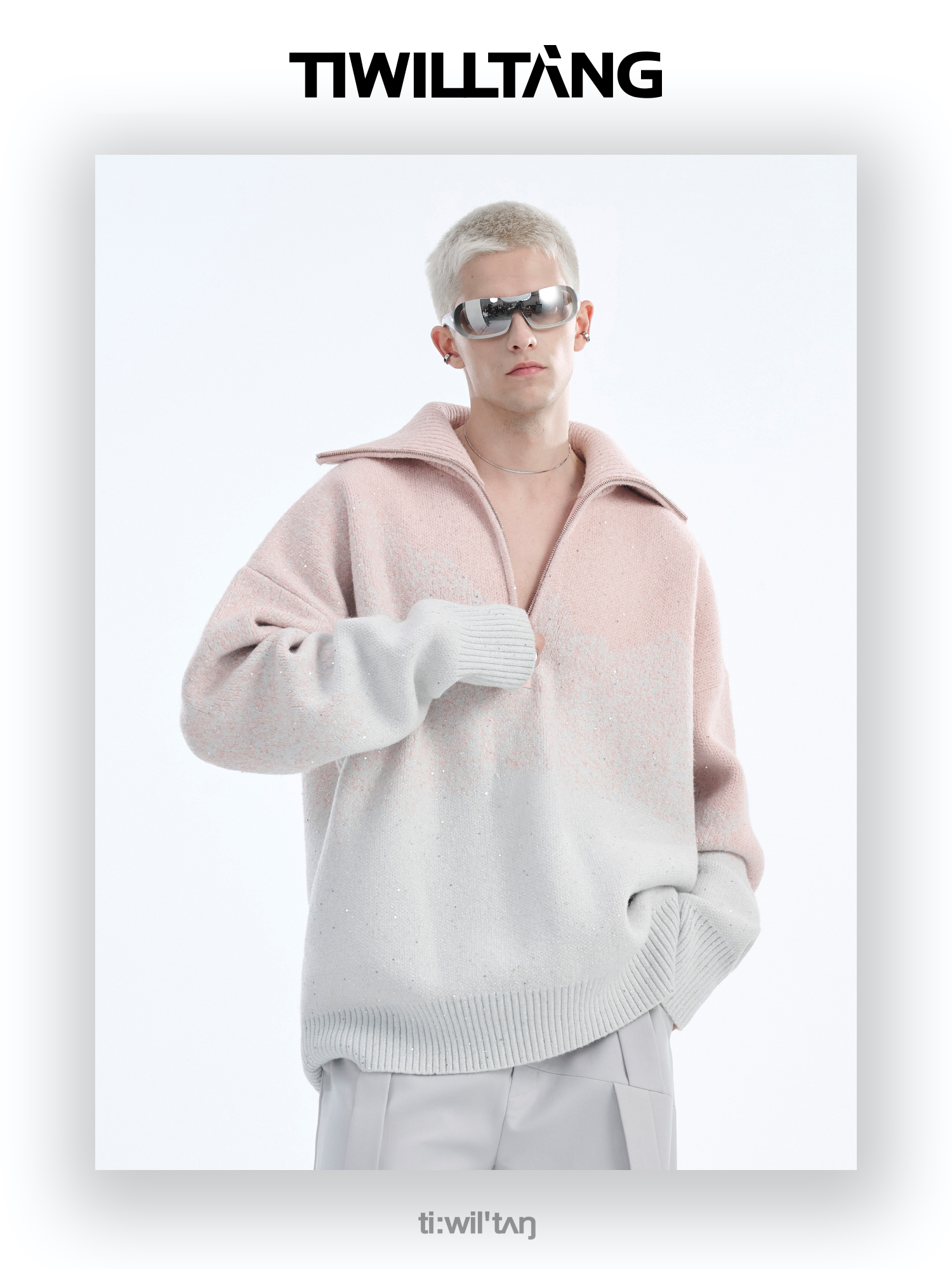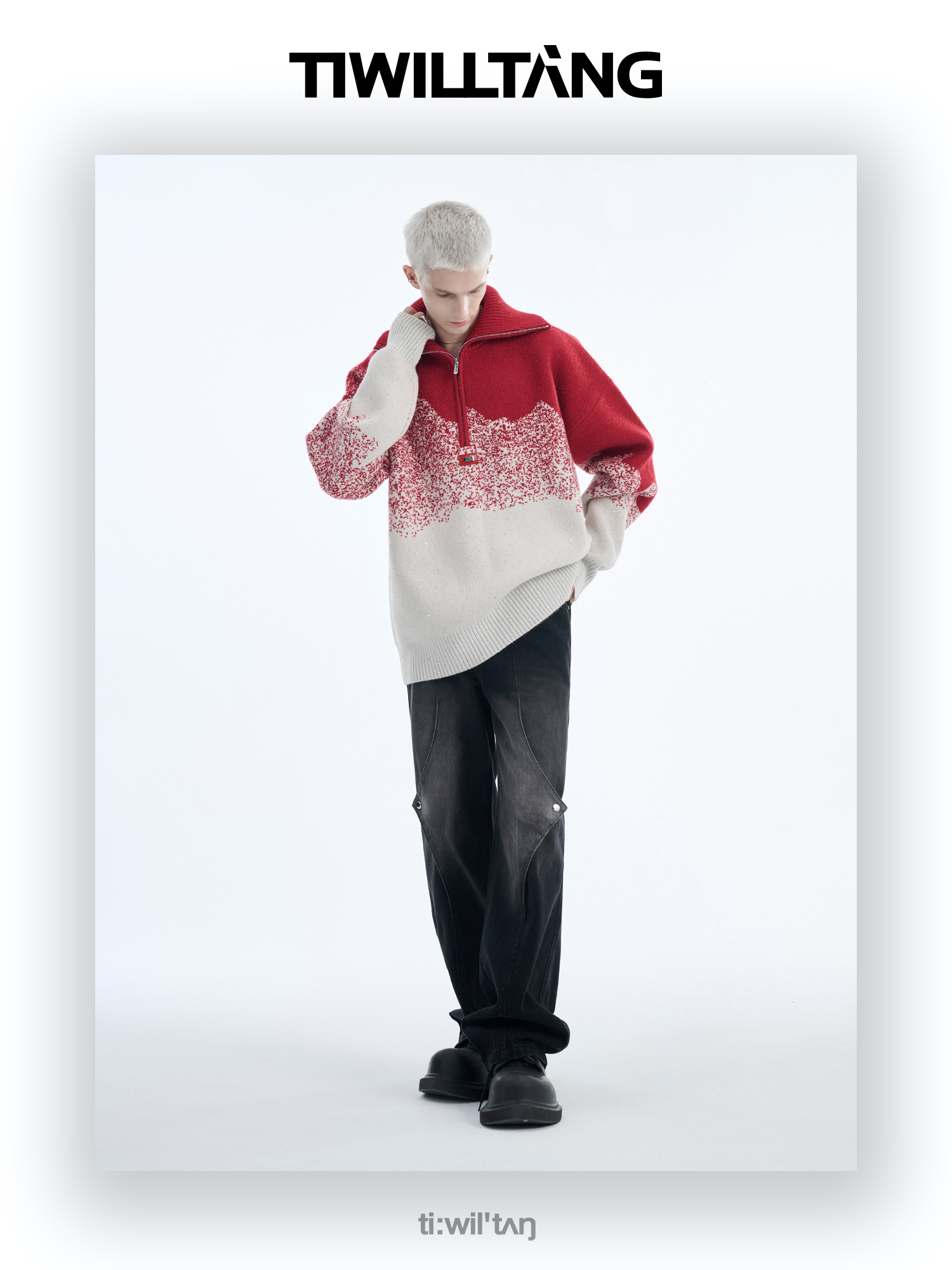 Gradient Half Zipper High-Neck Knit Sweater WN10715
