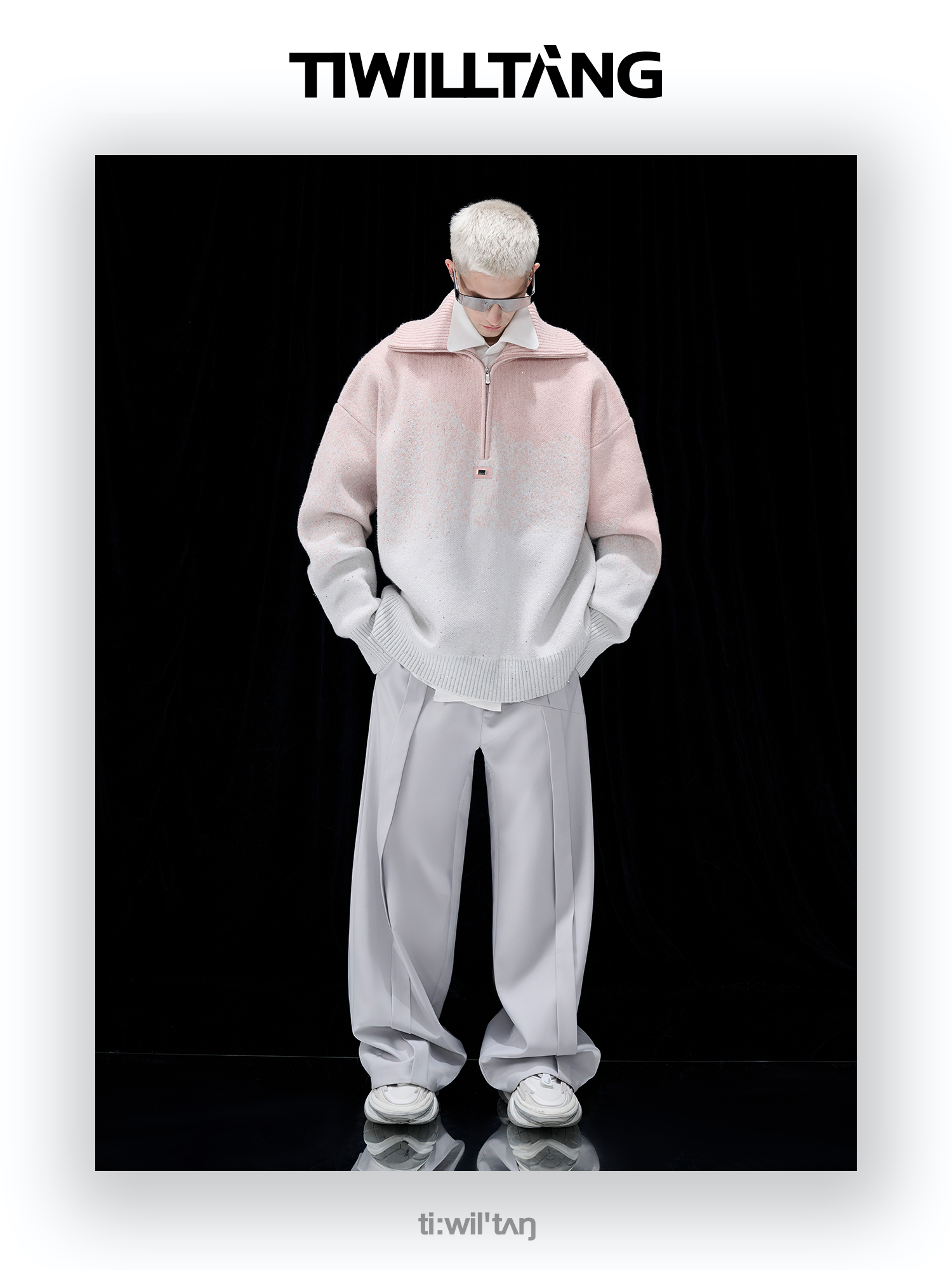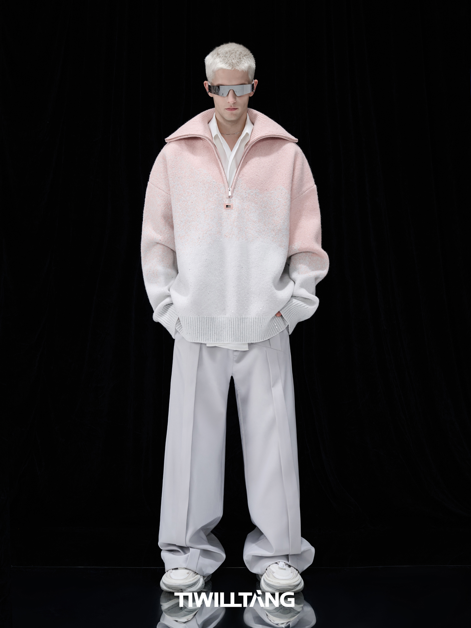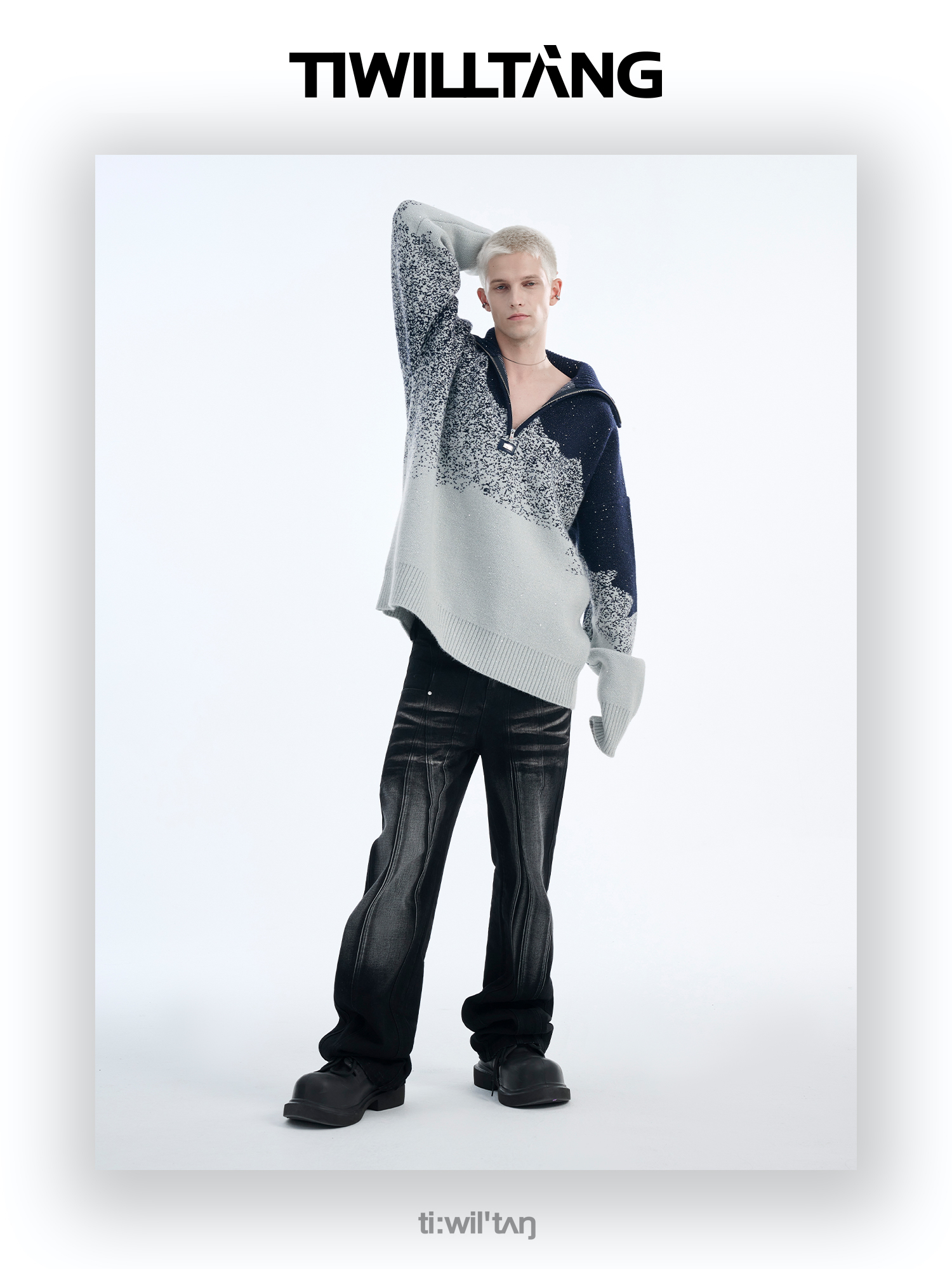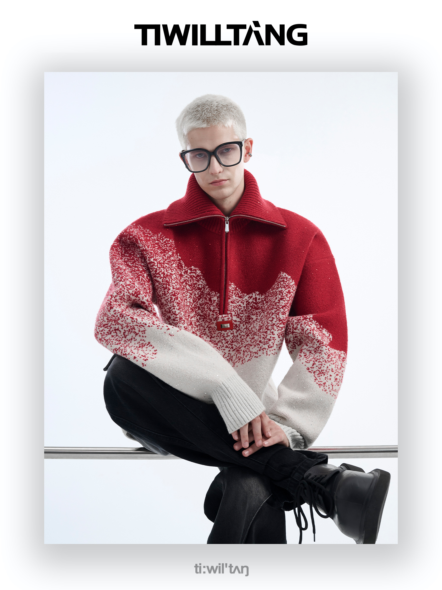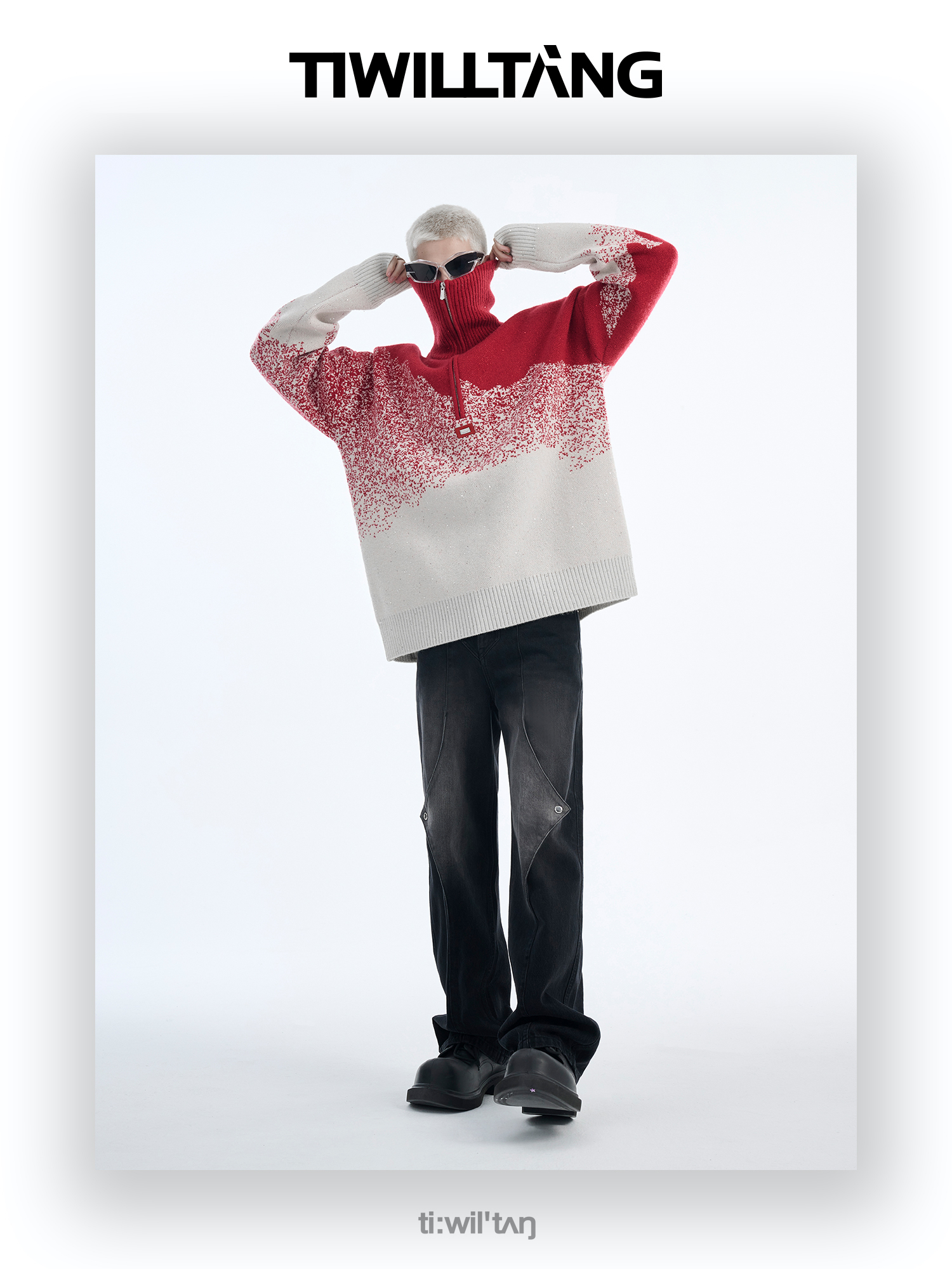 Gradient Half Zipper High-Neck Knit Sweater WN10715