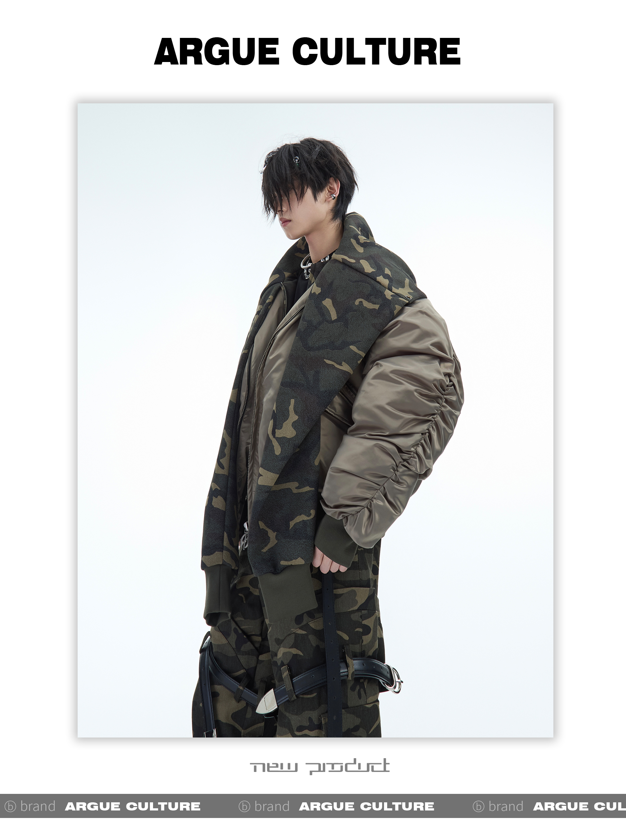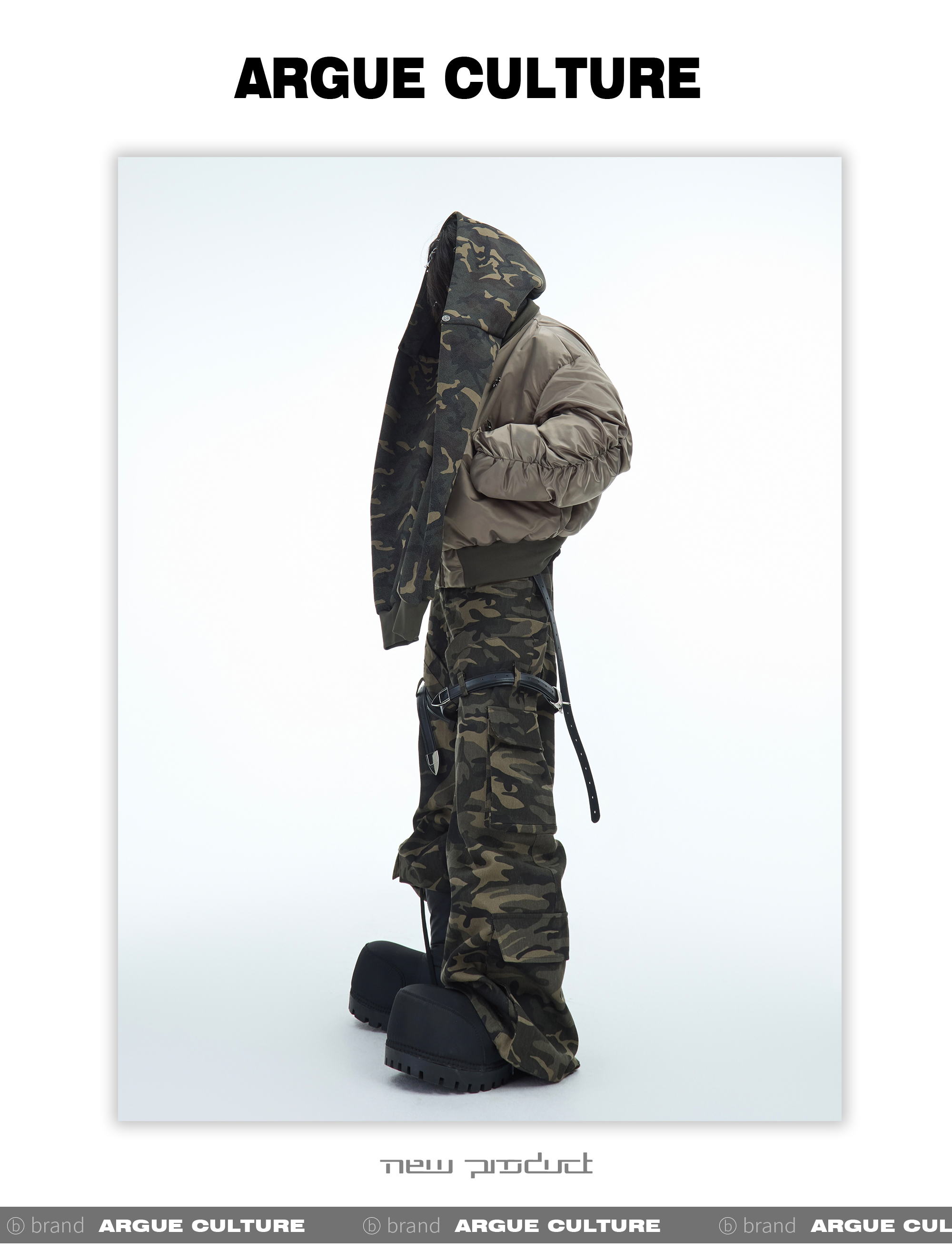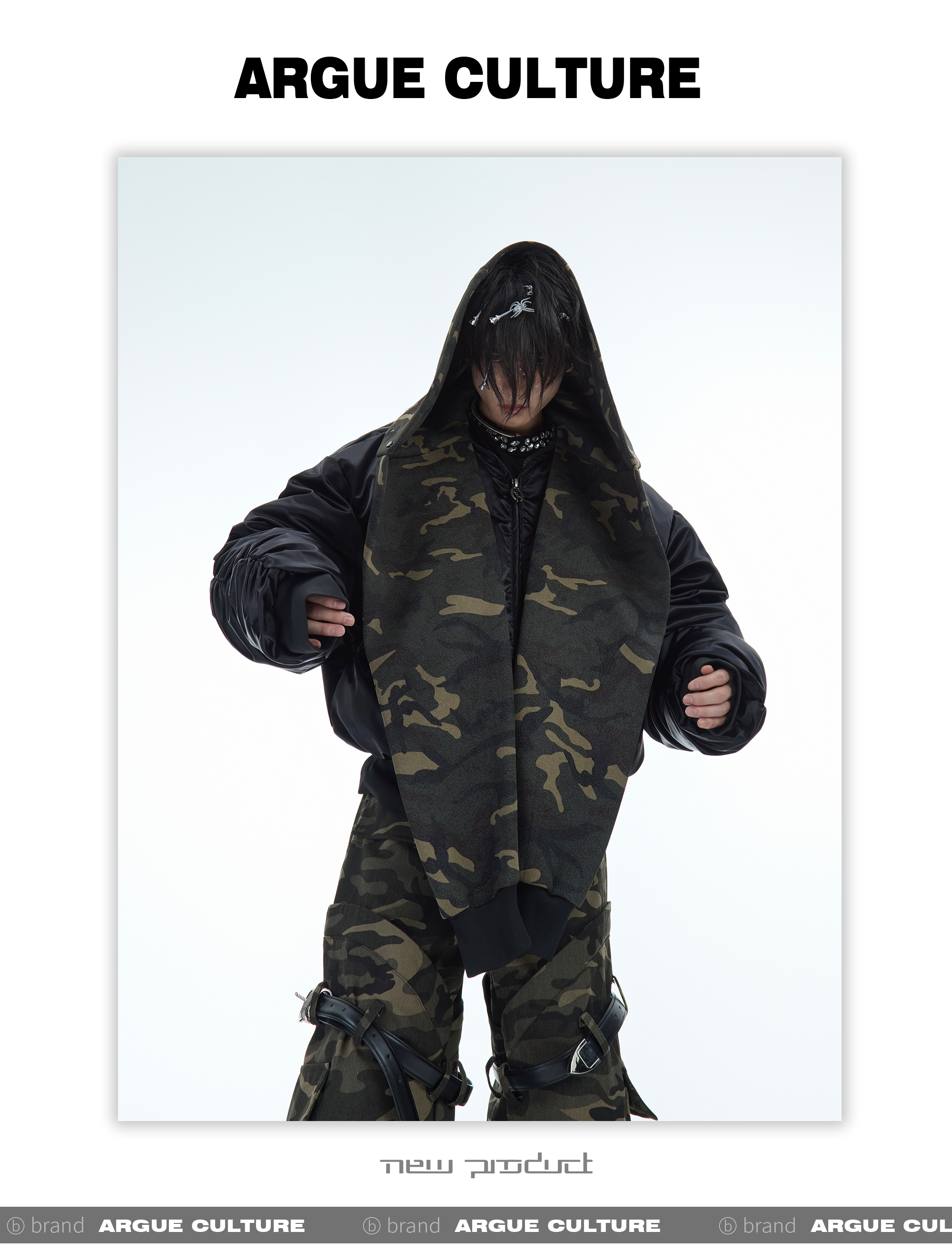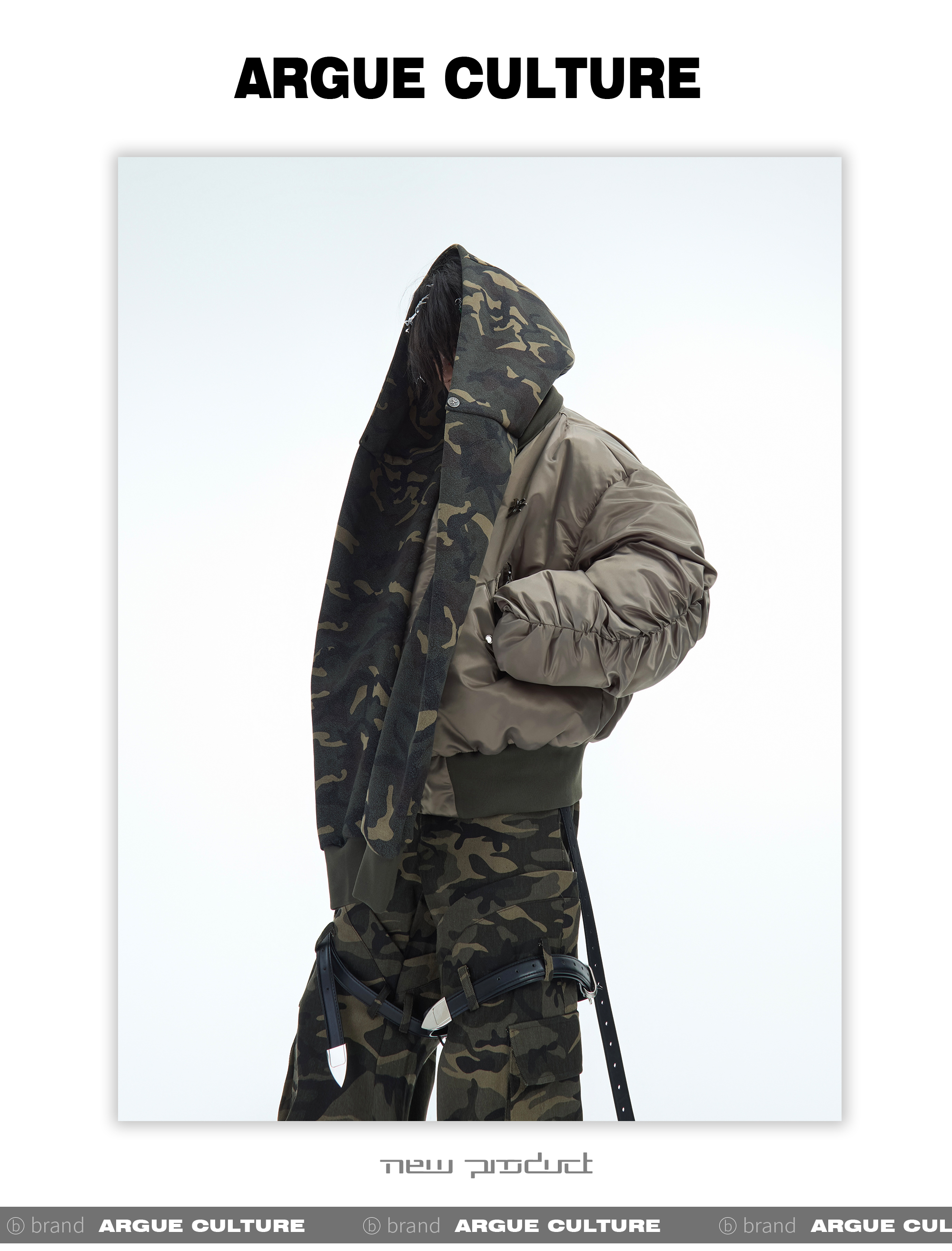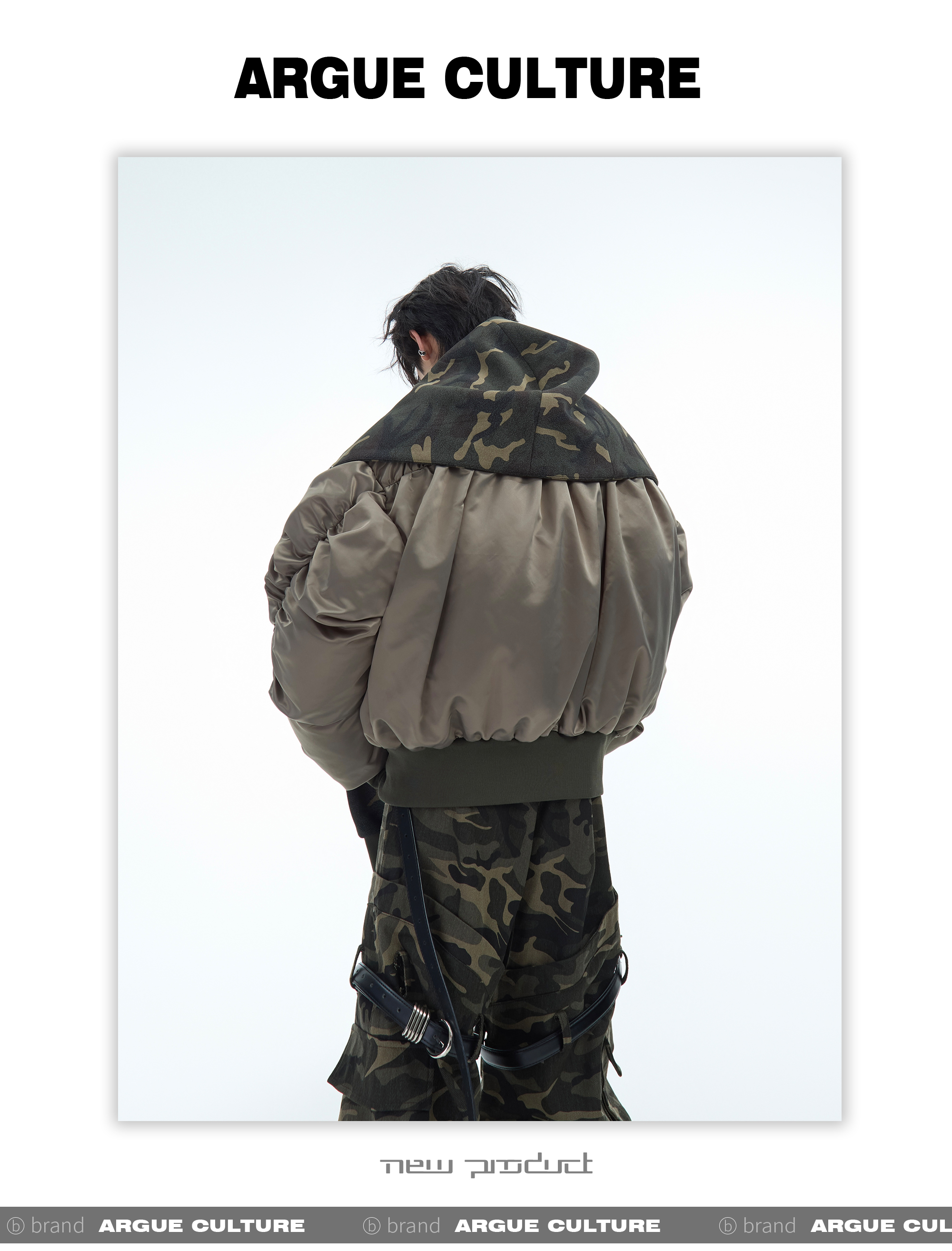 Camouflage Hooded Patchwork Oversize Puffer Jacket WN10867