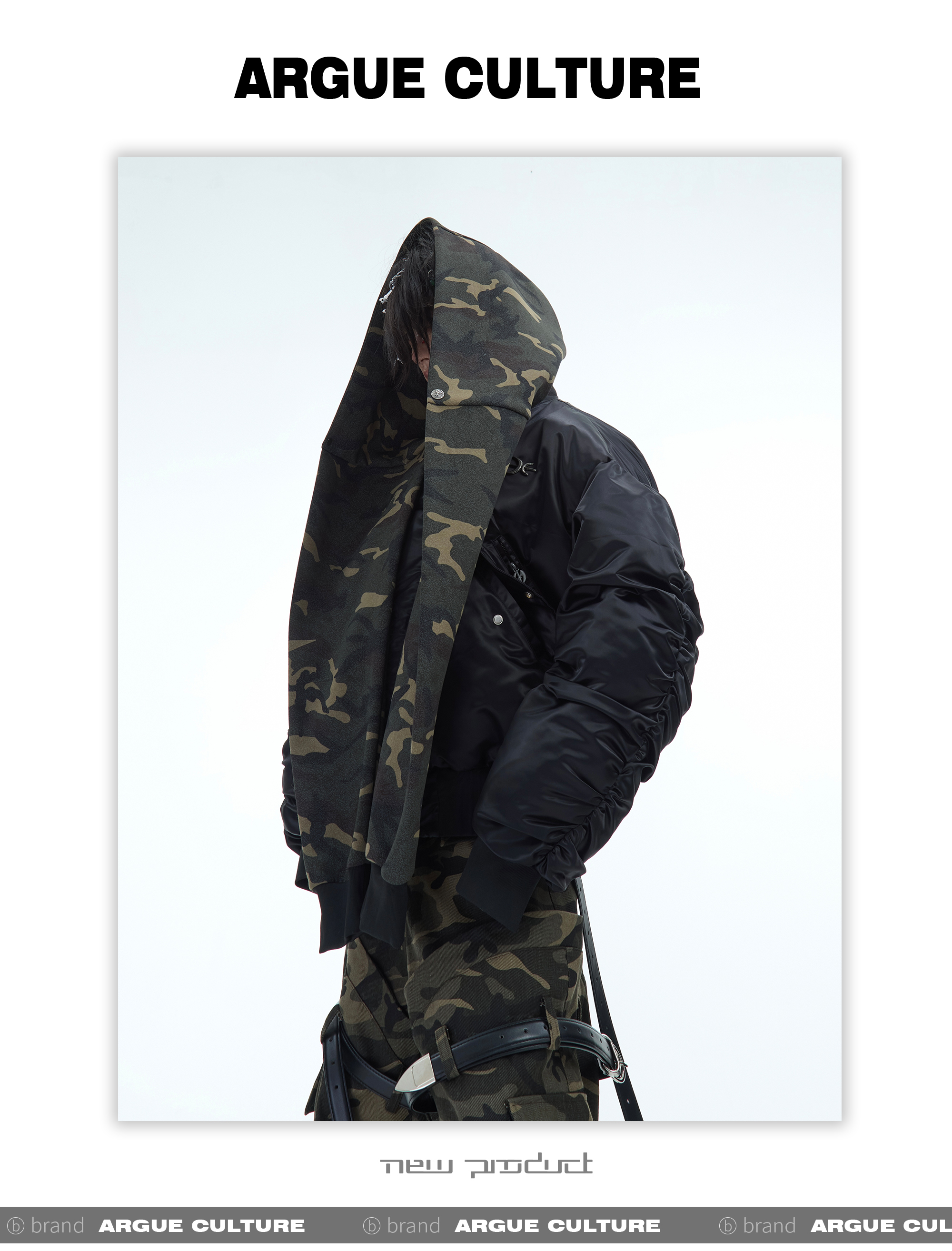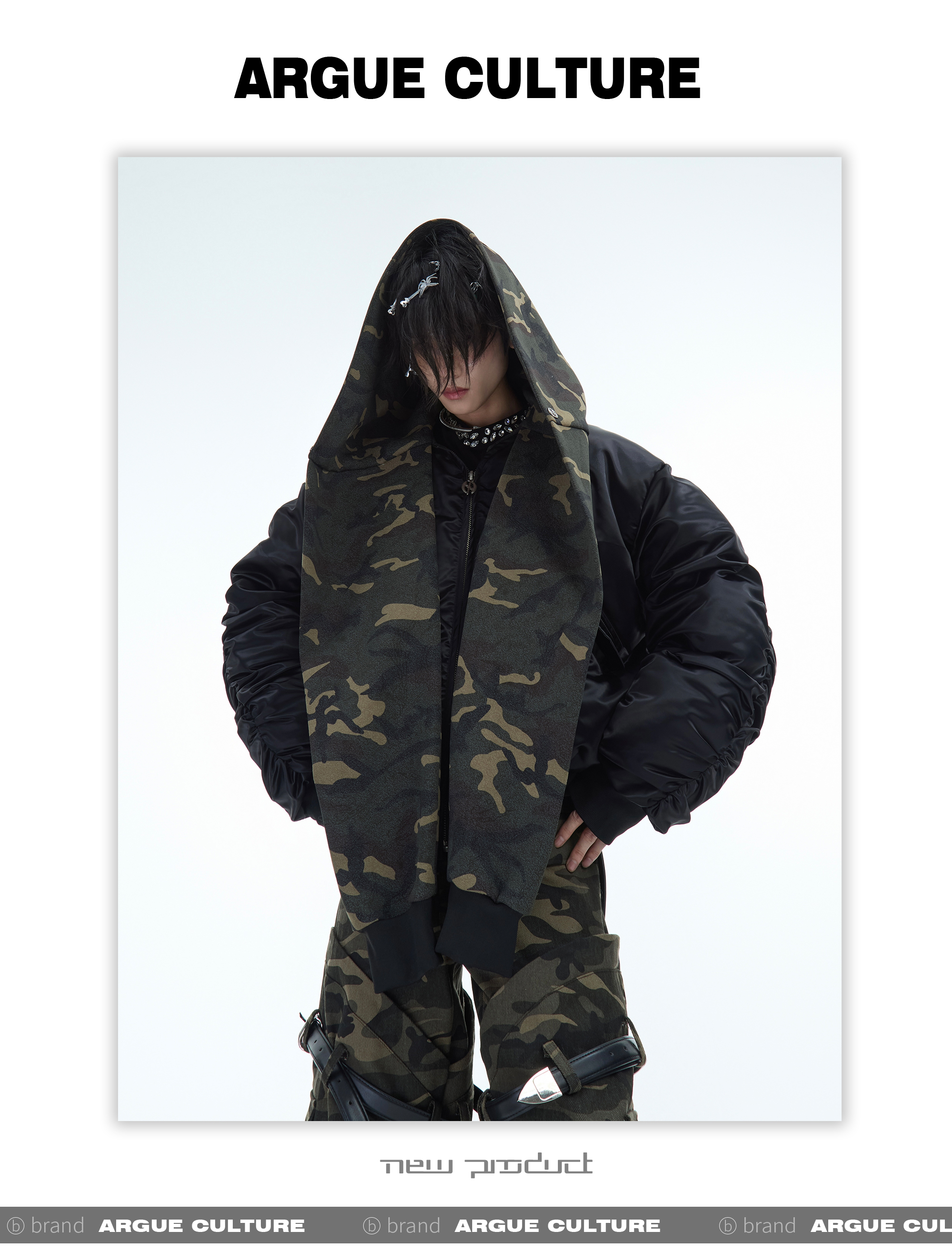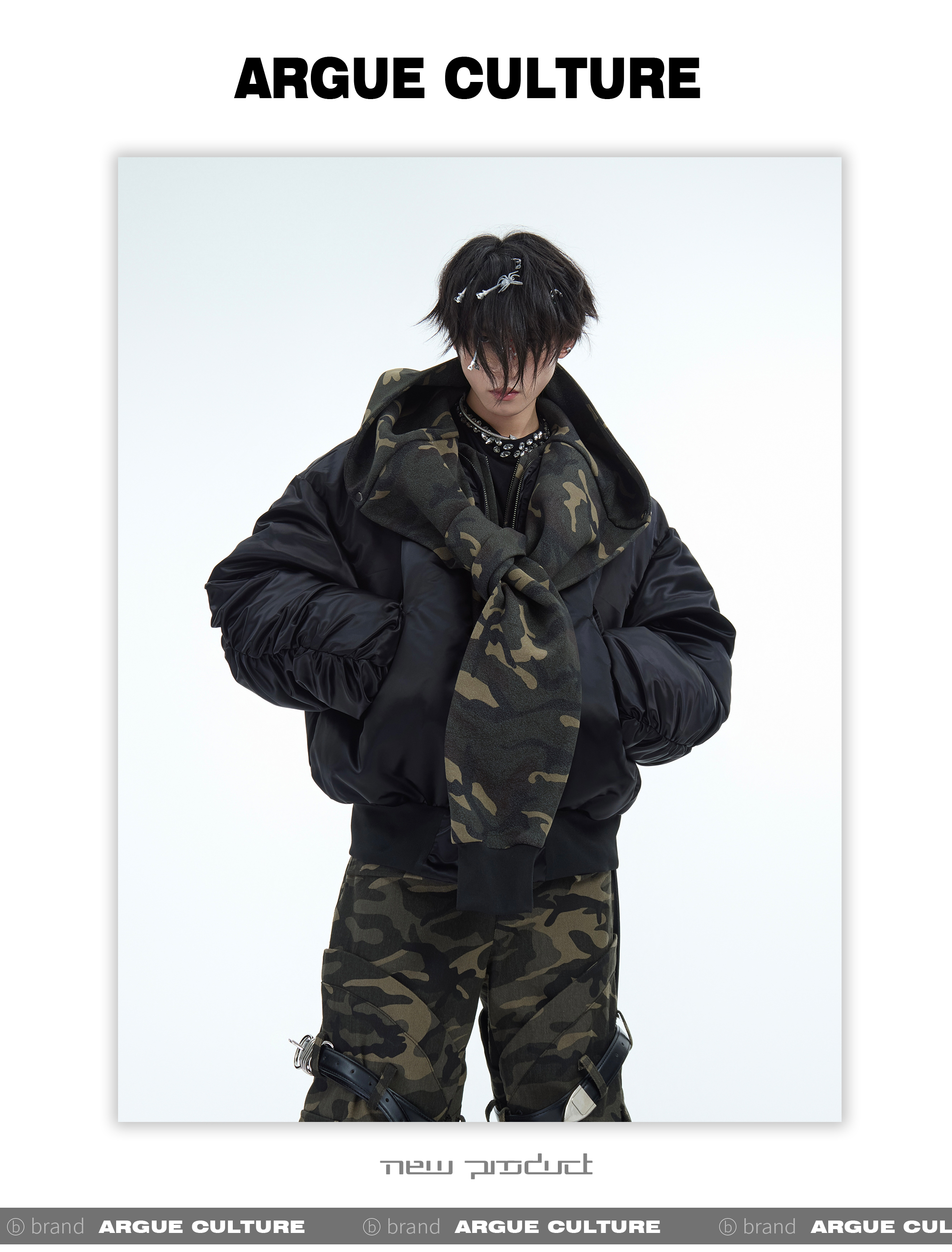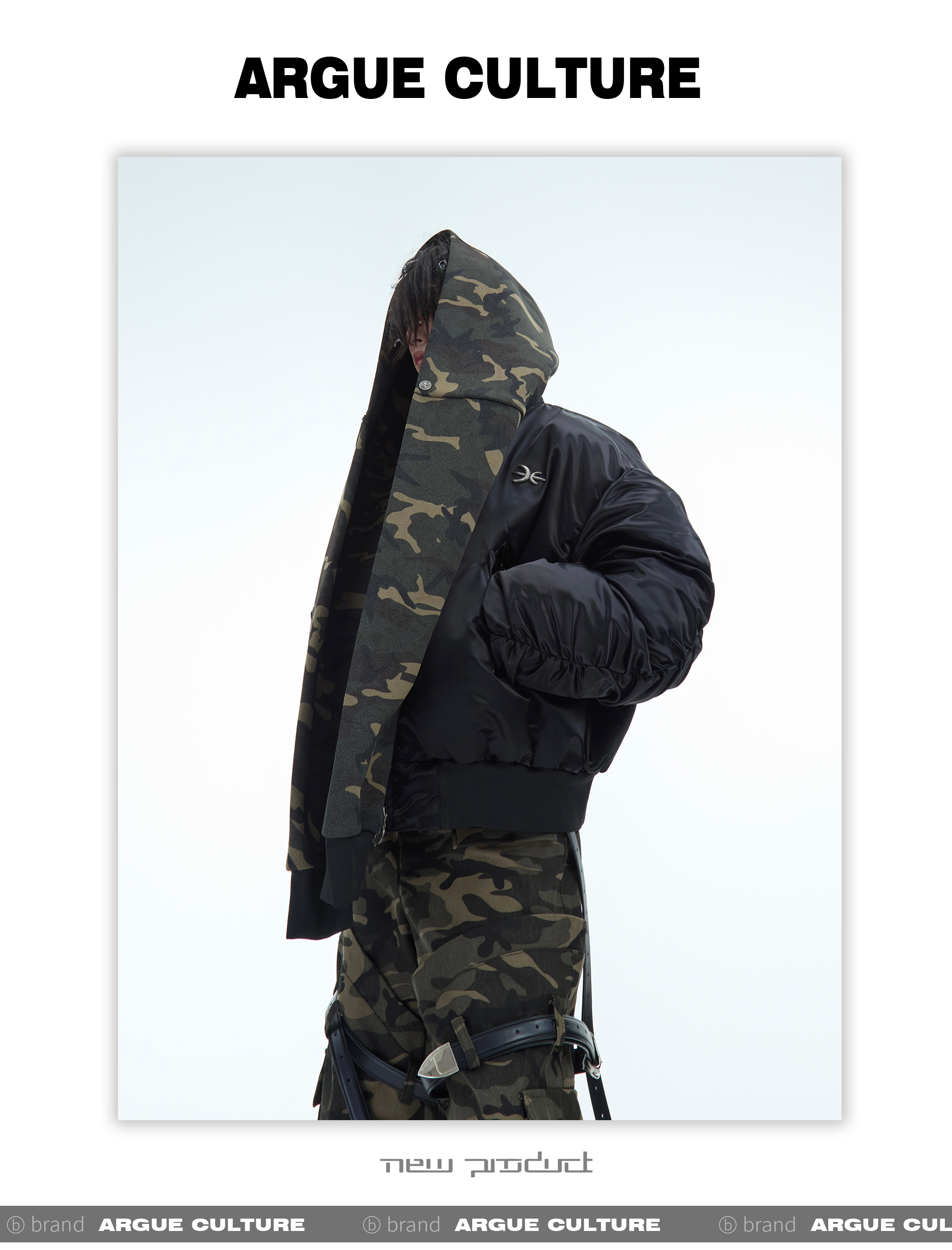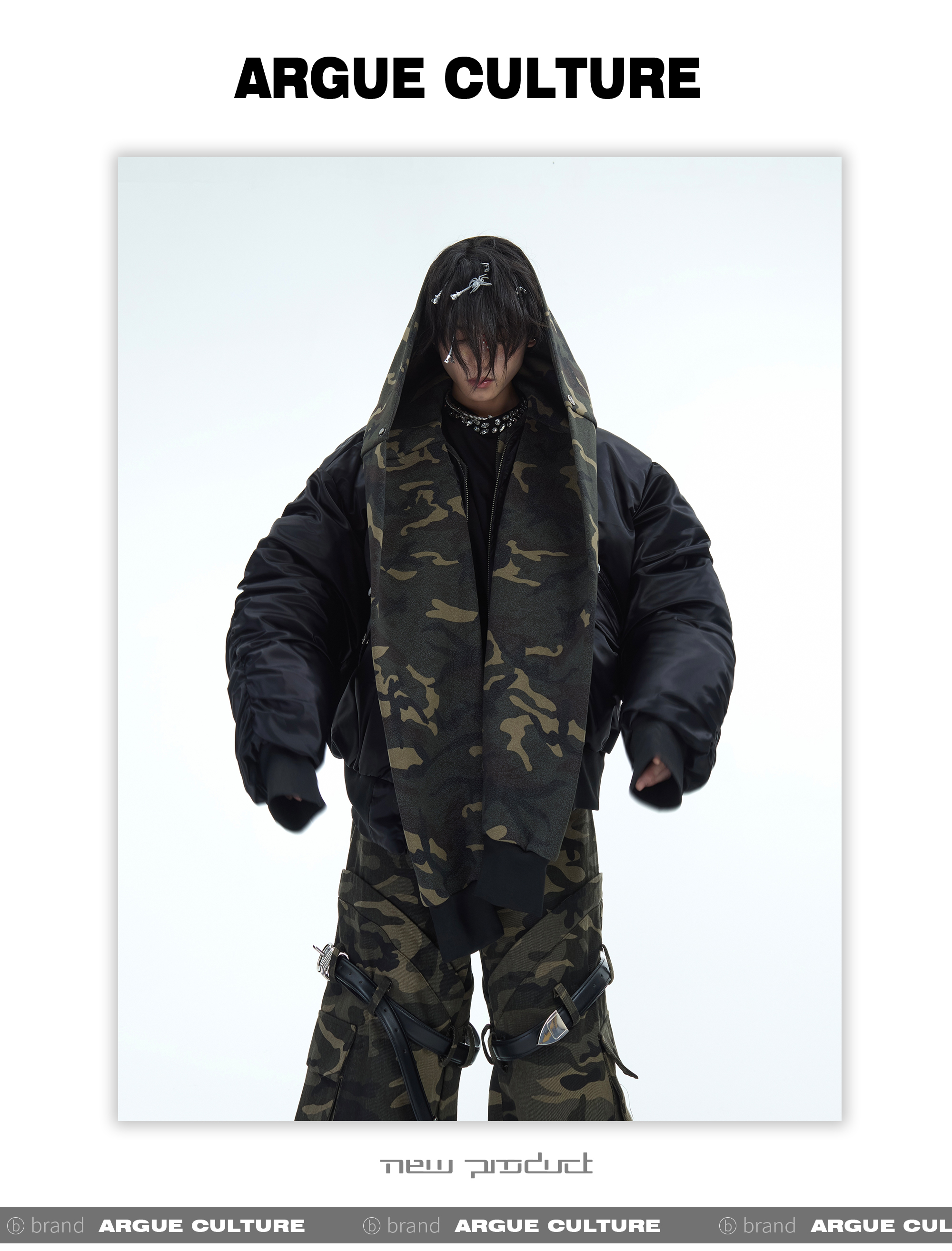 Camouflage Hooded Patchwork Oversize Puffer Jacket WN10867