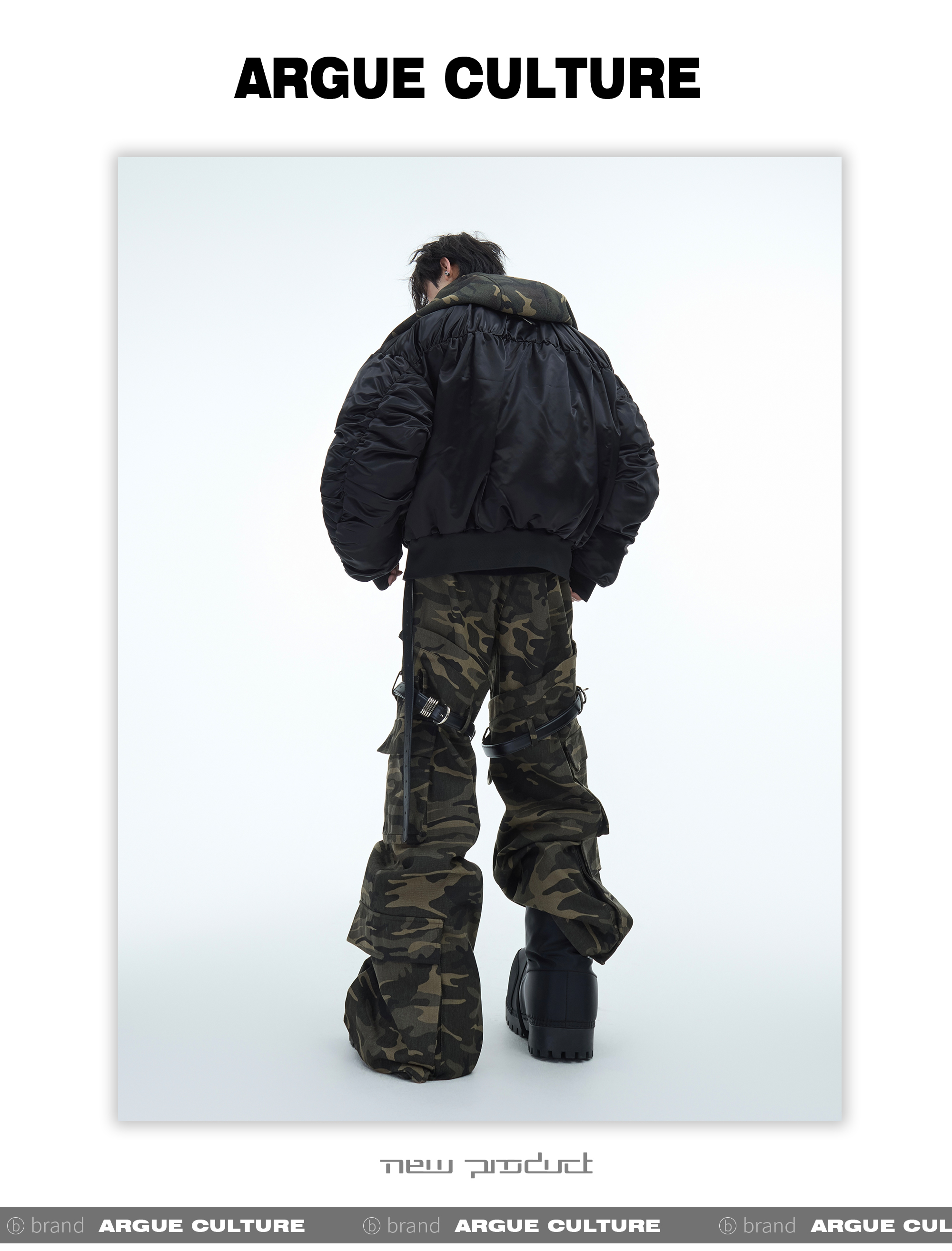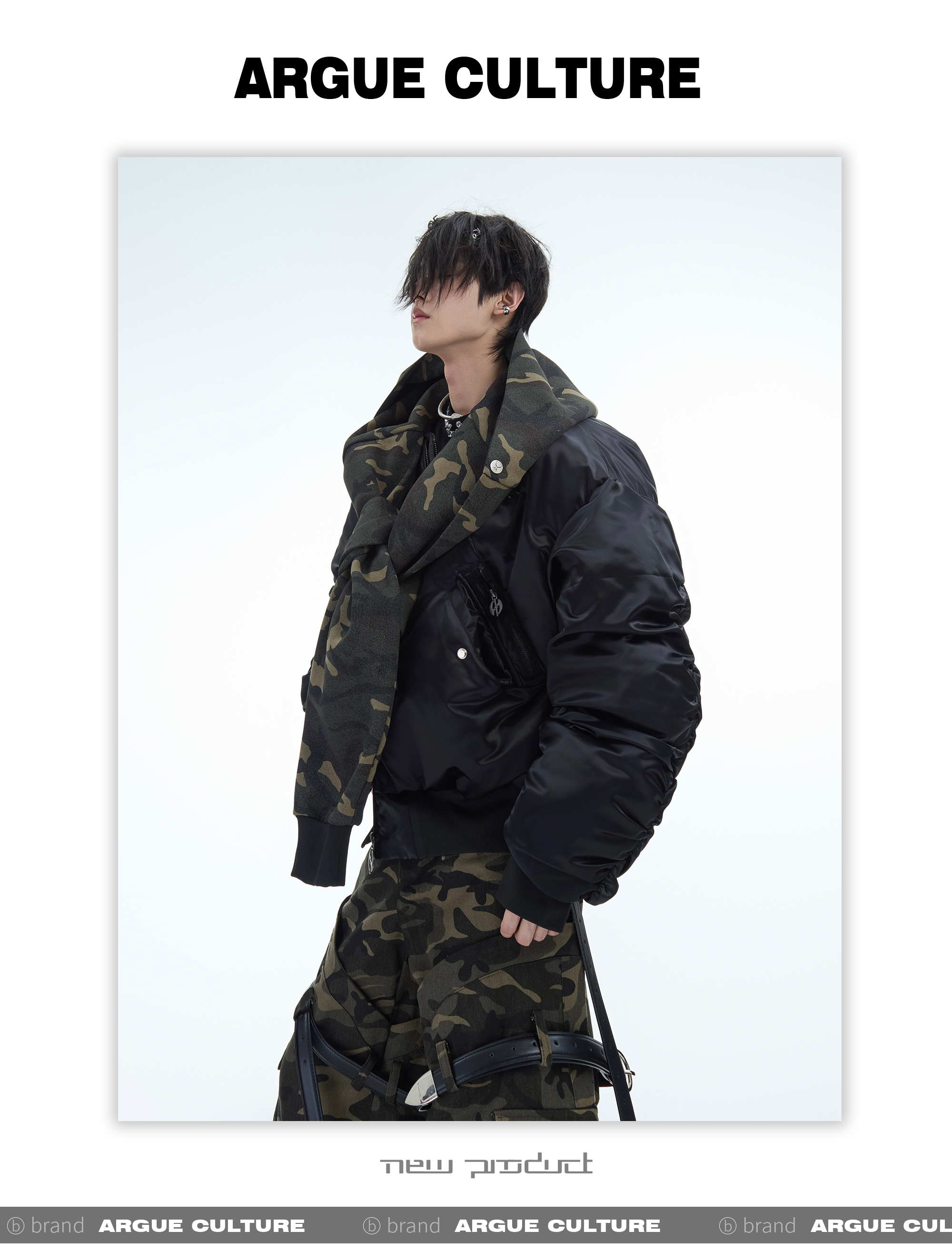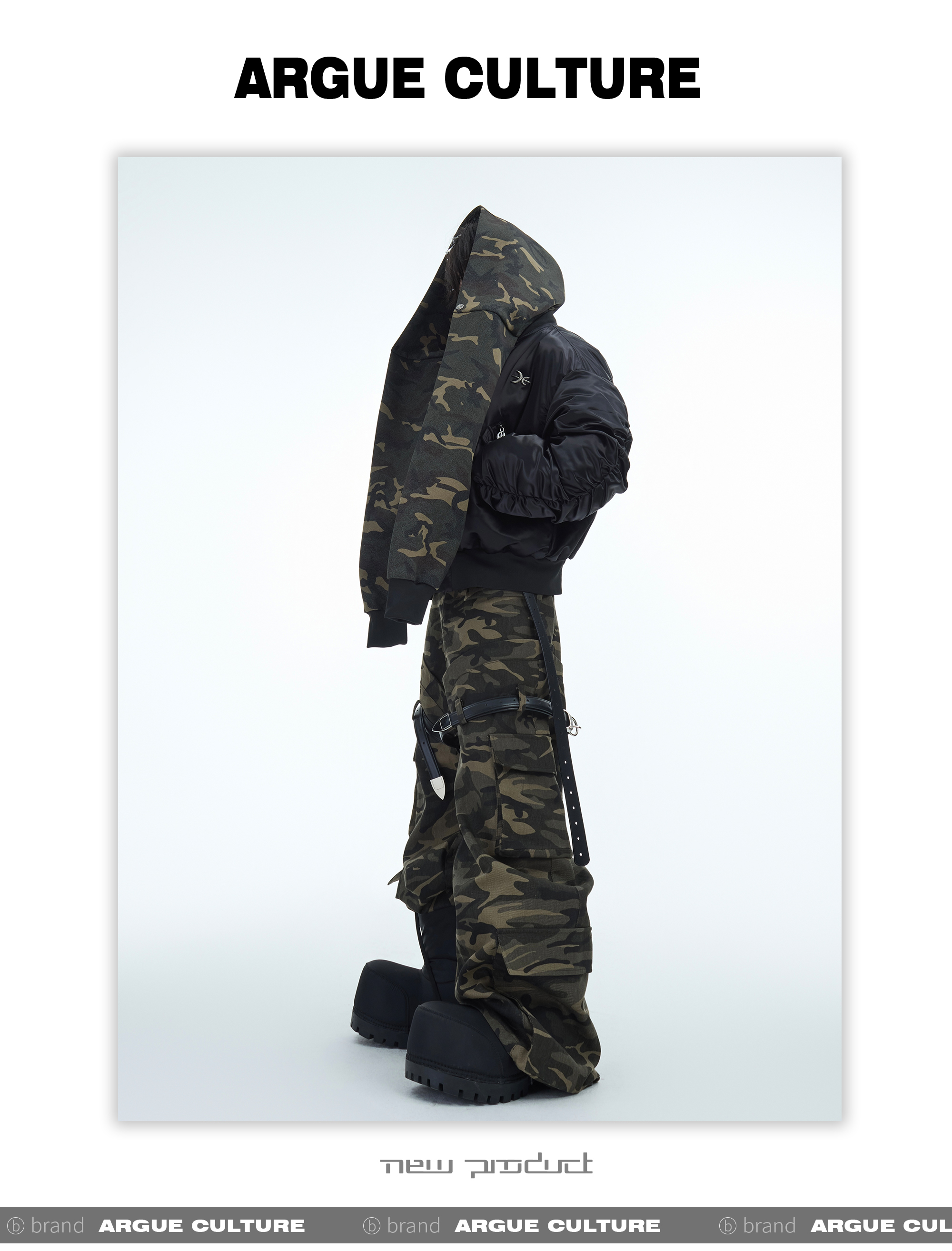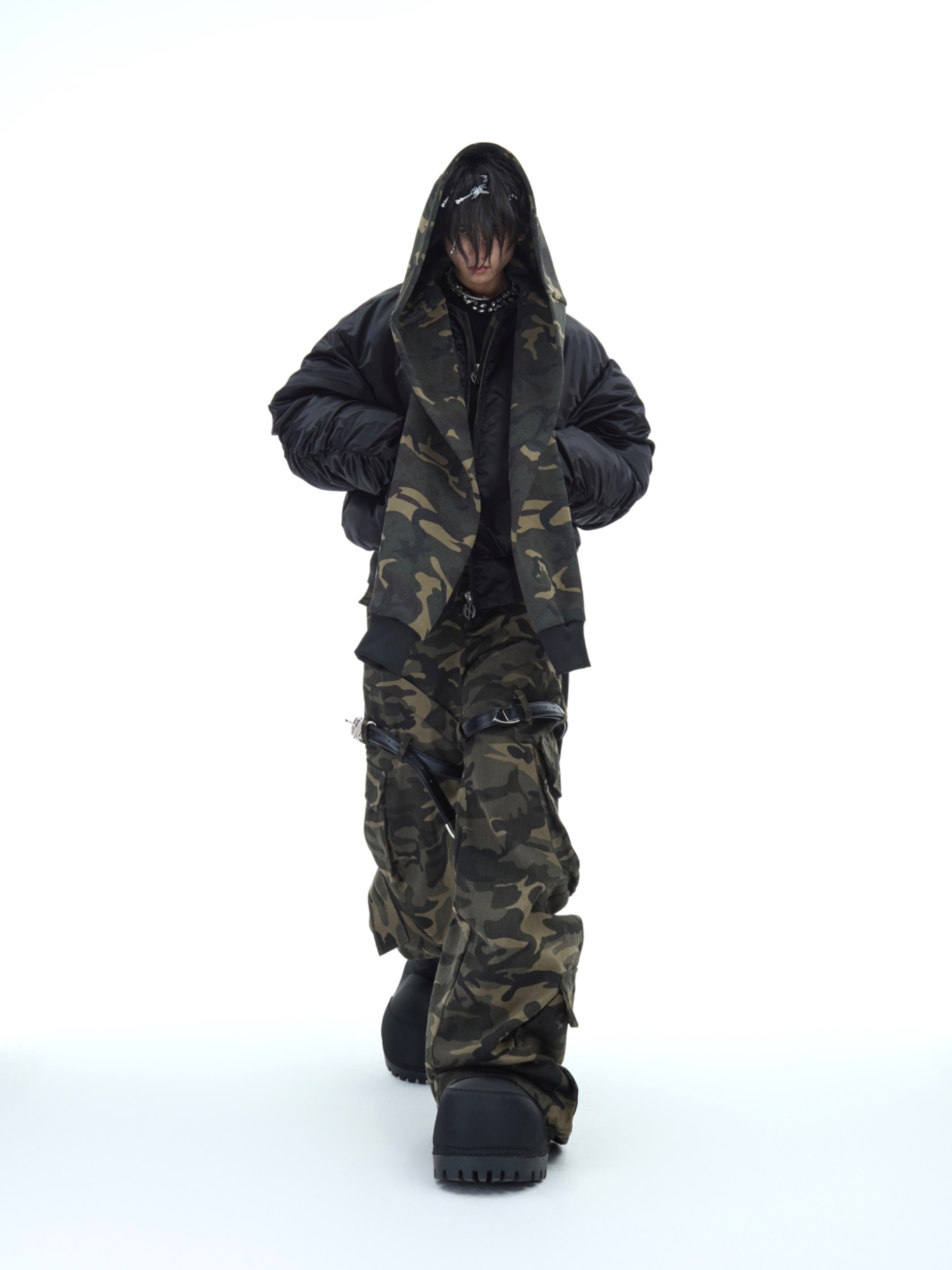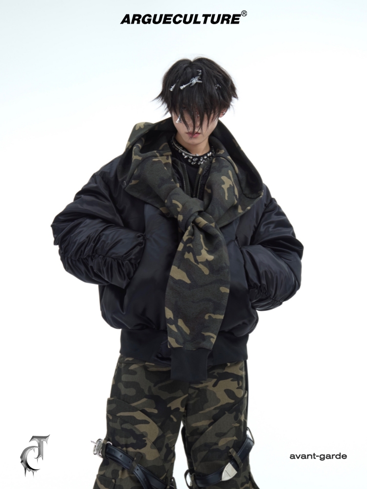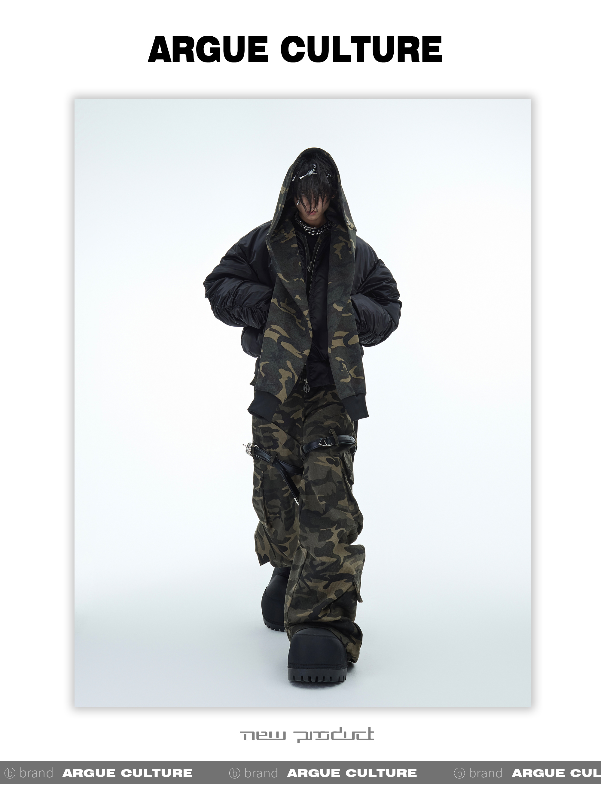 Camouflage Hooded Patchwork Oversize Puffer Jacket WN10867
