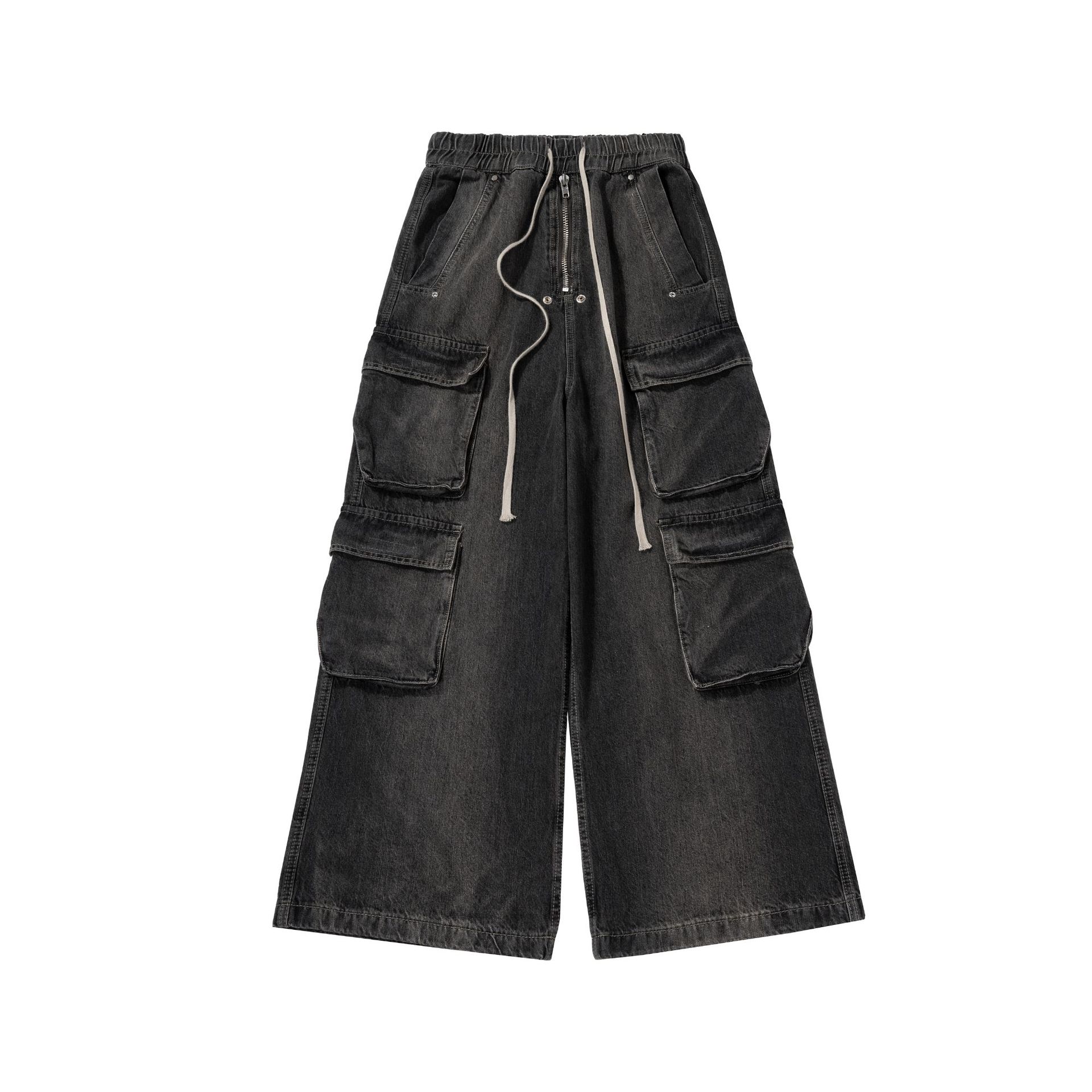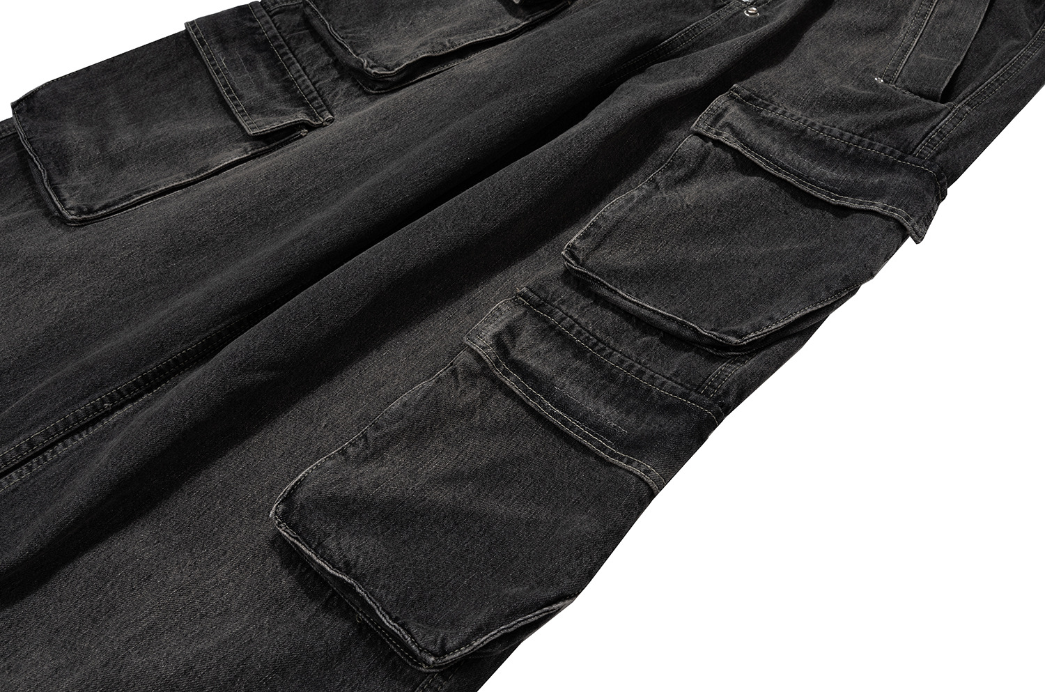 Washed Wide-Leg Cargo Denim Jeans WN11309