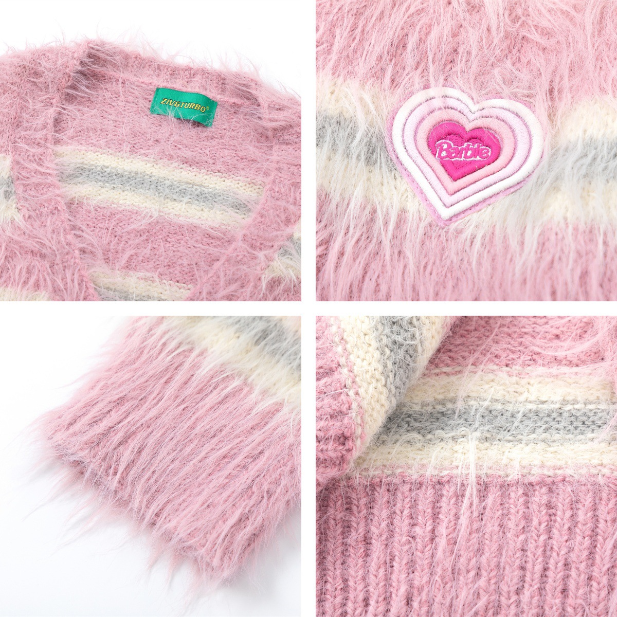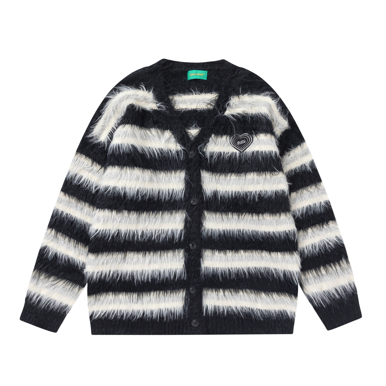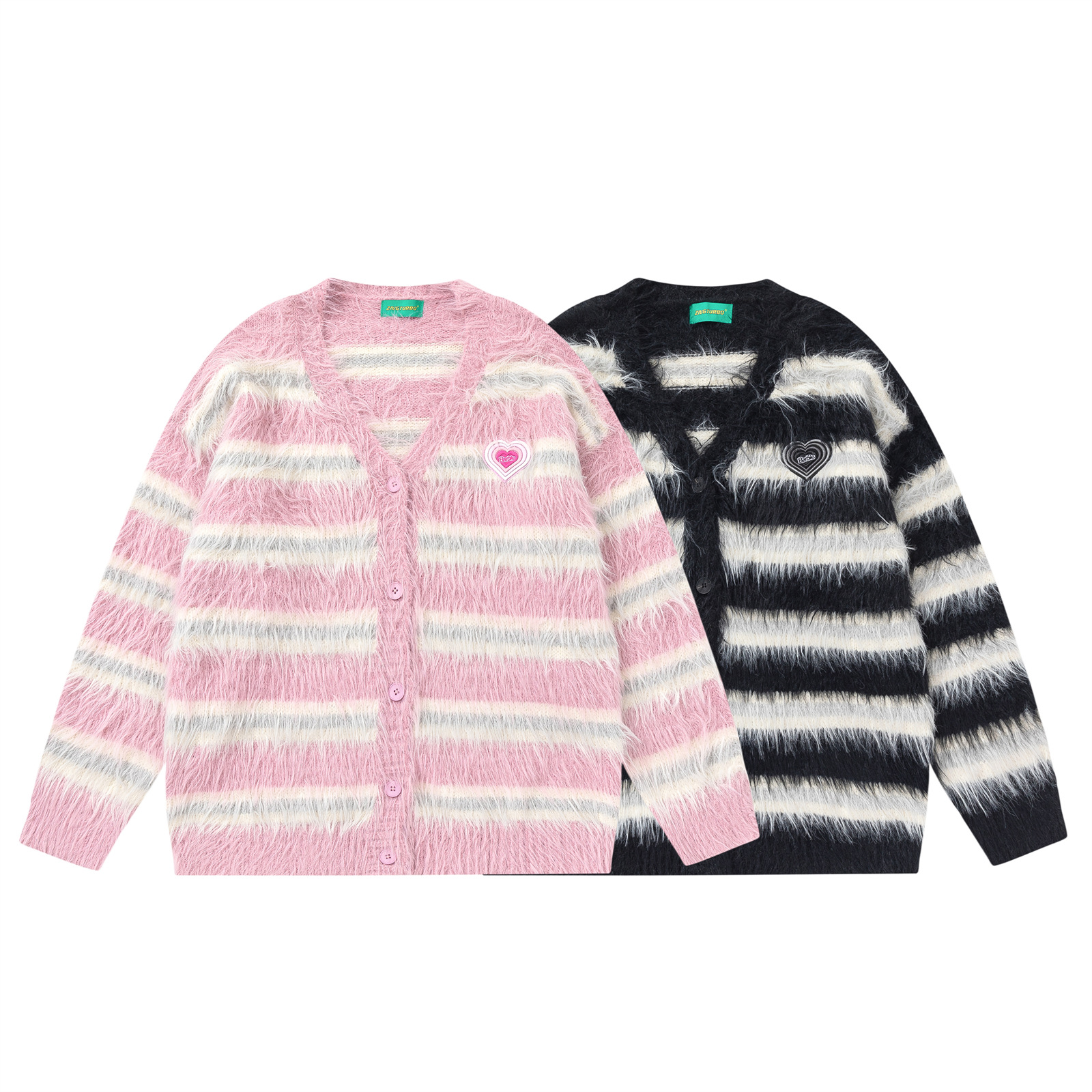 Stripe Heart Embroidery Collegiate Knit Cardigan WN11522