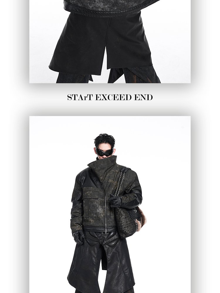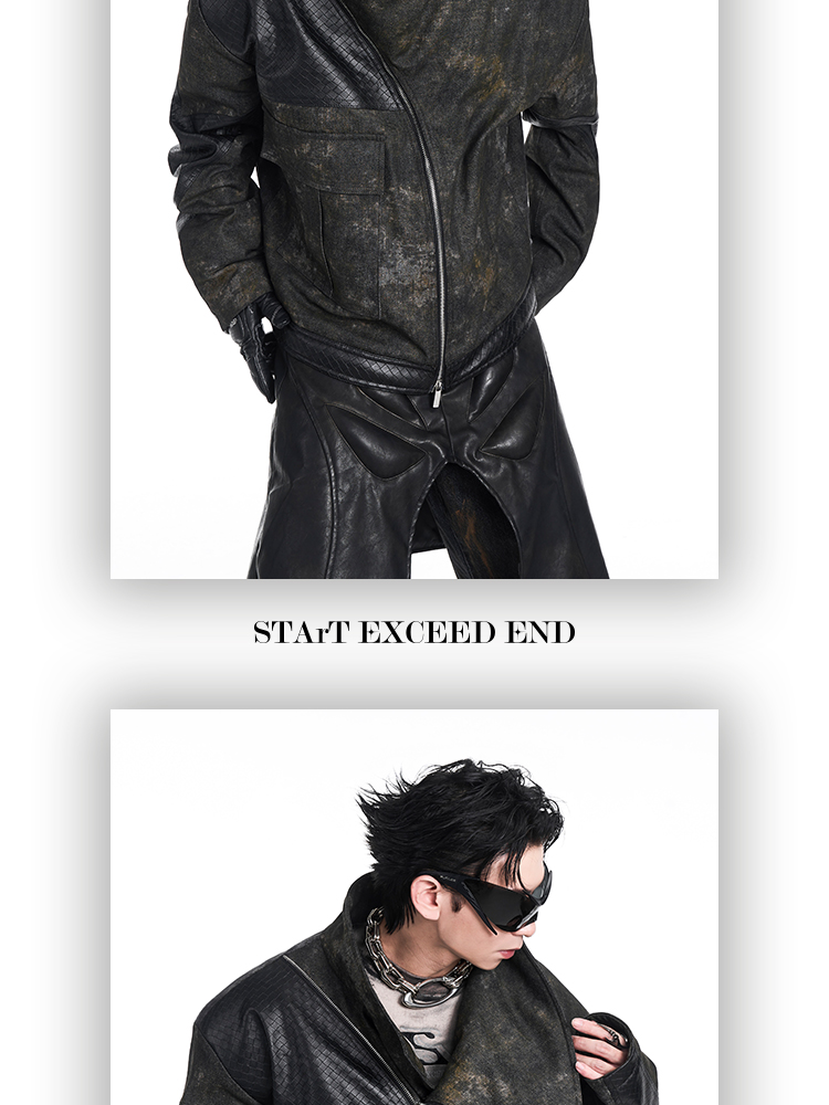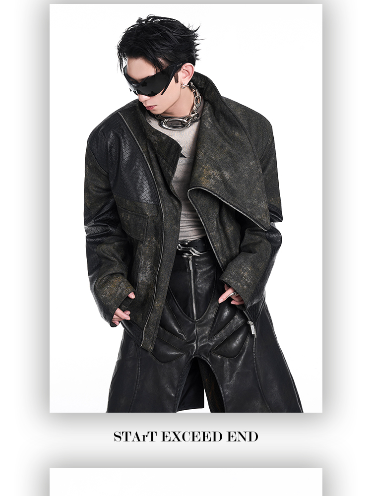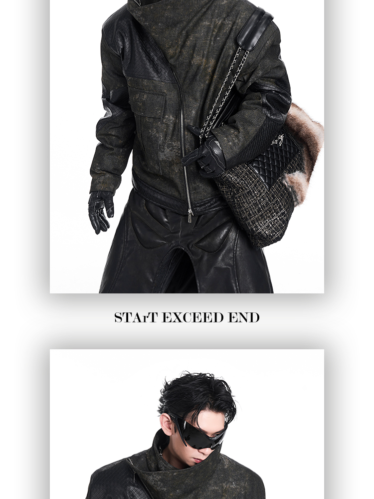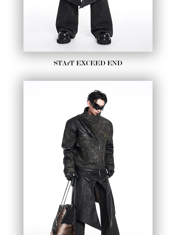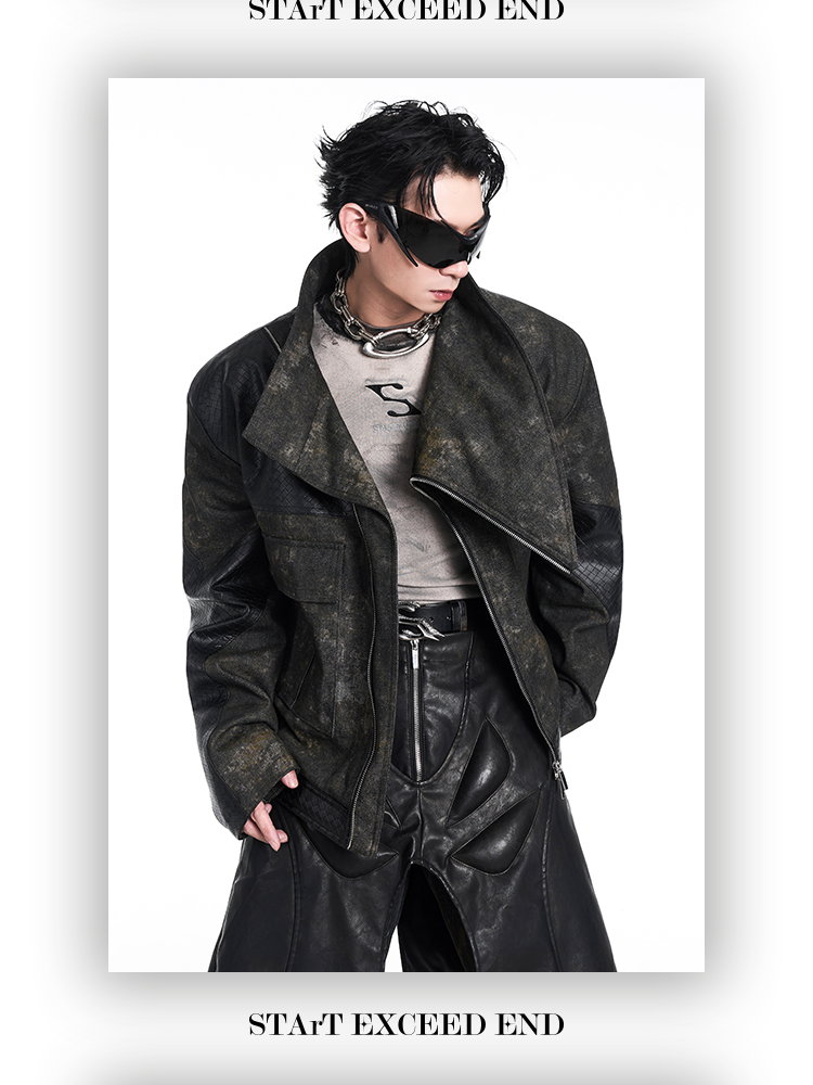 Diagonal Zipper Damage Thick Patchwork Jacket WN11721