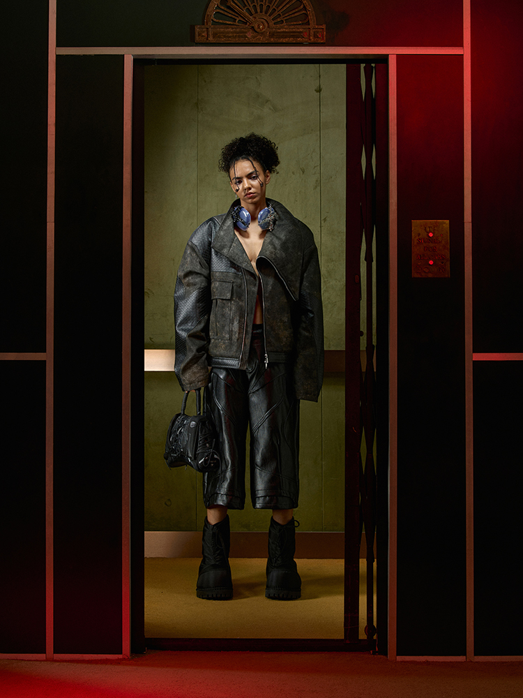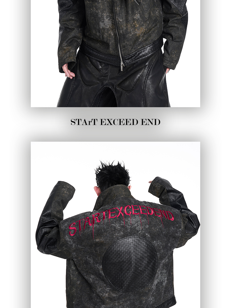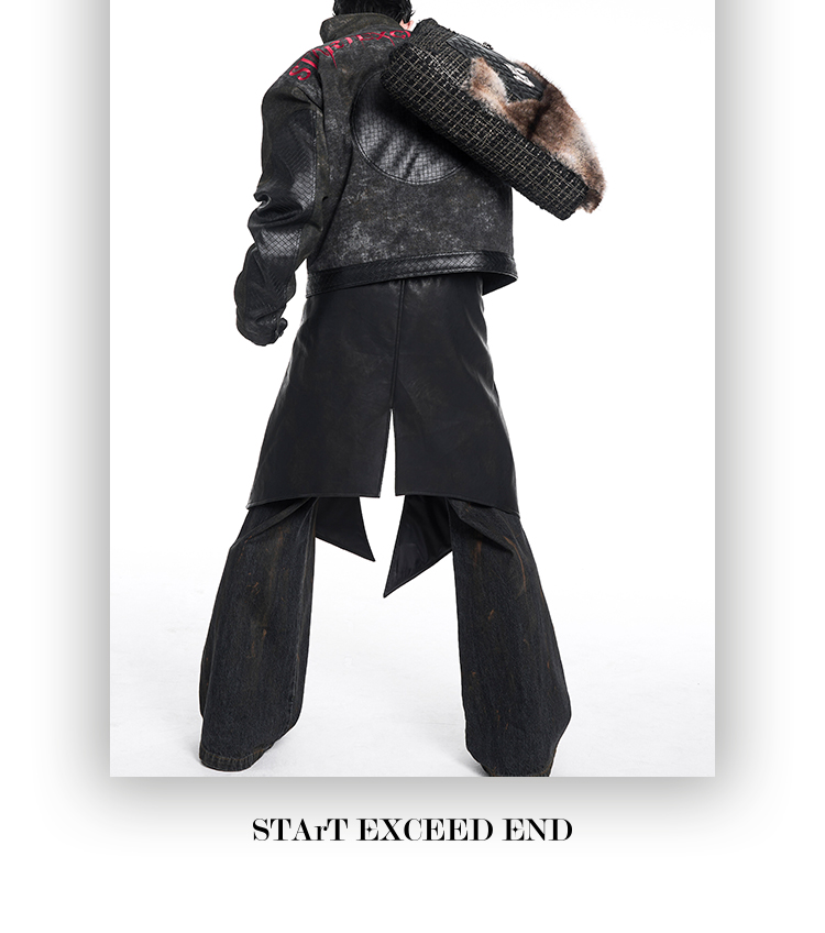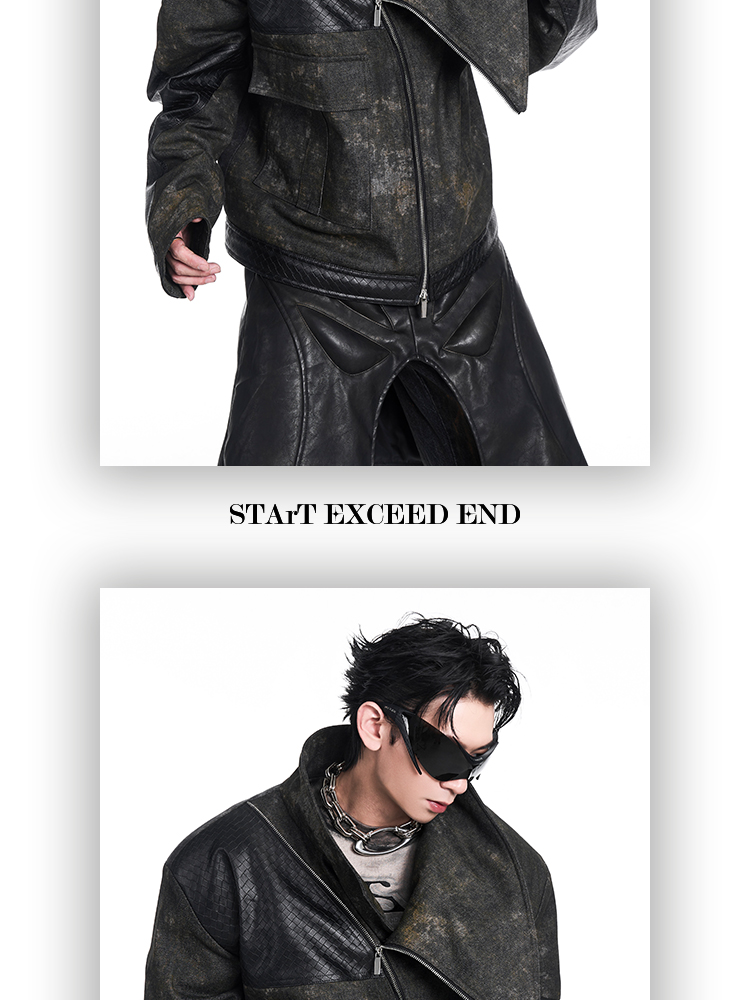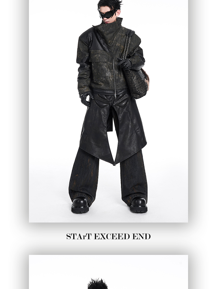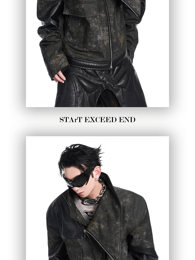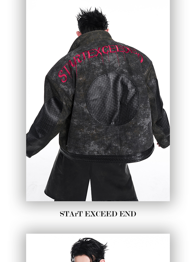 Diagonal Zipper Damage Thick Patchwork Jacket WN11721