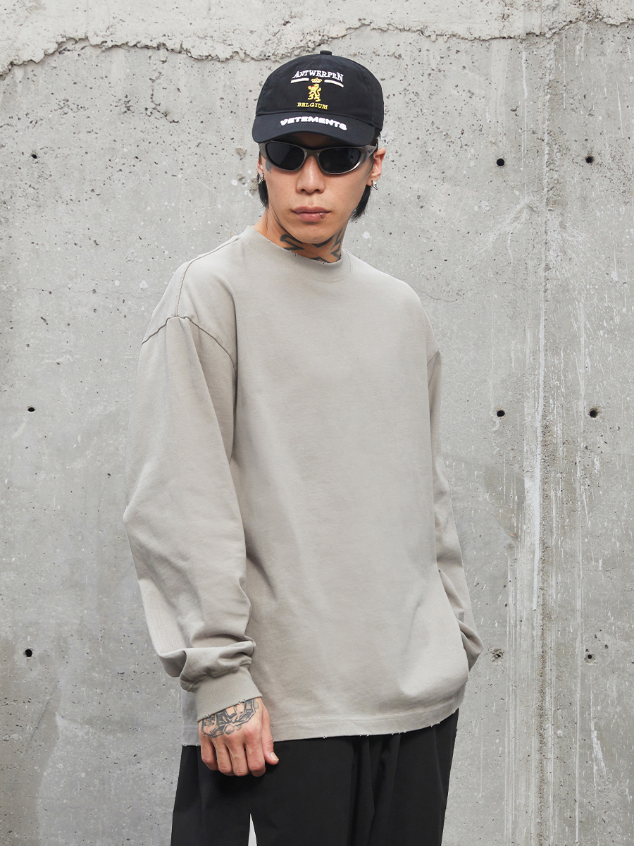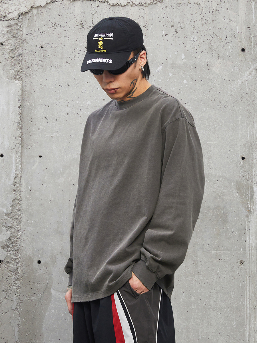 Washed Oversize Cotton Long Sleeve T-Shirt WN12258