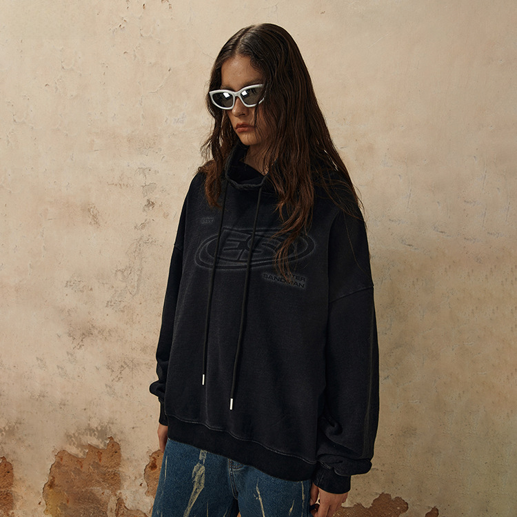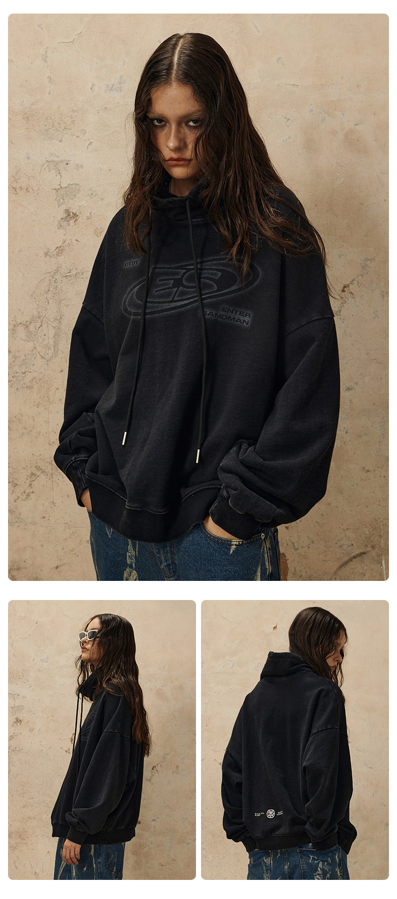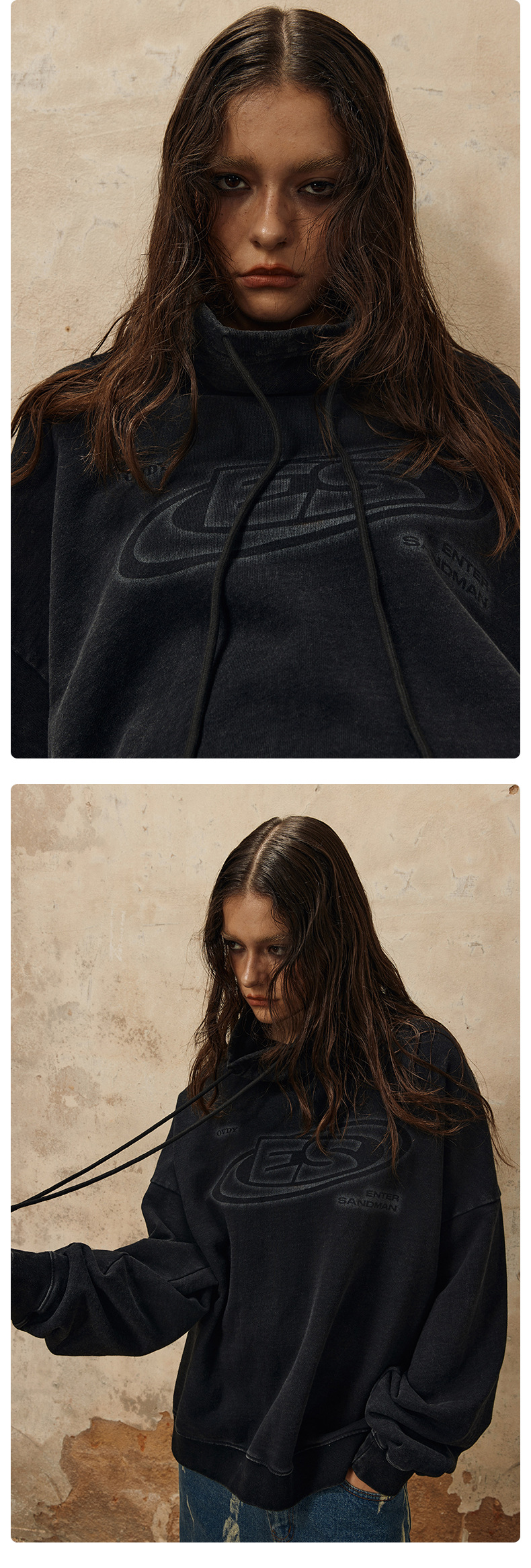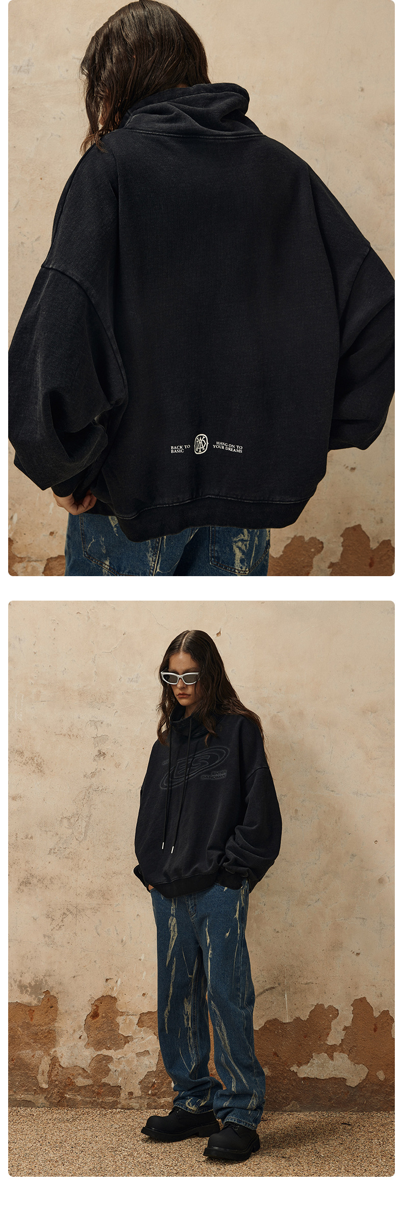 Washed High-Neck Print Oversize Sweatshirt WN12354