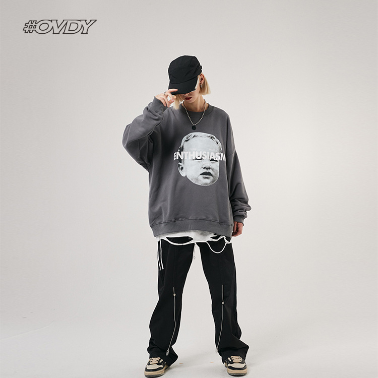Baby Print Fleece Linning Oversize Sweatshirt WN12601
