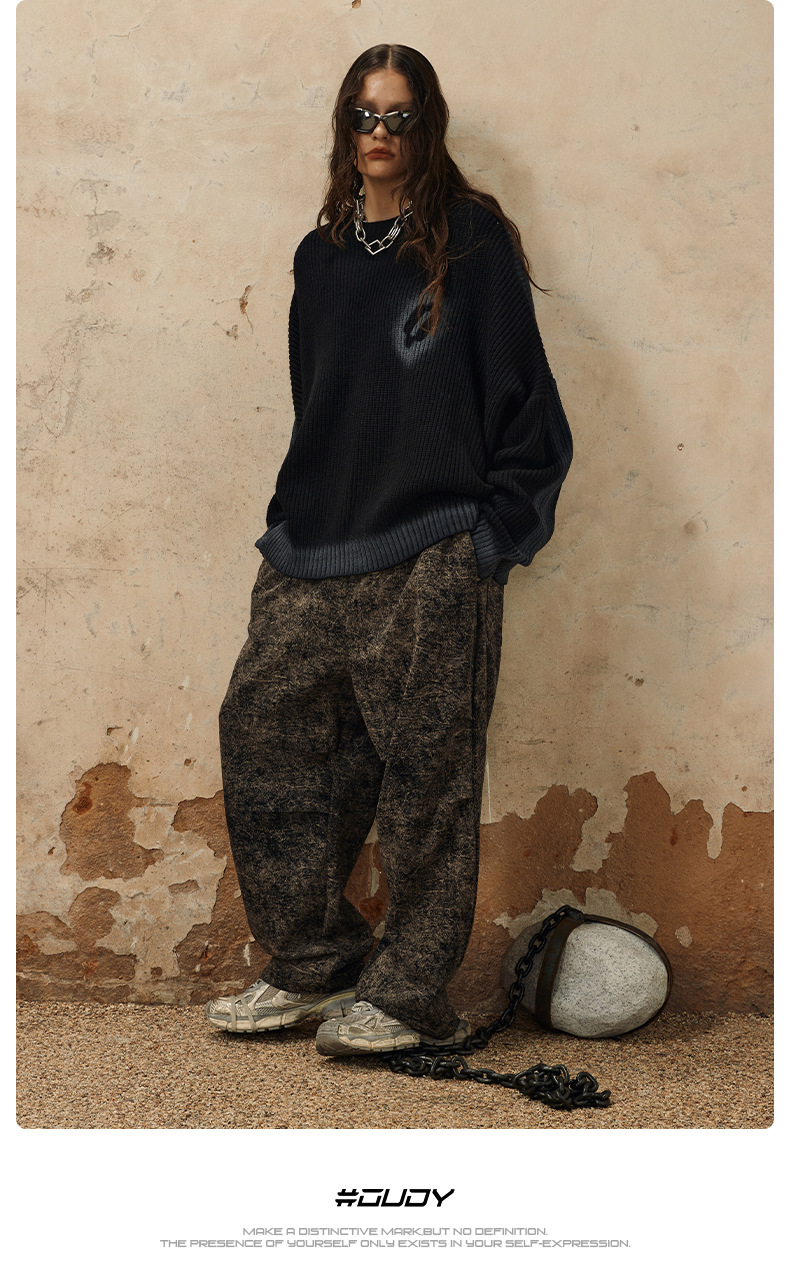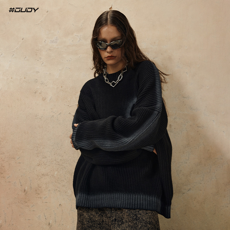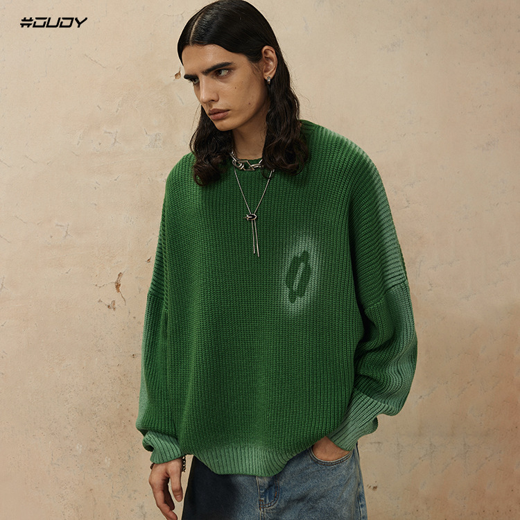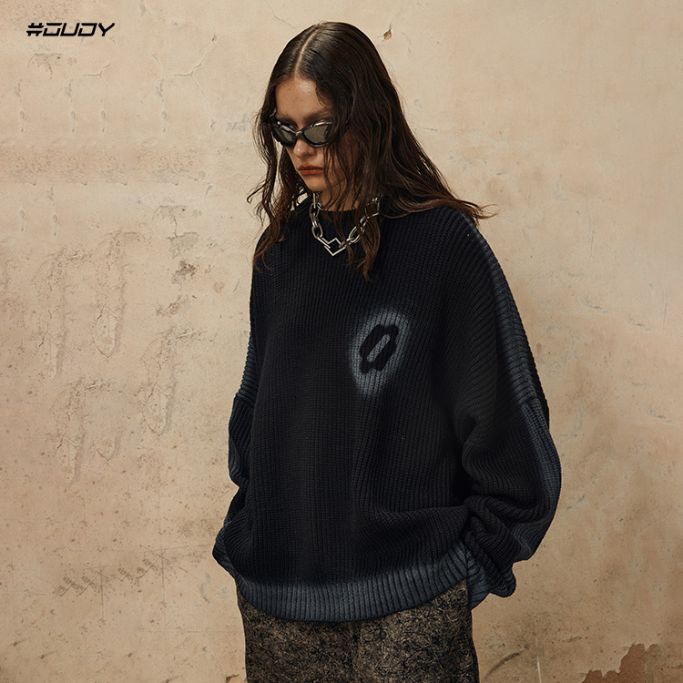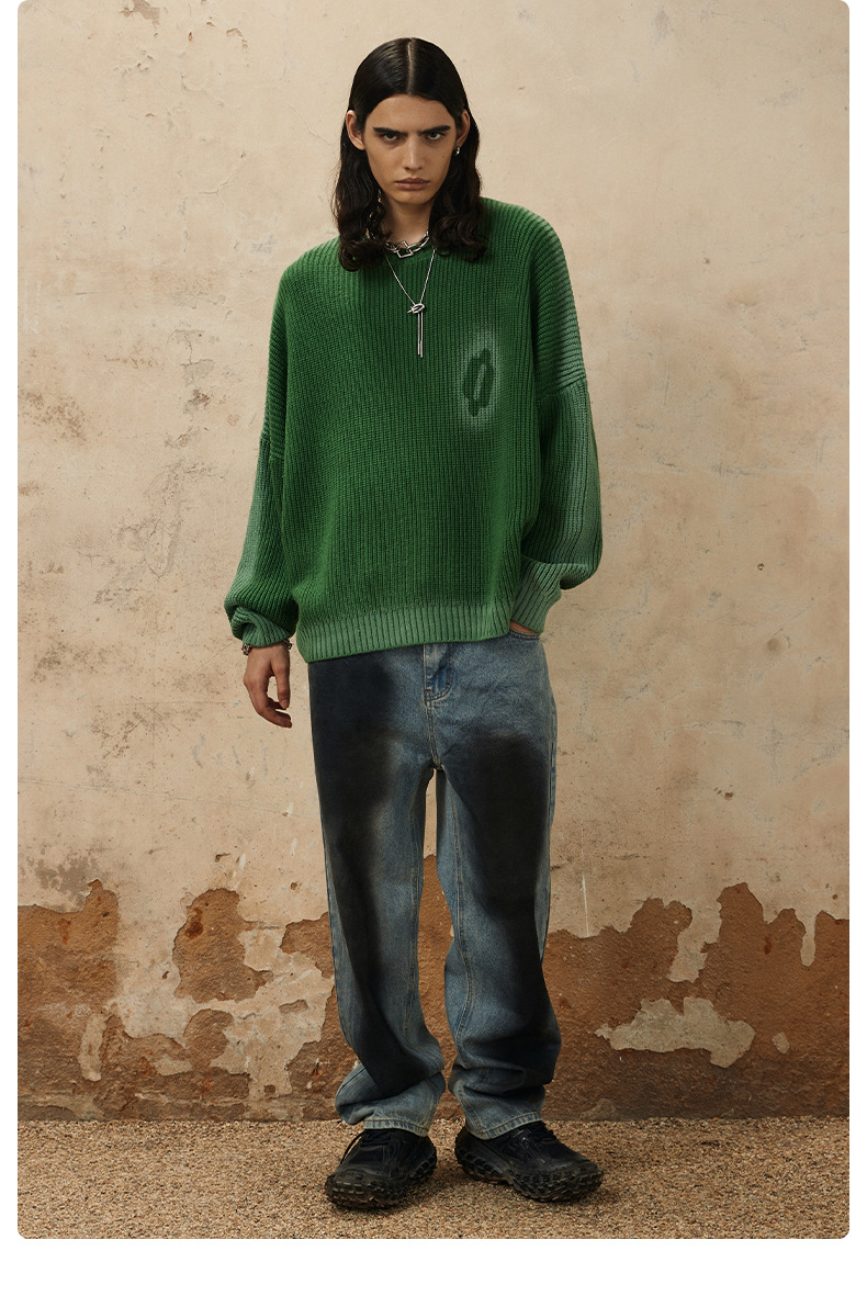 Hand-Paint Drop-Shoulder Pullover Knit Sweater WN12627