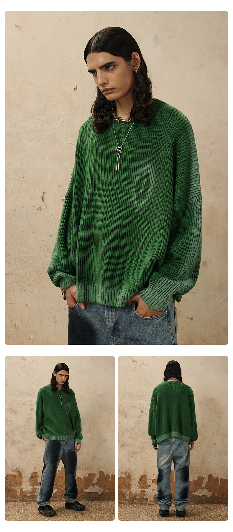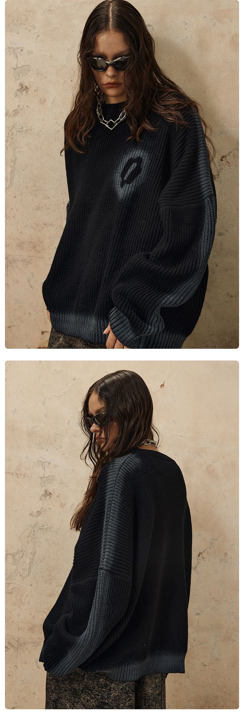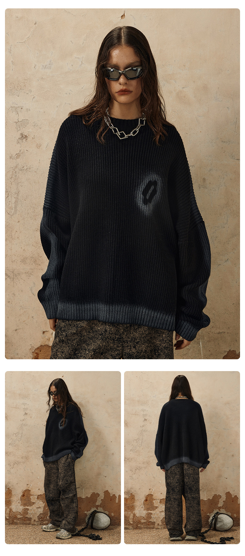 Hand-Paint Drop-Shoulder Pullover Knit Sweater WN12627