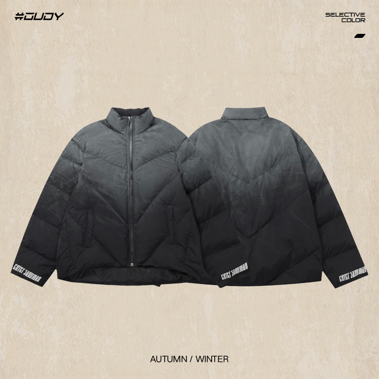 Gradient Letter Print Stand Neck Padded Jacket WN12645