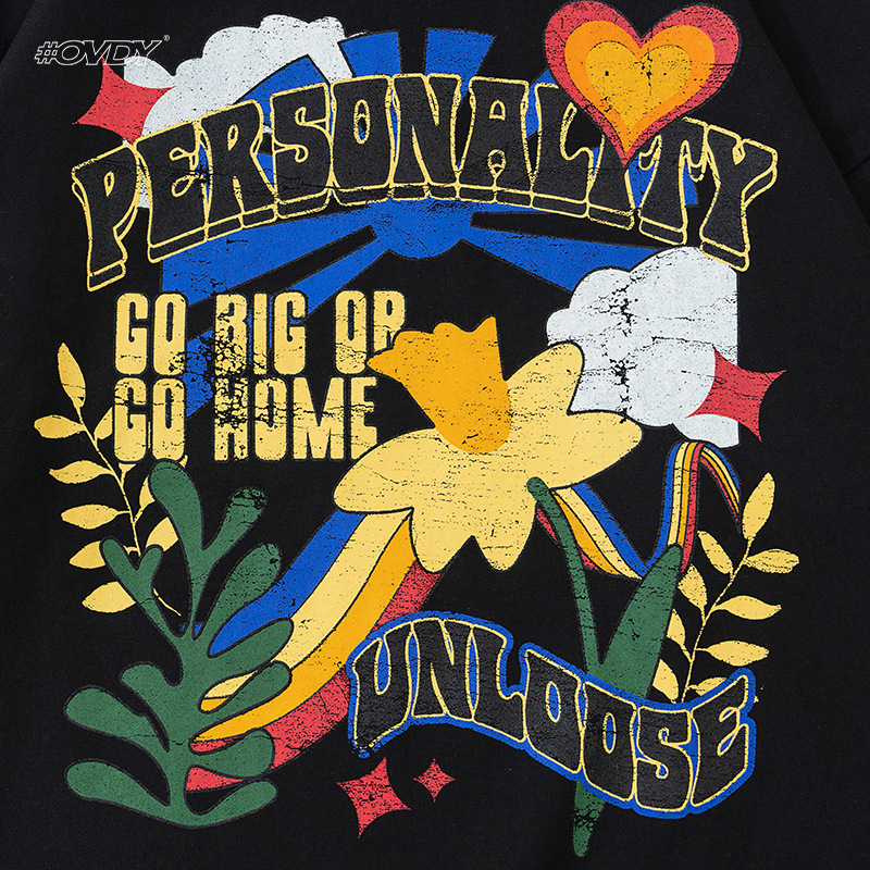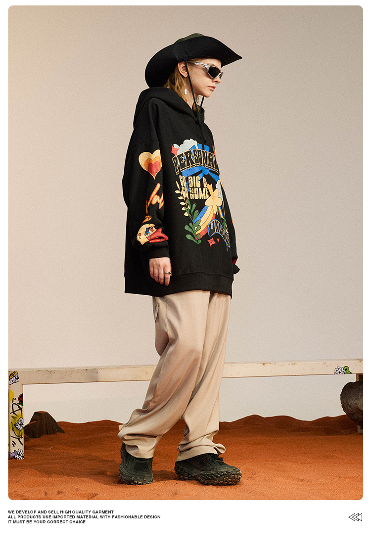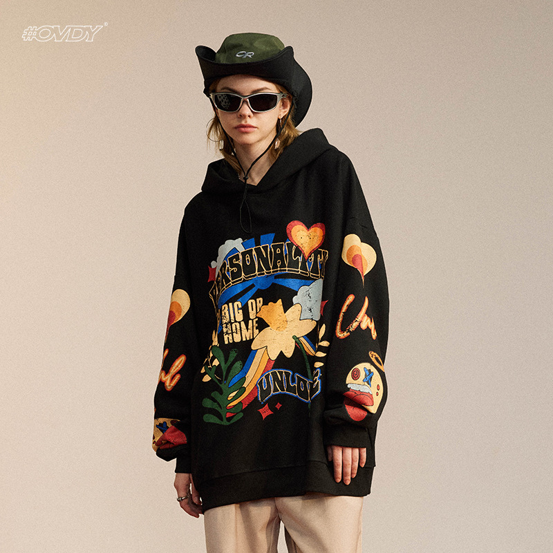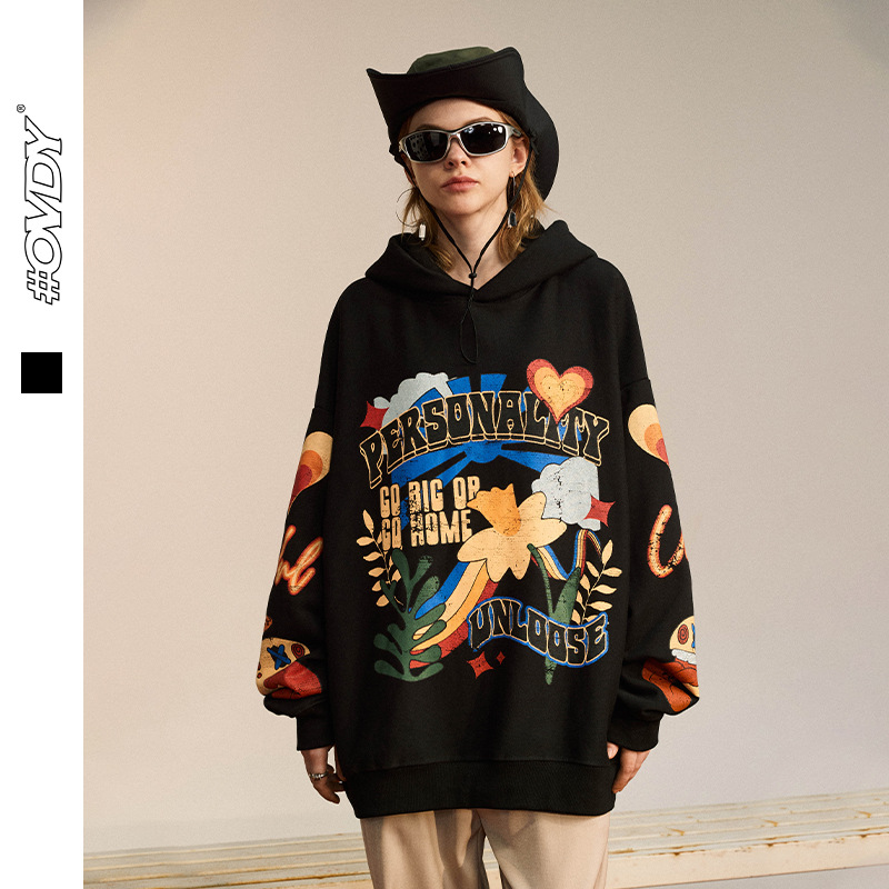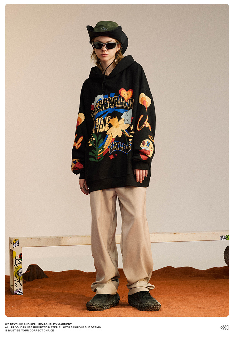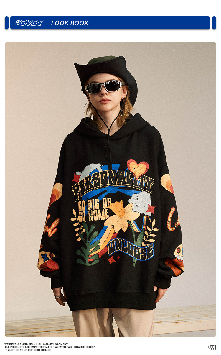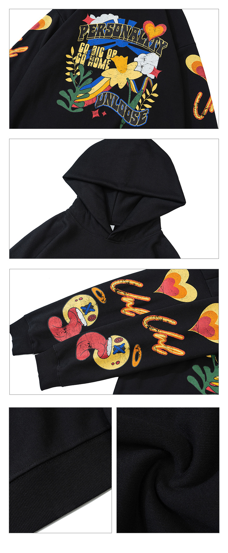 Floral Cracked Print Fleece-Lined Hoodie WN12647