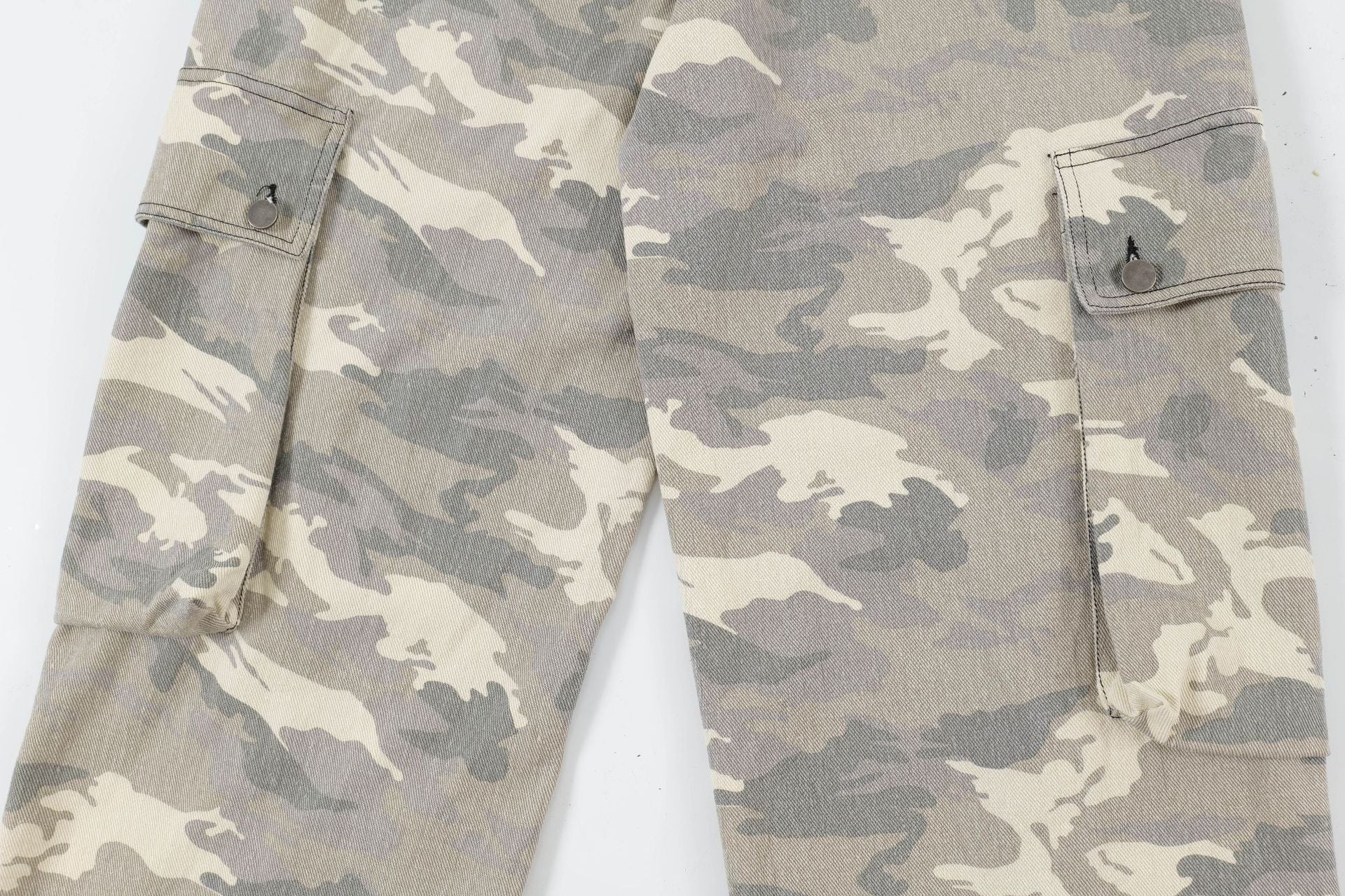 Camouflage Washed Straight Cargo Denim Jeans WN12745