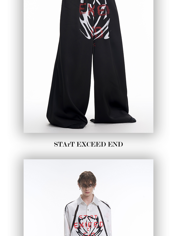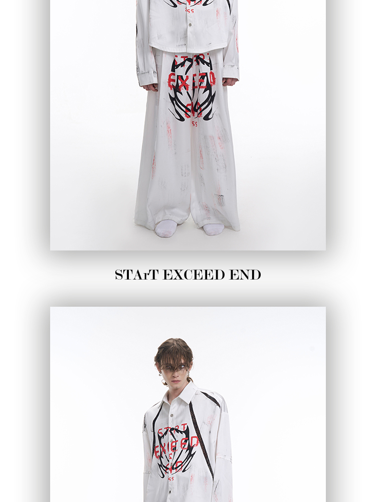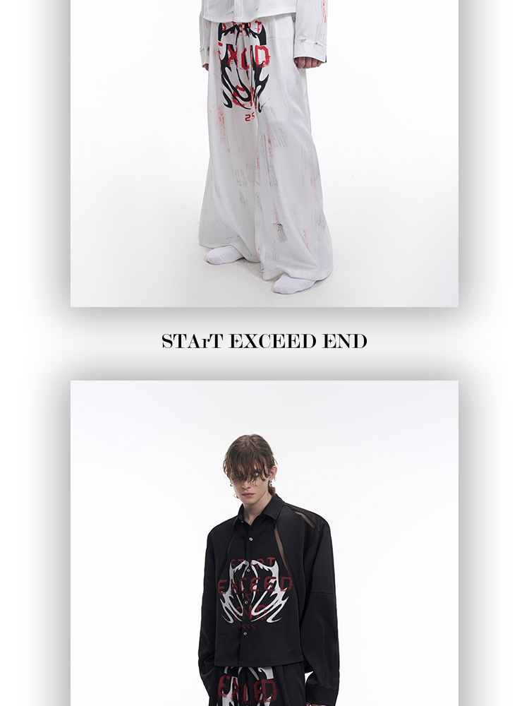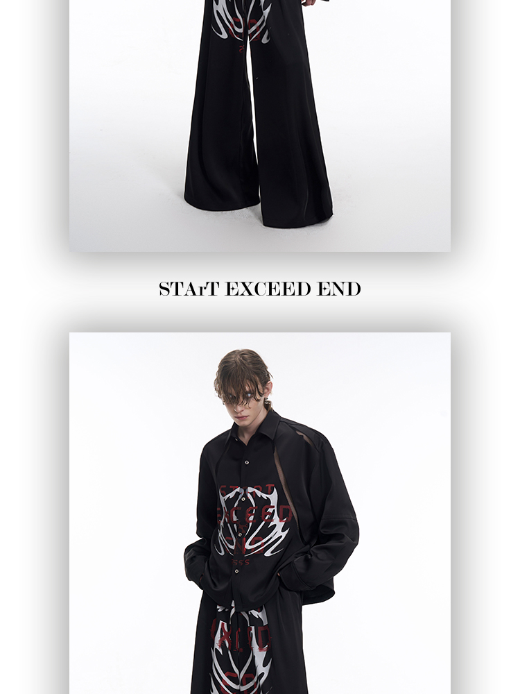 Mesh Design Oversize Shirt & Wide-keg Trousers Setup WN13214