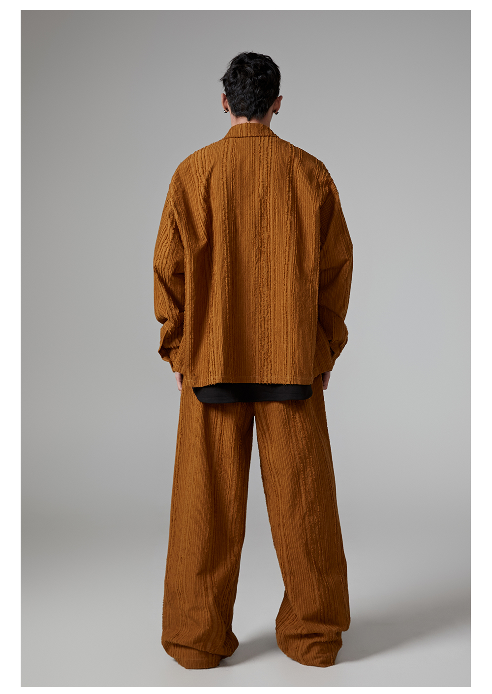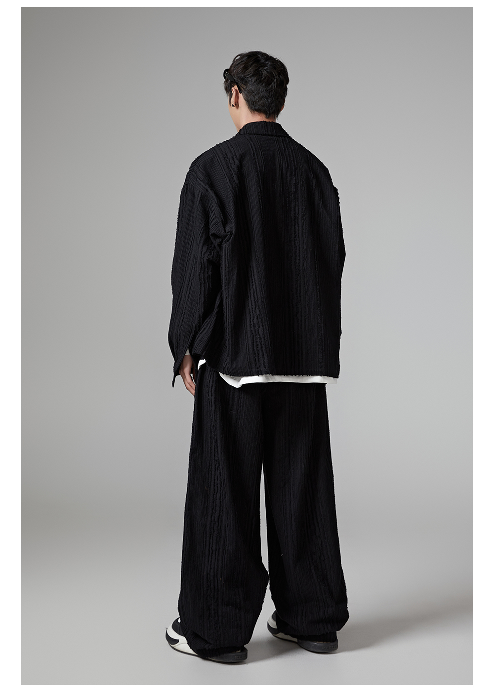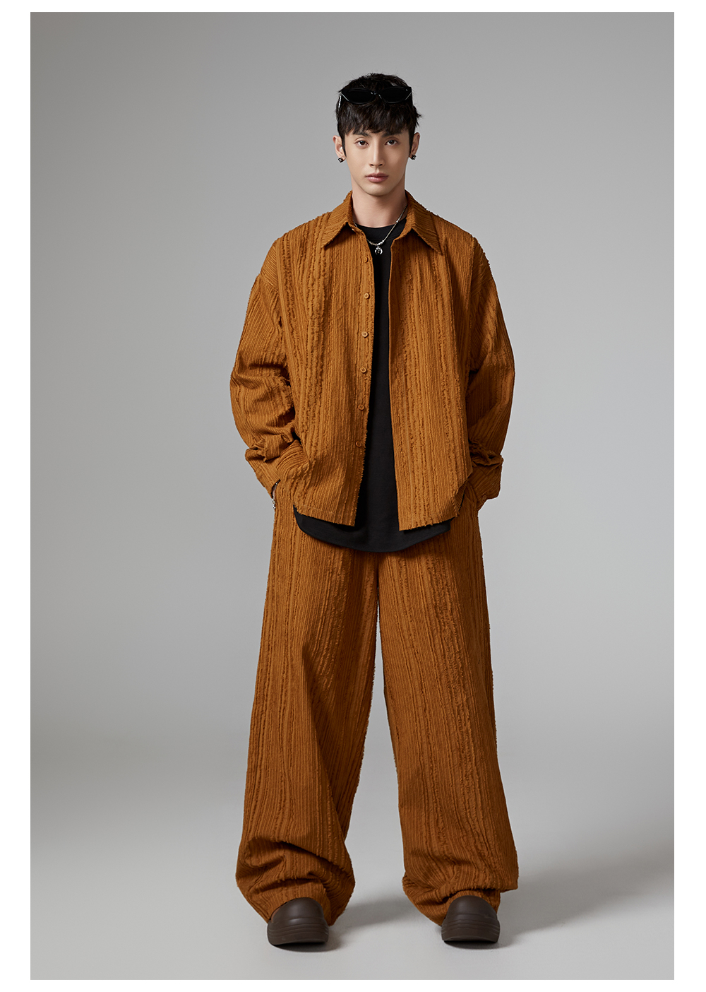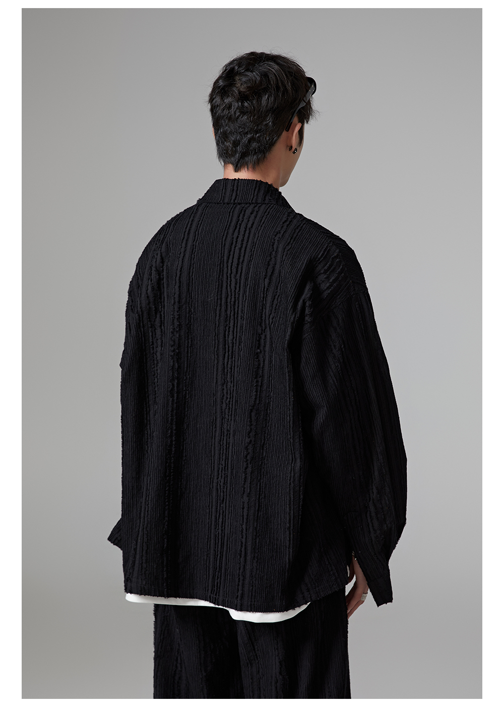 Fringe Pleats Oversize Long Sleeve Shirt & Wide Leg Pants Setup WN13336