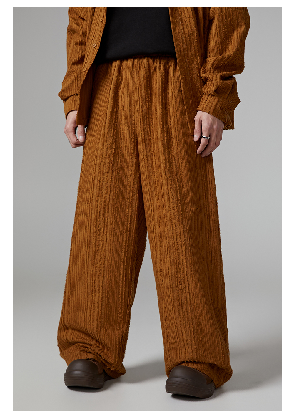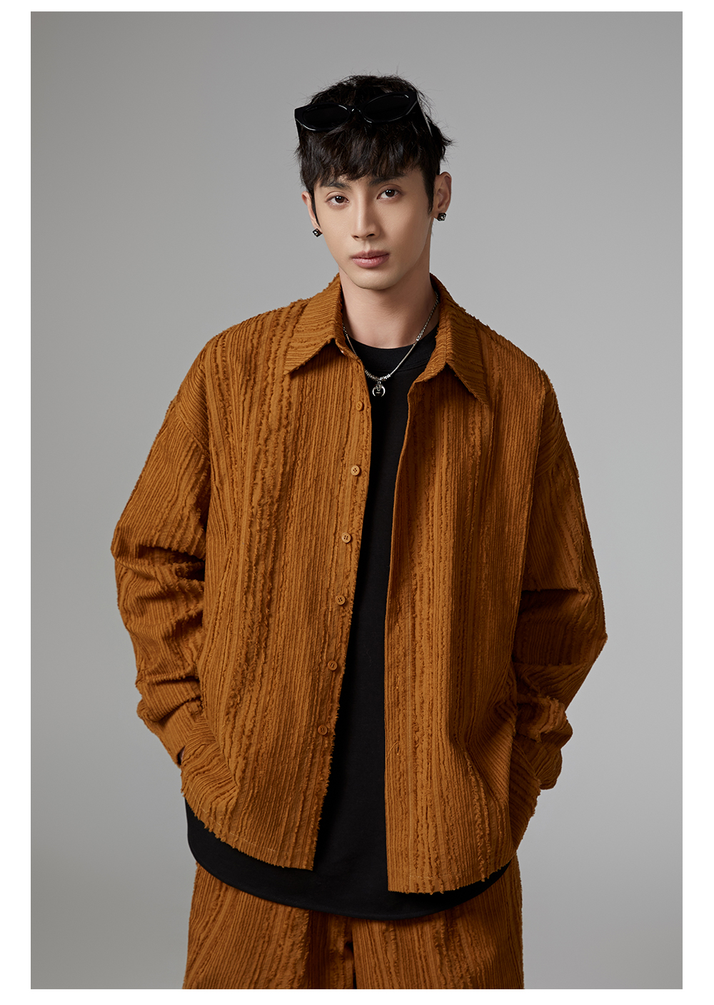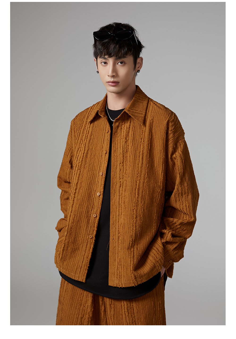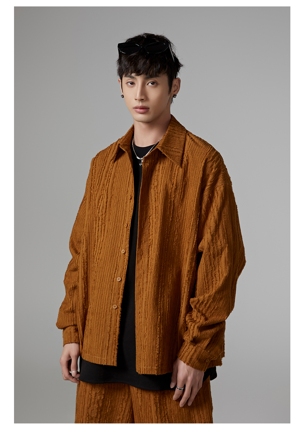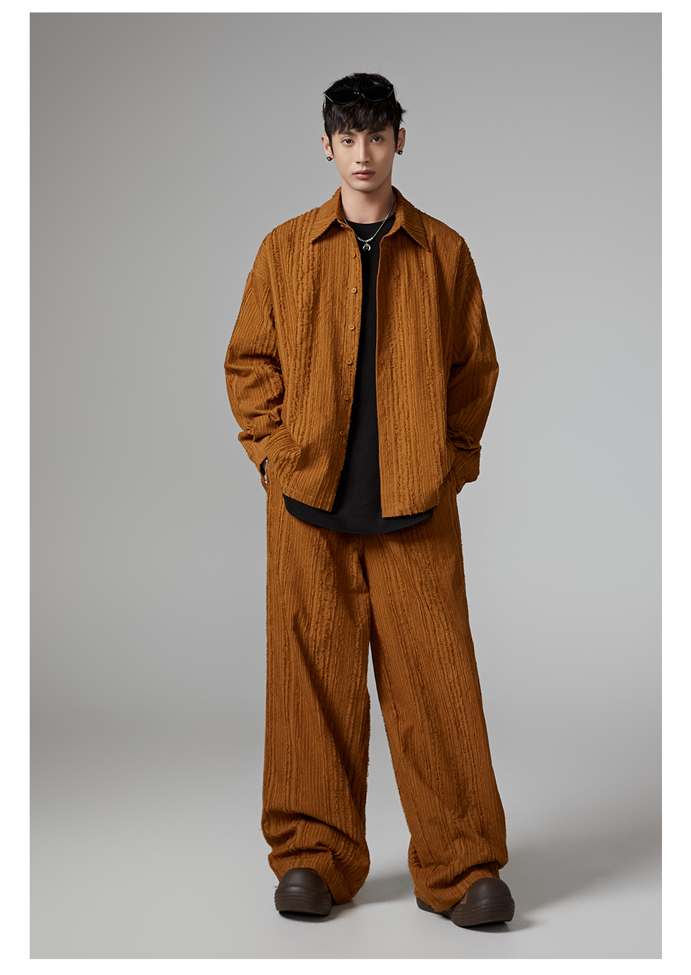 Fringe Pleats Oversize Long Sleeve Shirt & Wide Leg Pants Setup WN13336