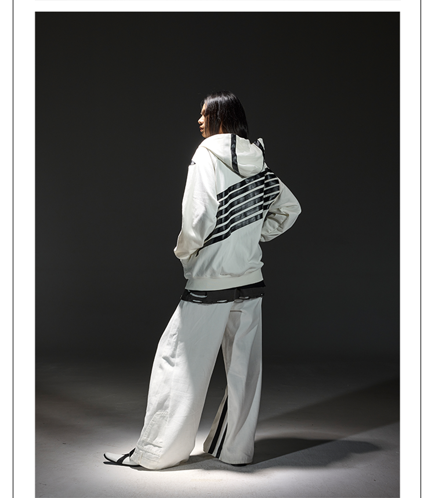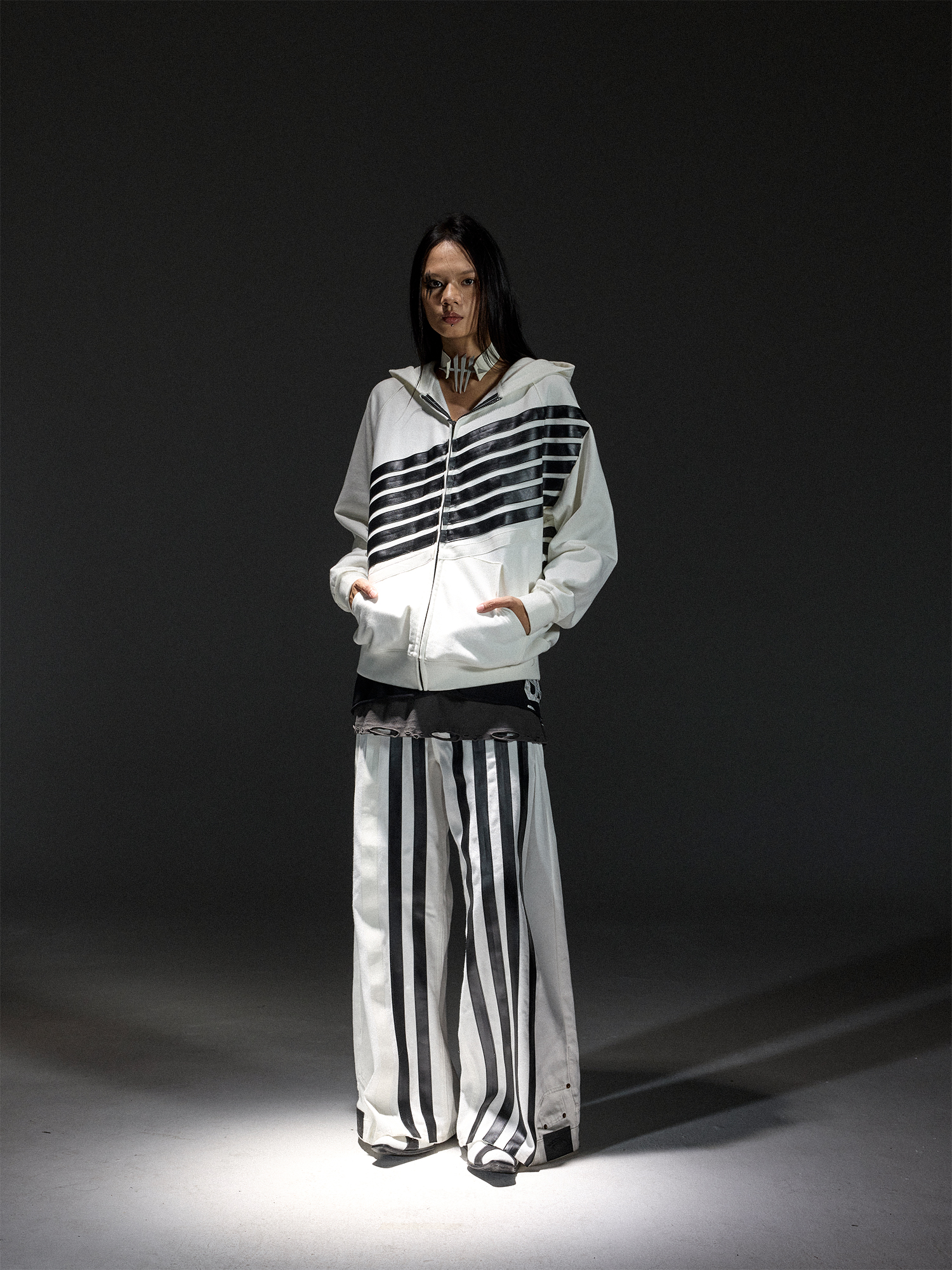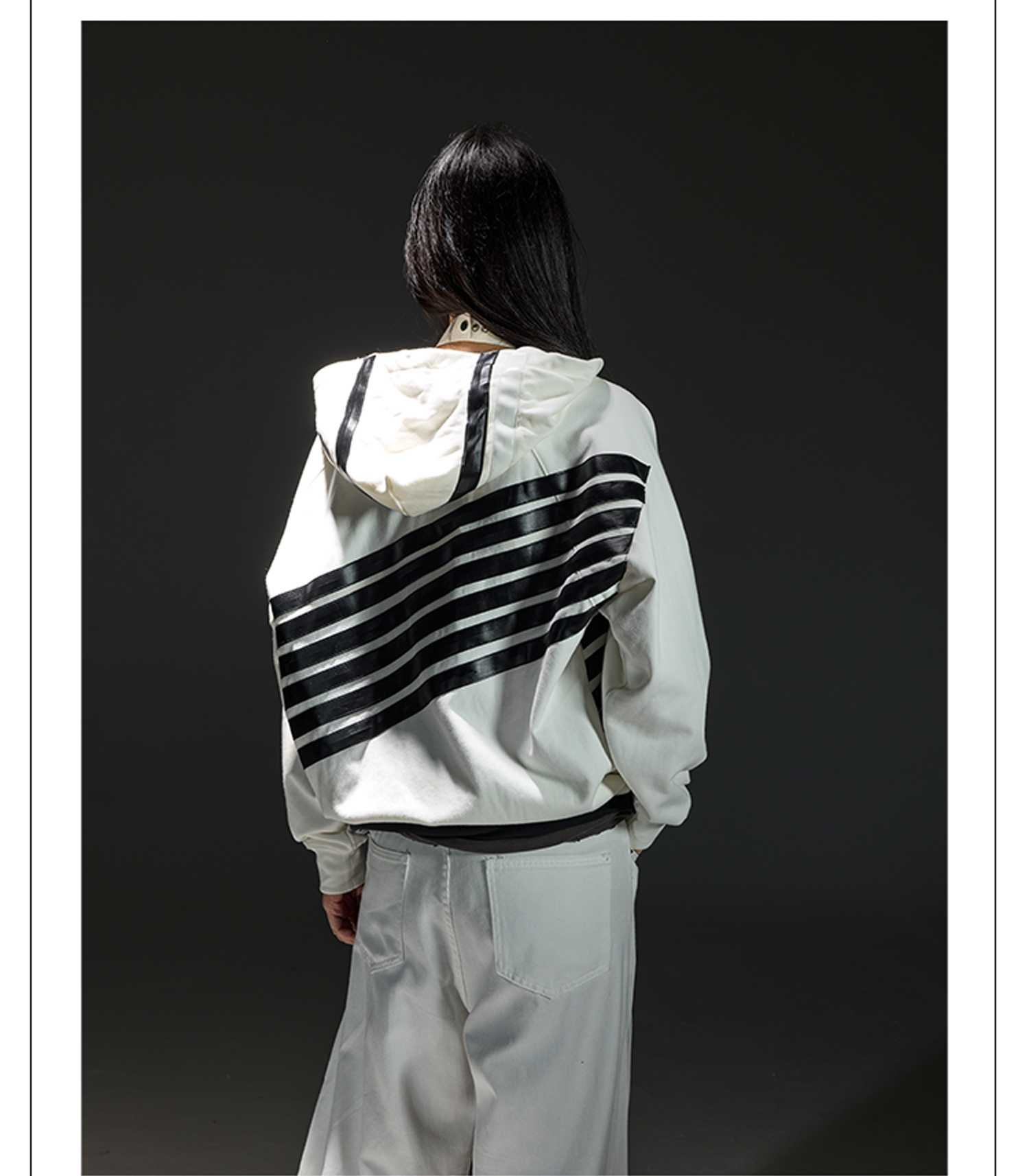 Stripe Zipper Hoodie & Line Design Denim Jeans Setup WN13678