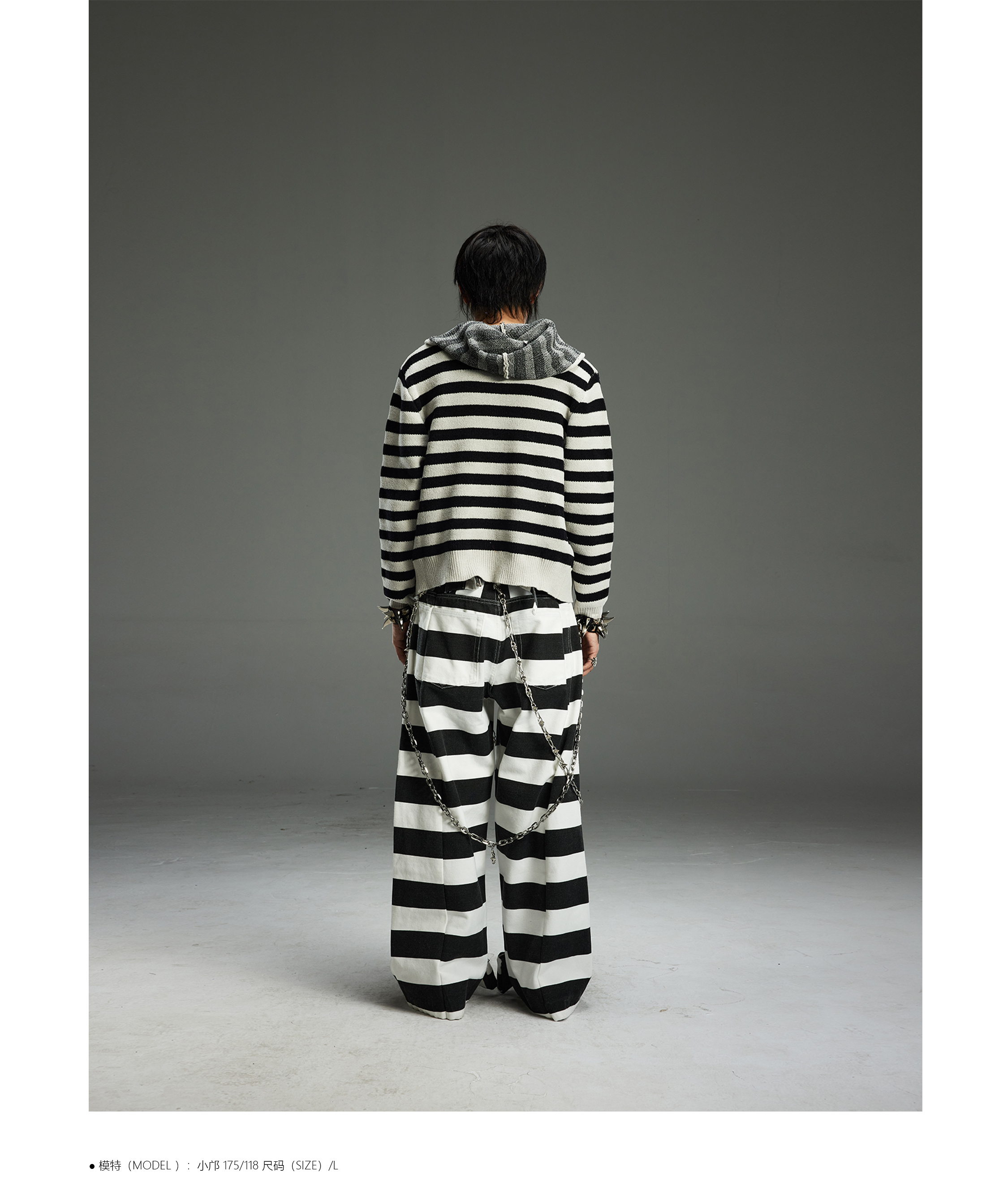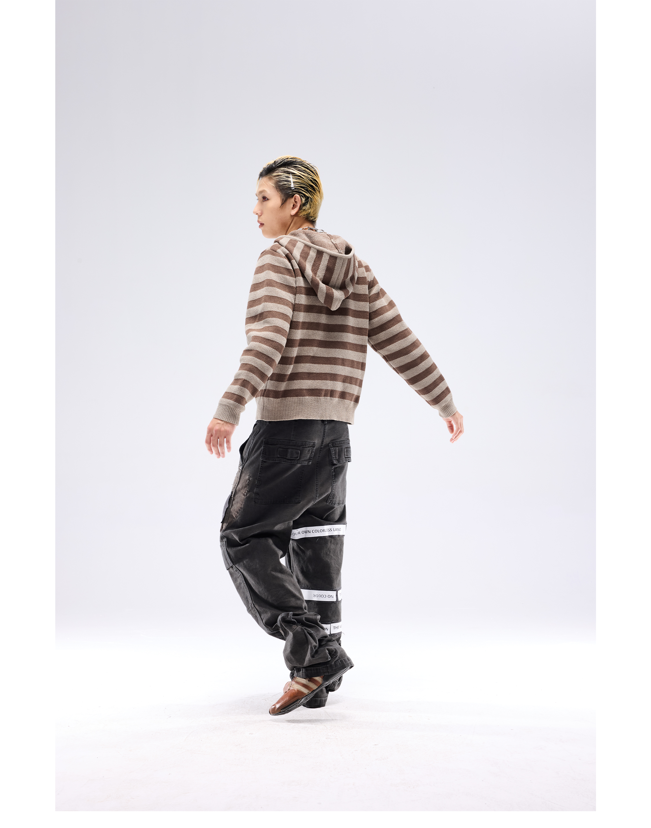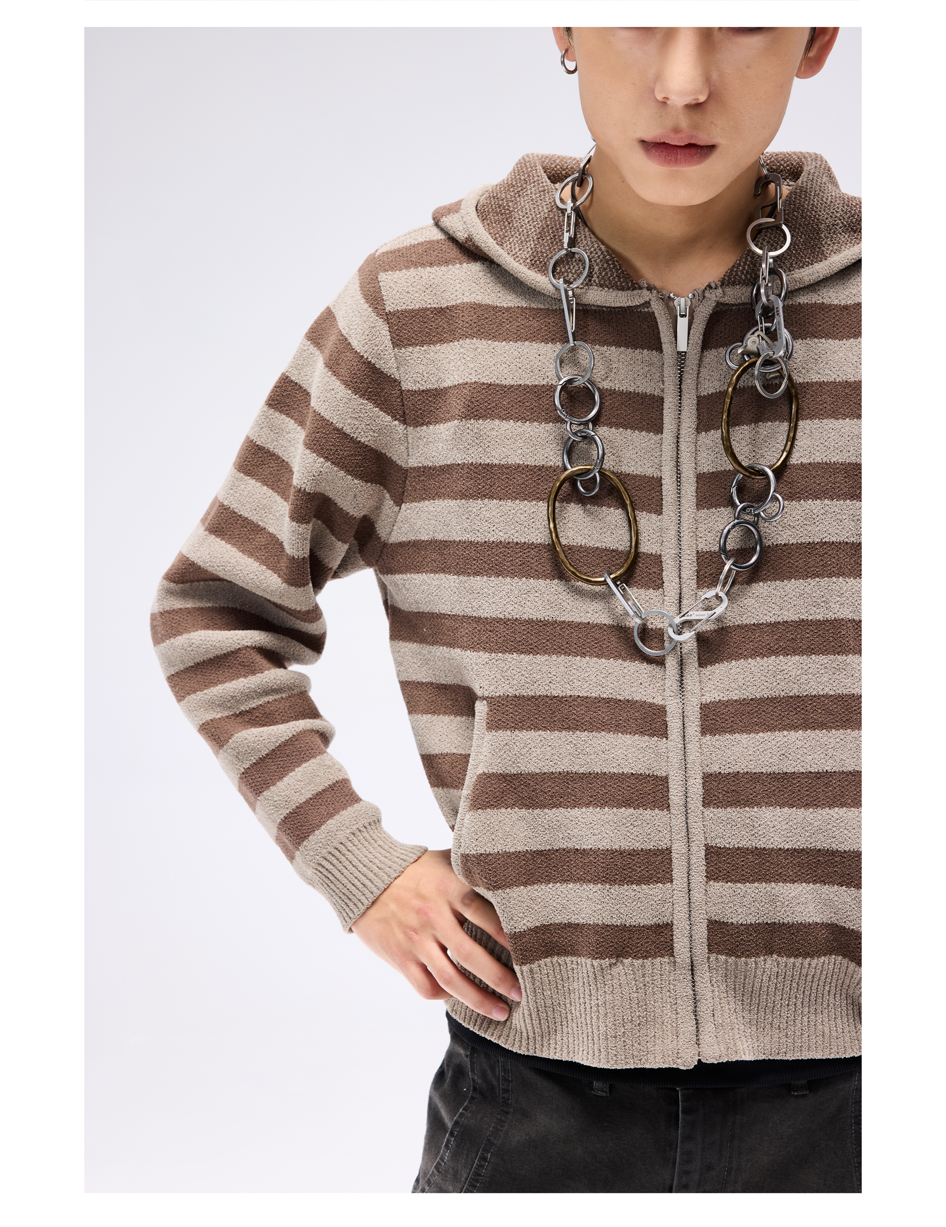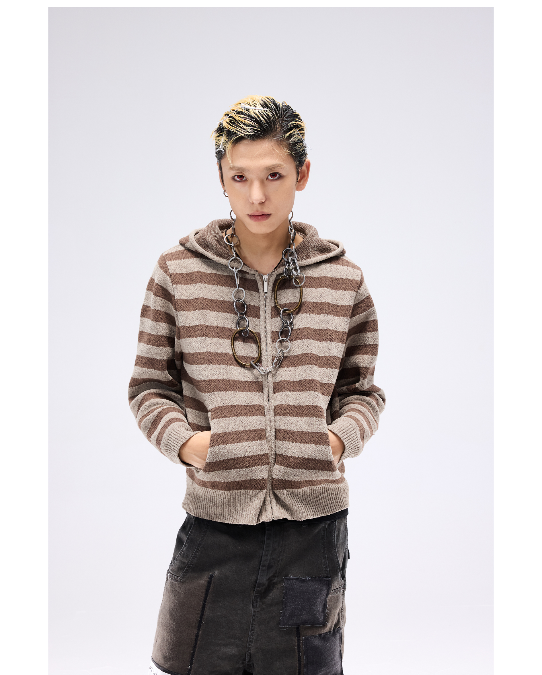 Stripe Knit Short Hooded Zipper Cardigan WN13691