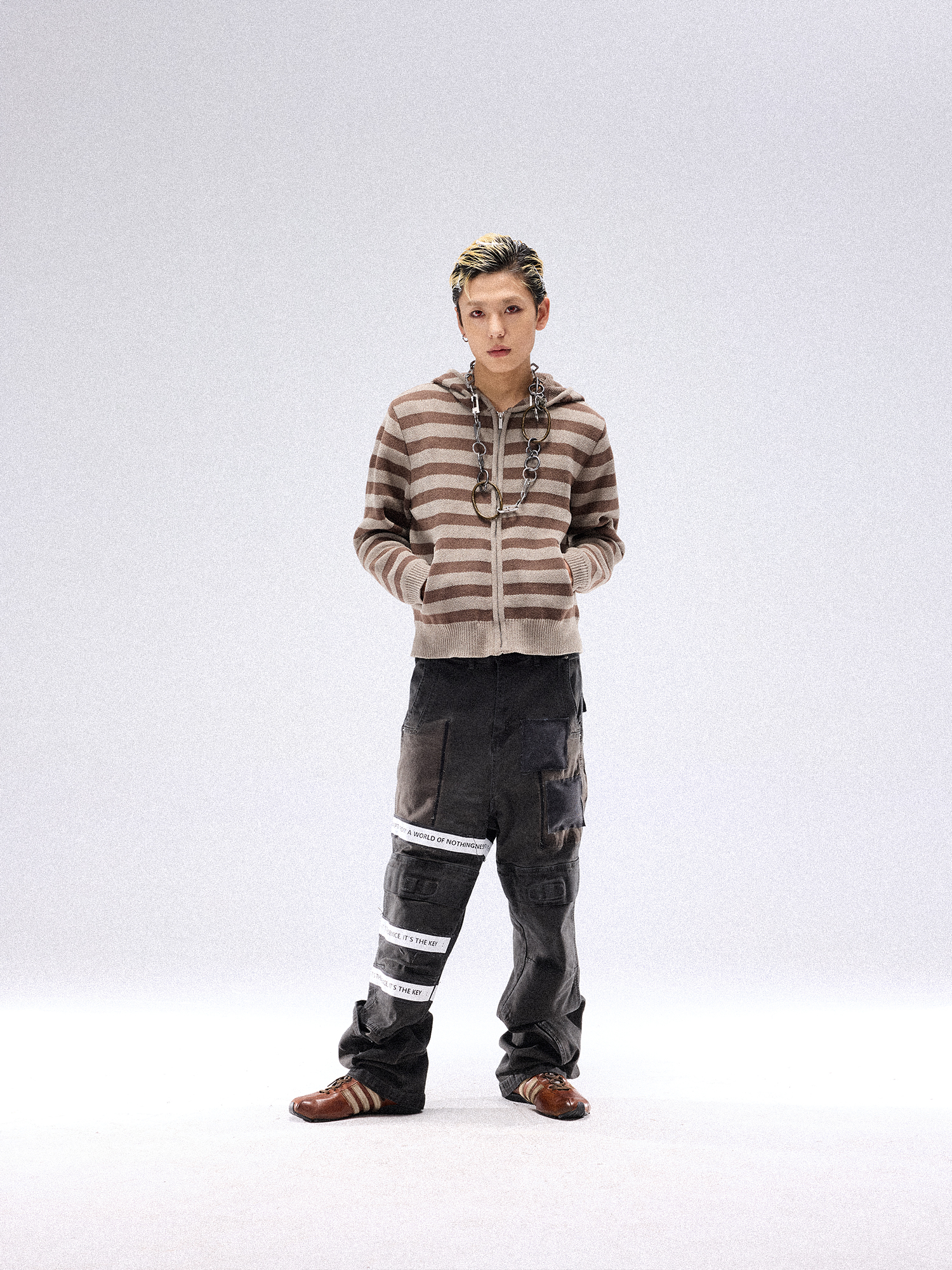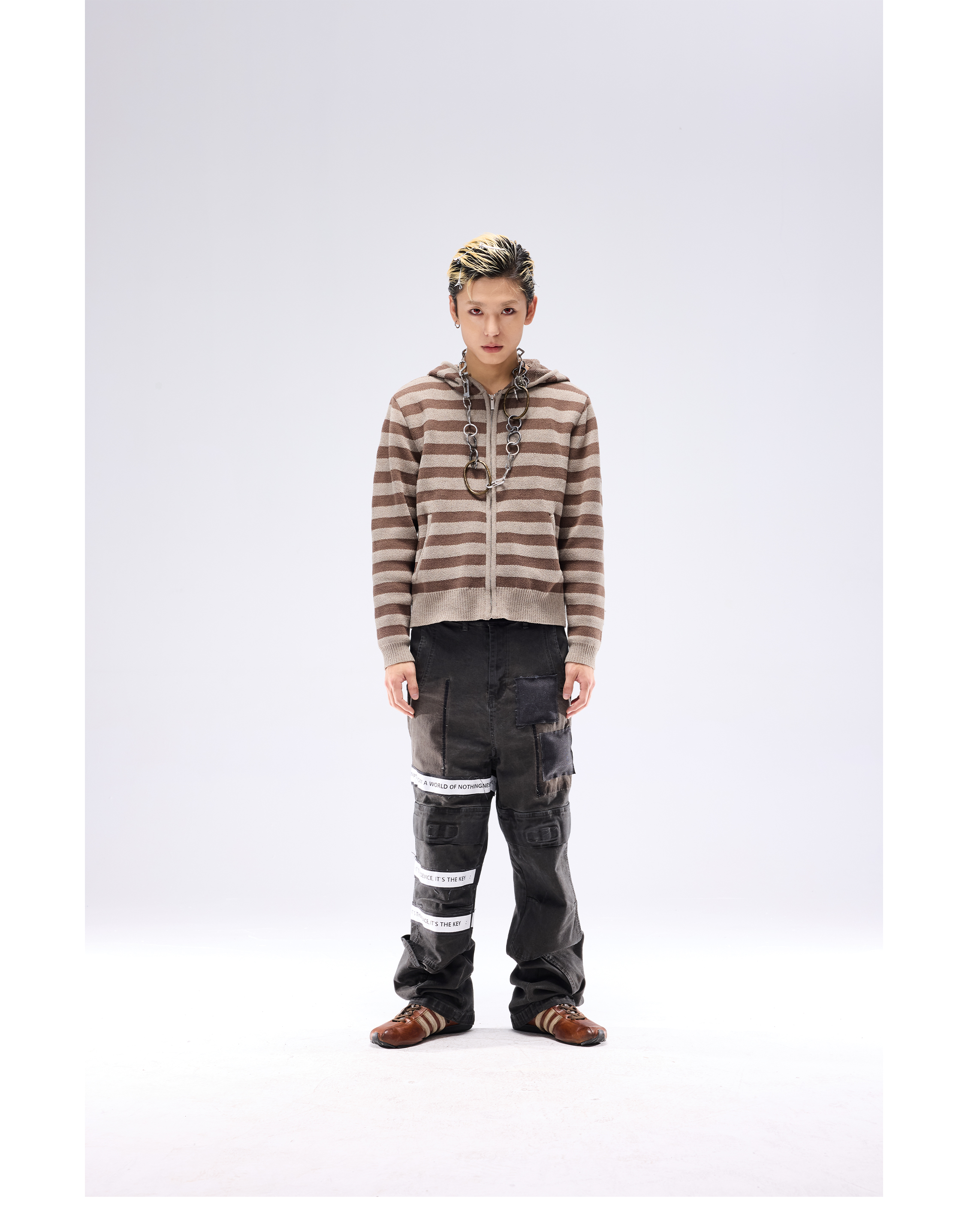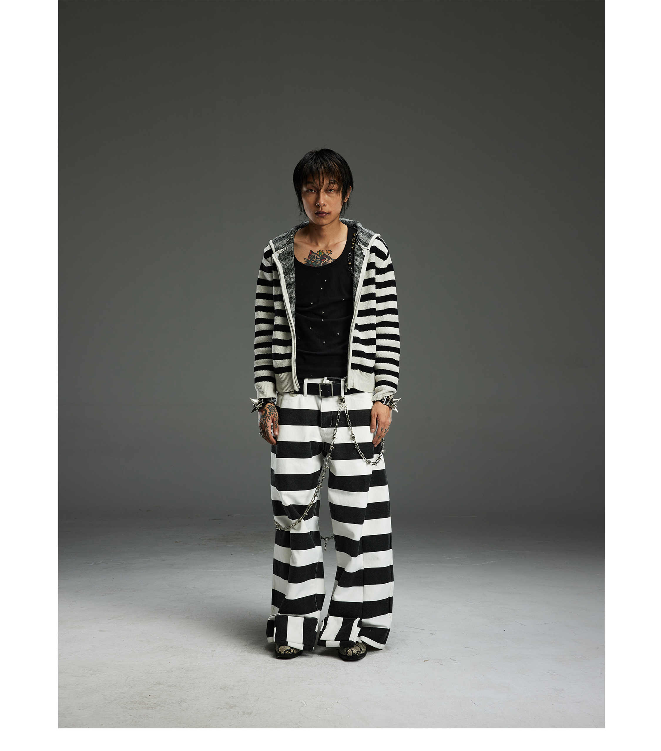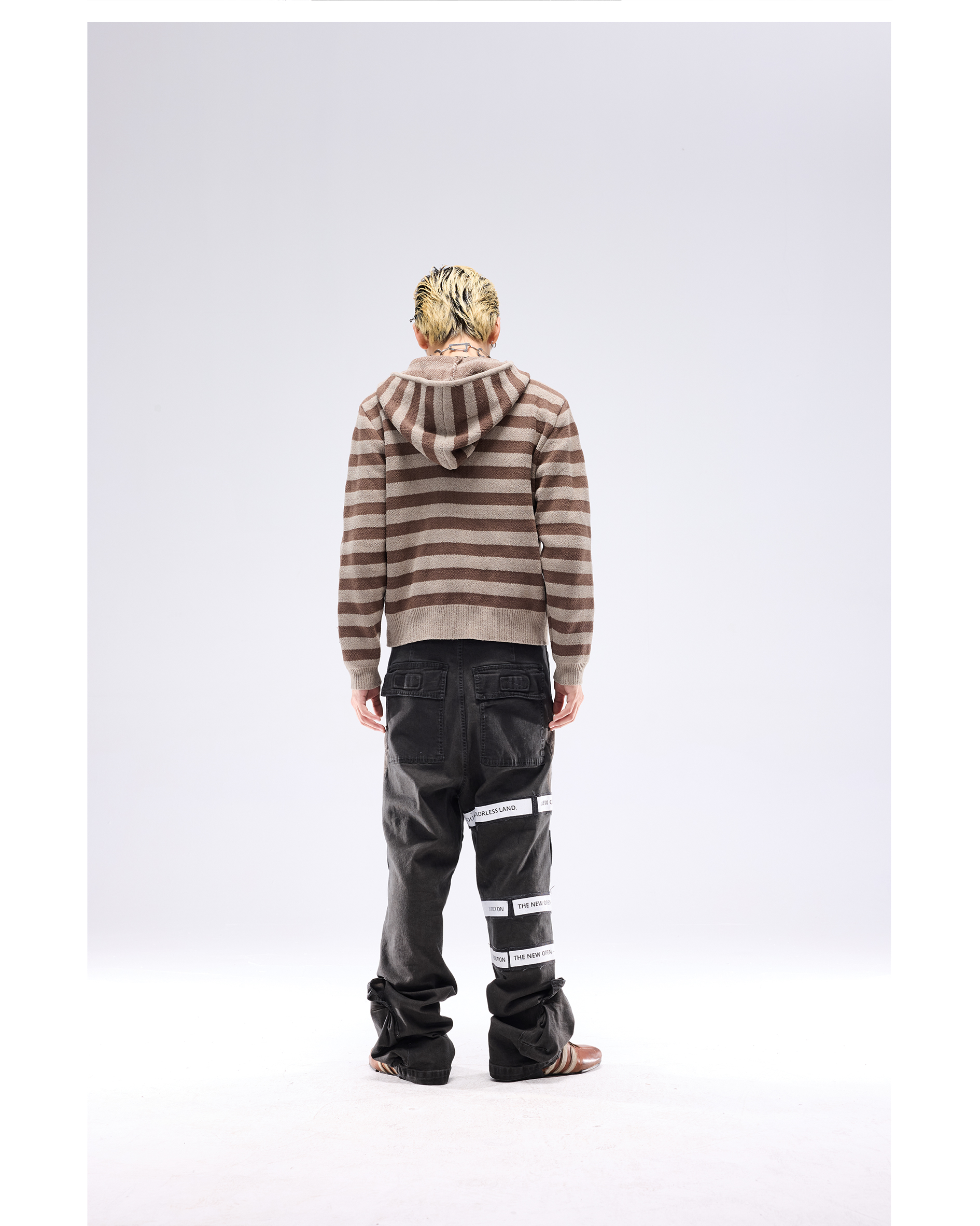 Stripe Knit Short Hooded Zipper Cardigan WN13691