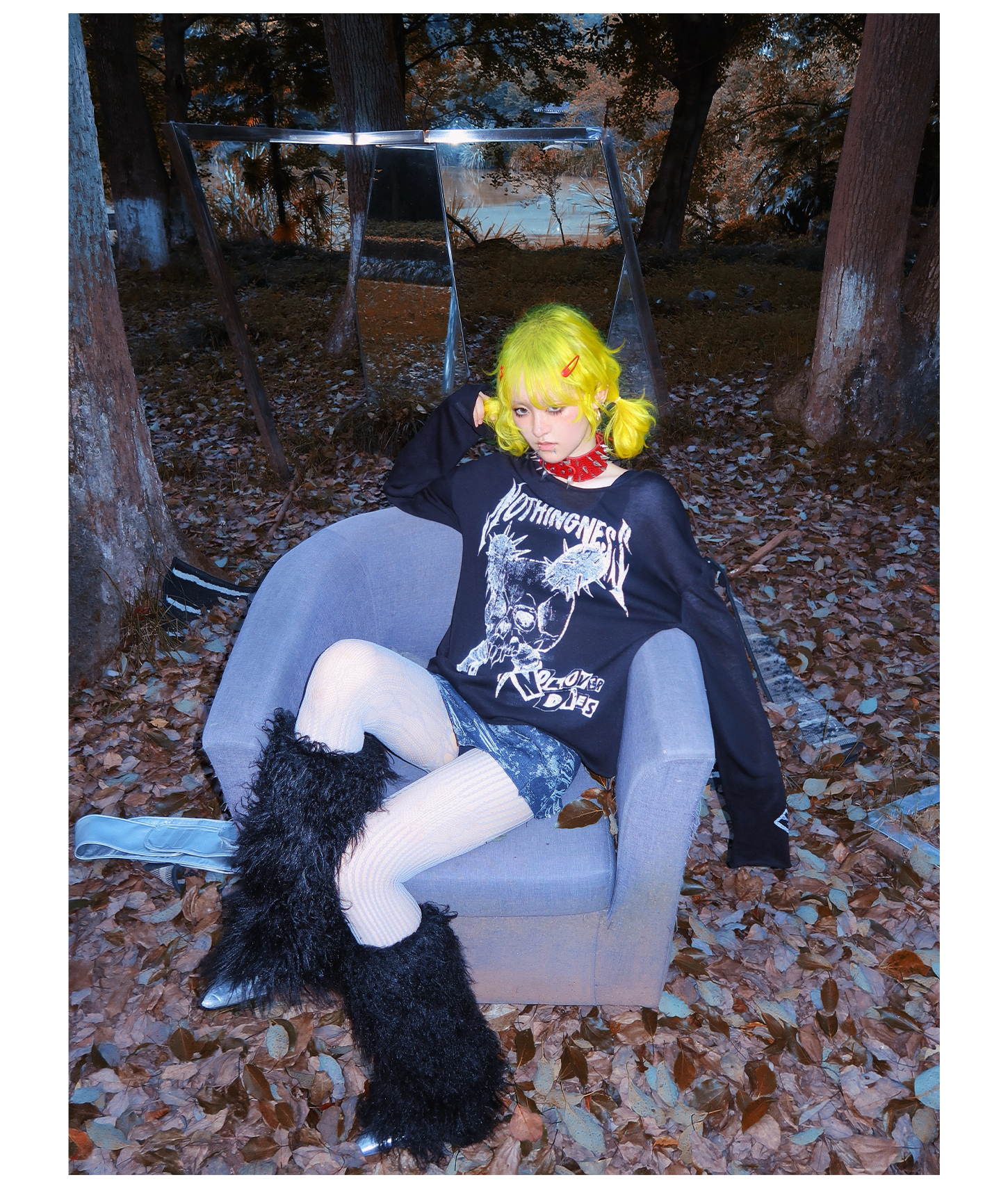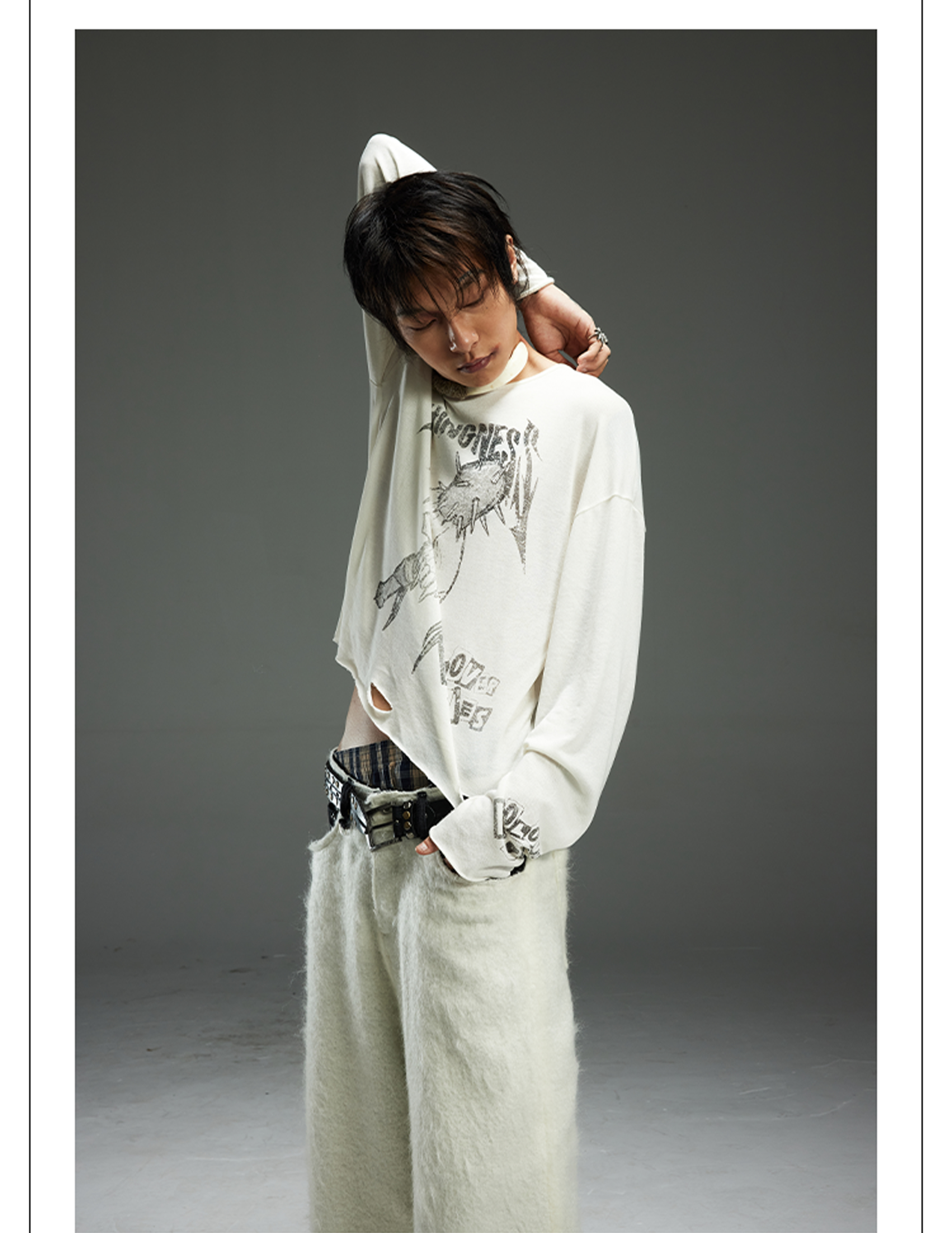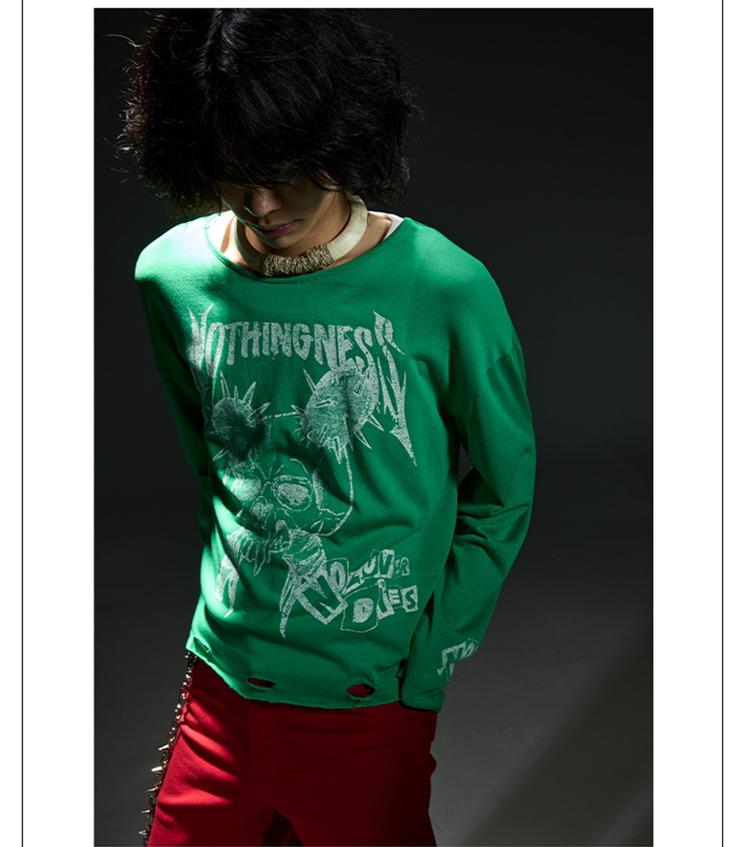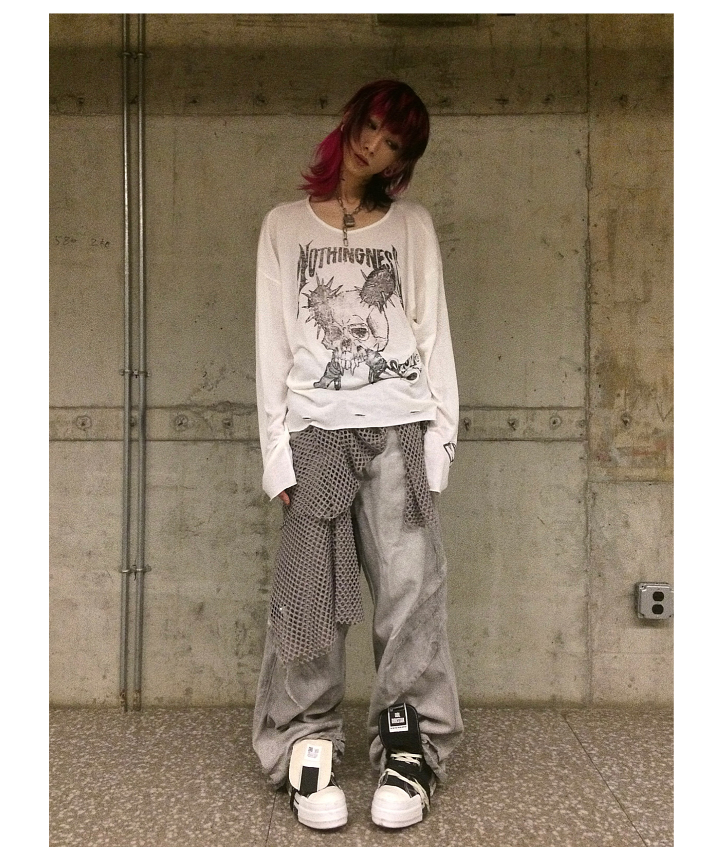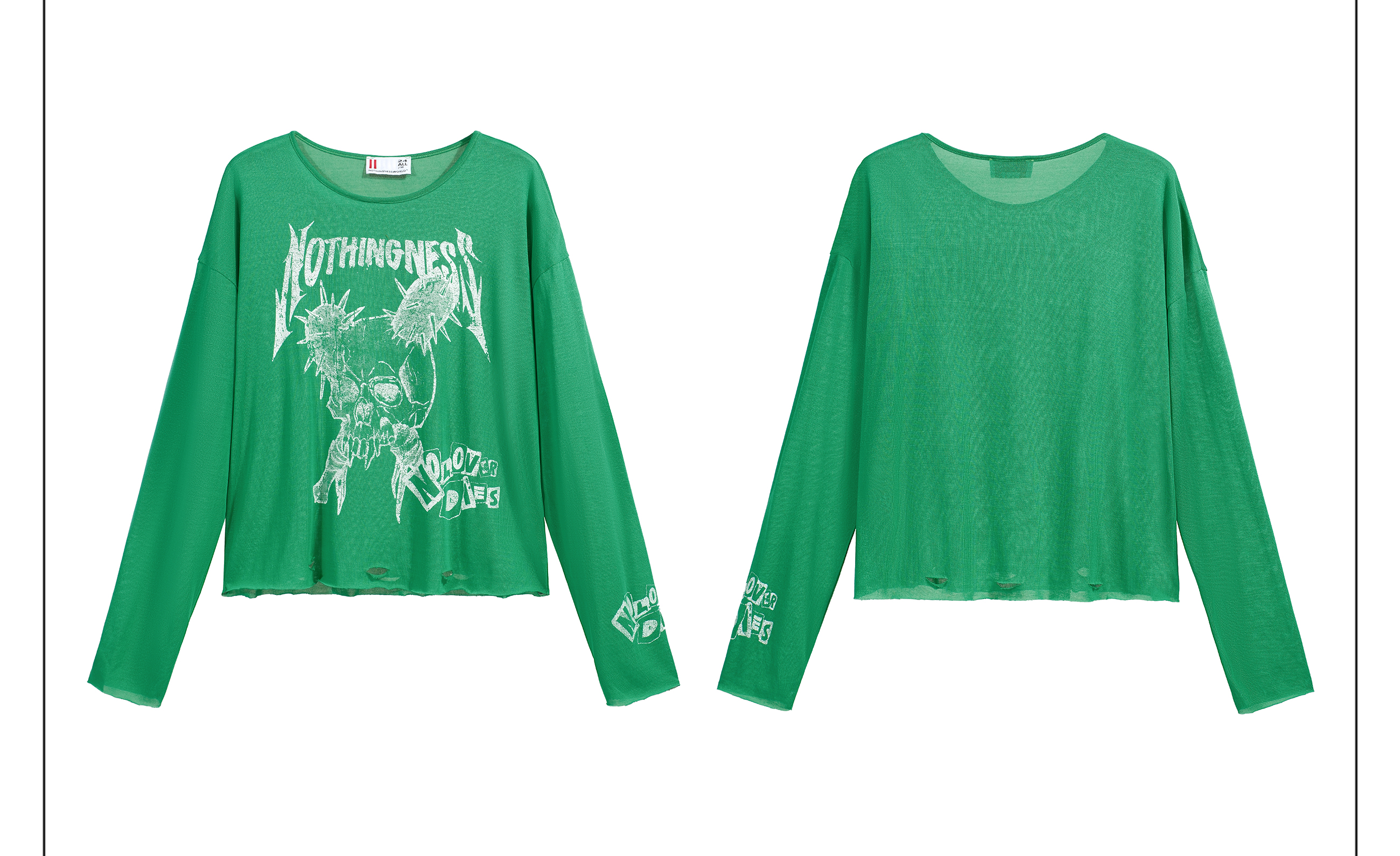 Damage Mesh Long Sleeve T-Shirt WN13734