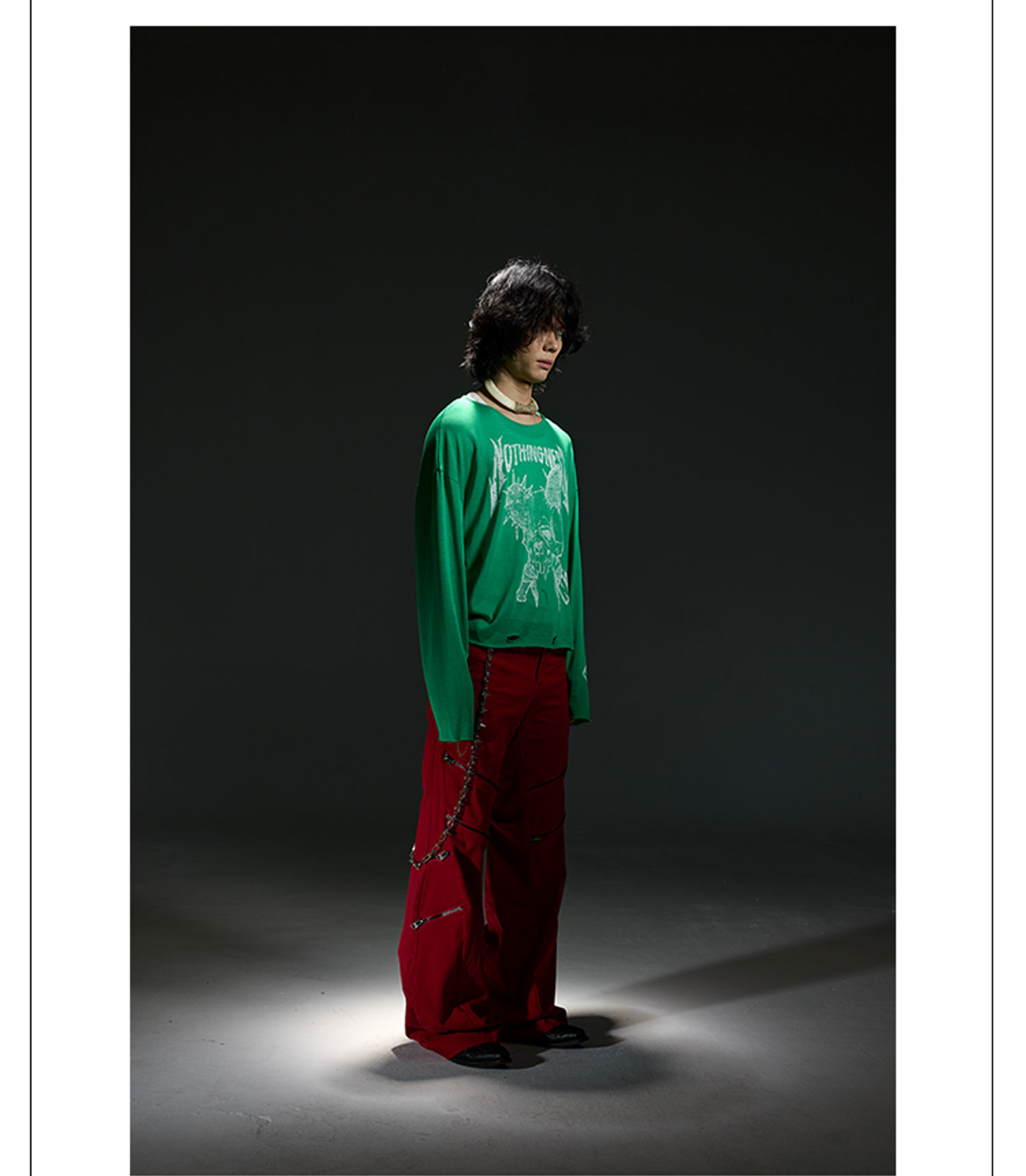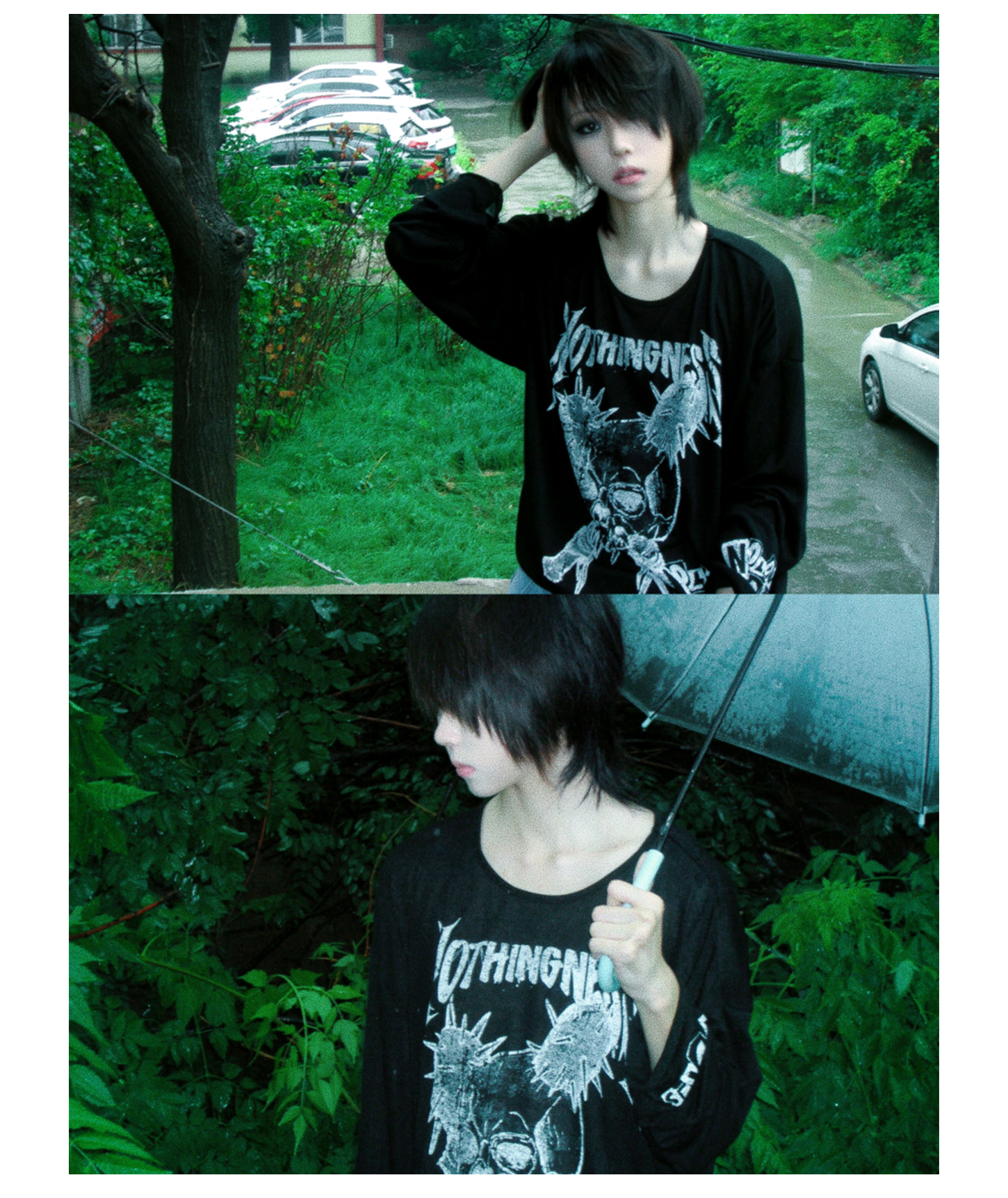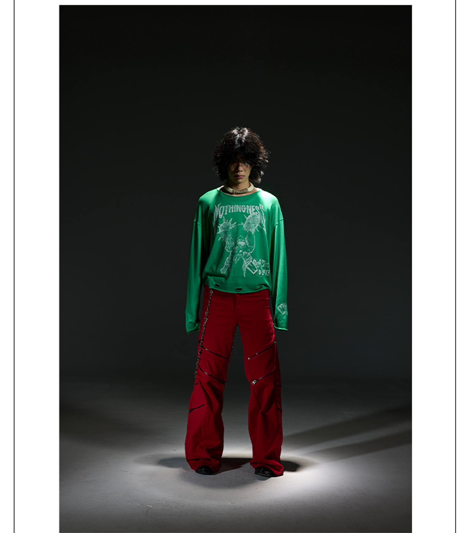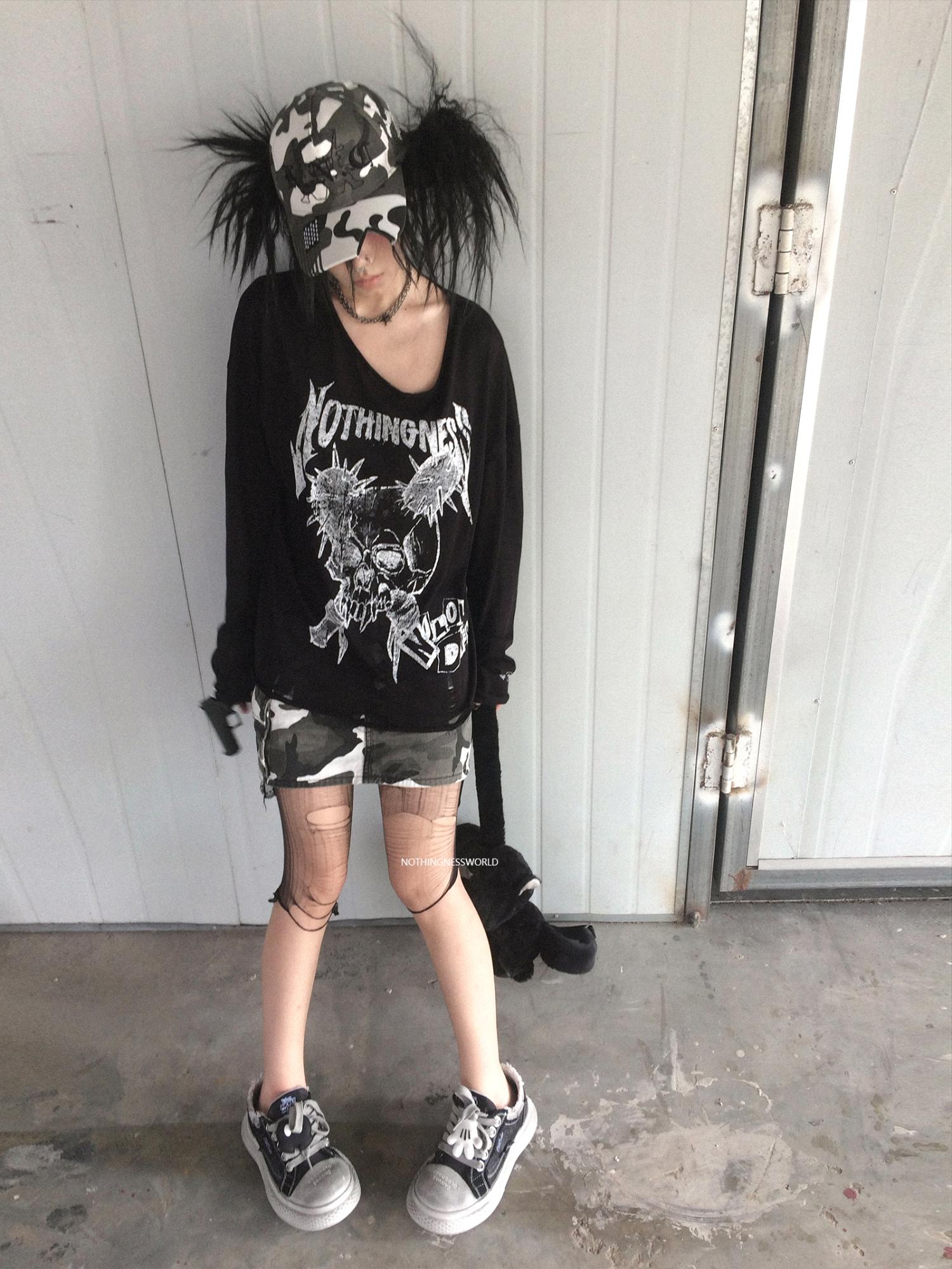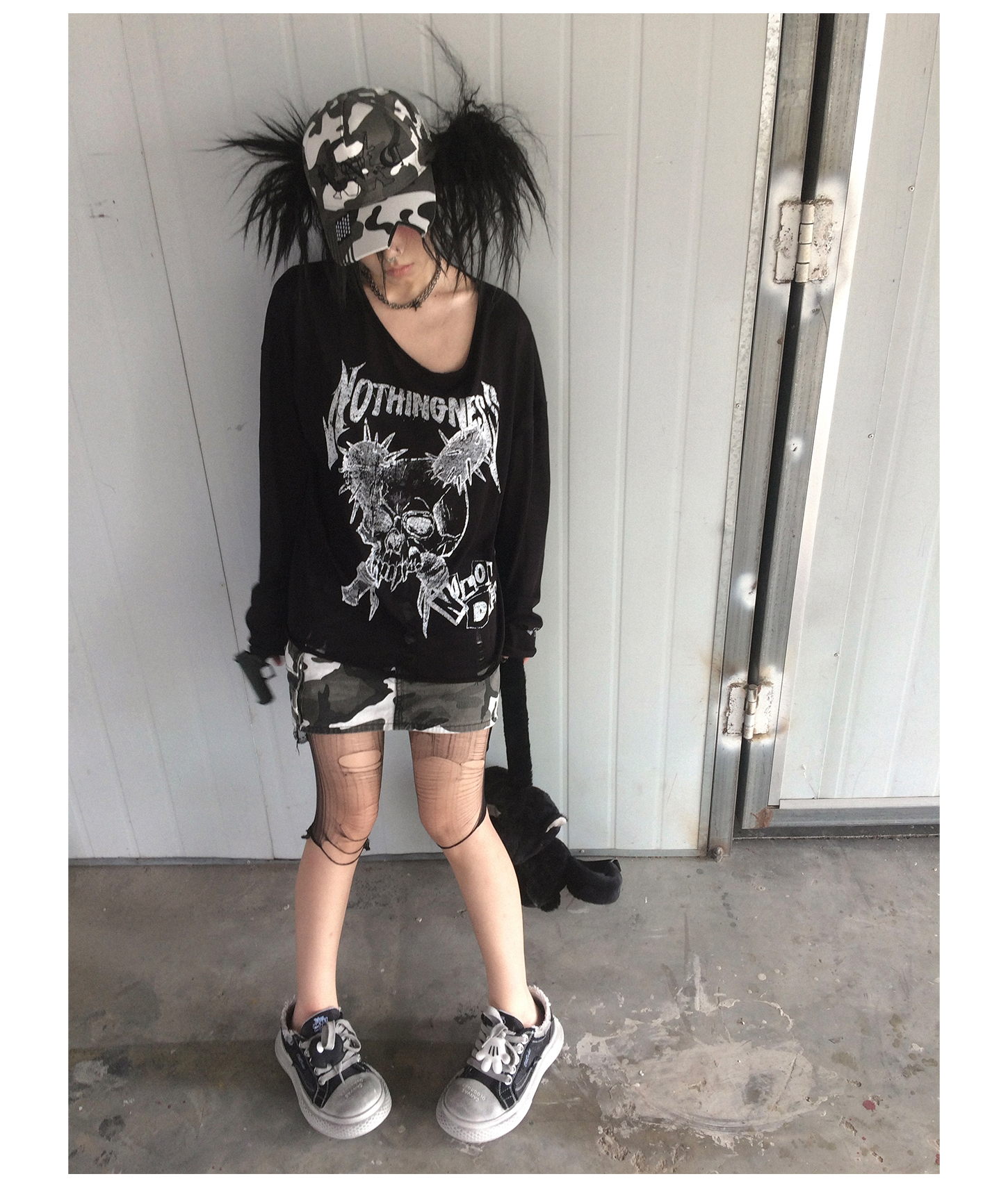 Damage Mesh Long Sleeve T-Shirt WN13734